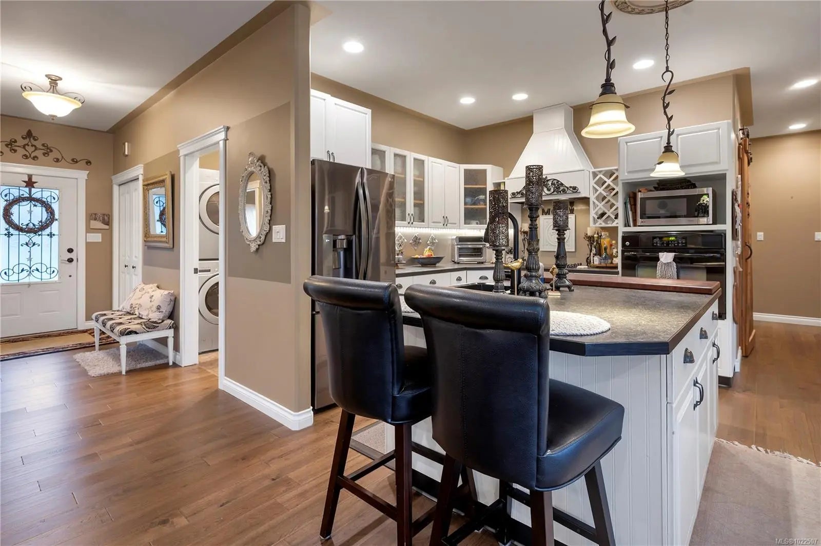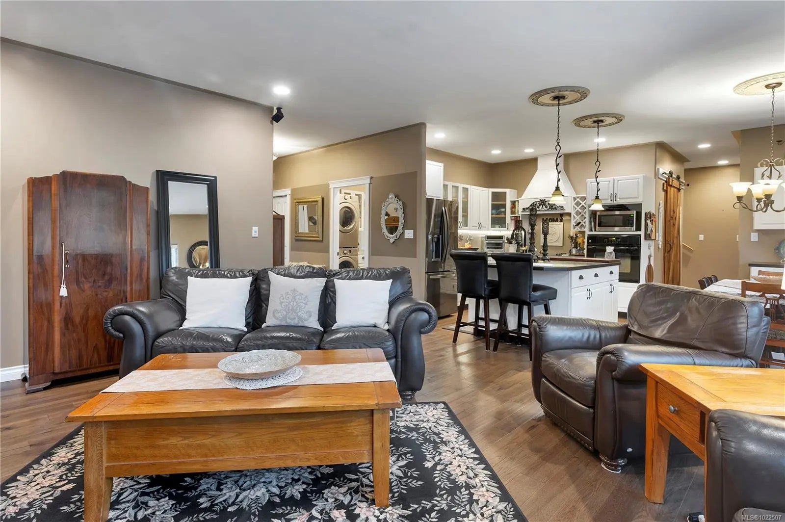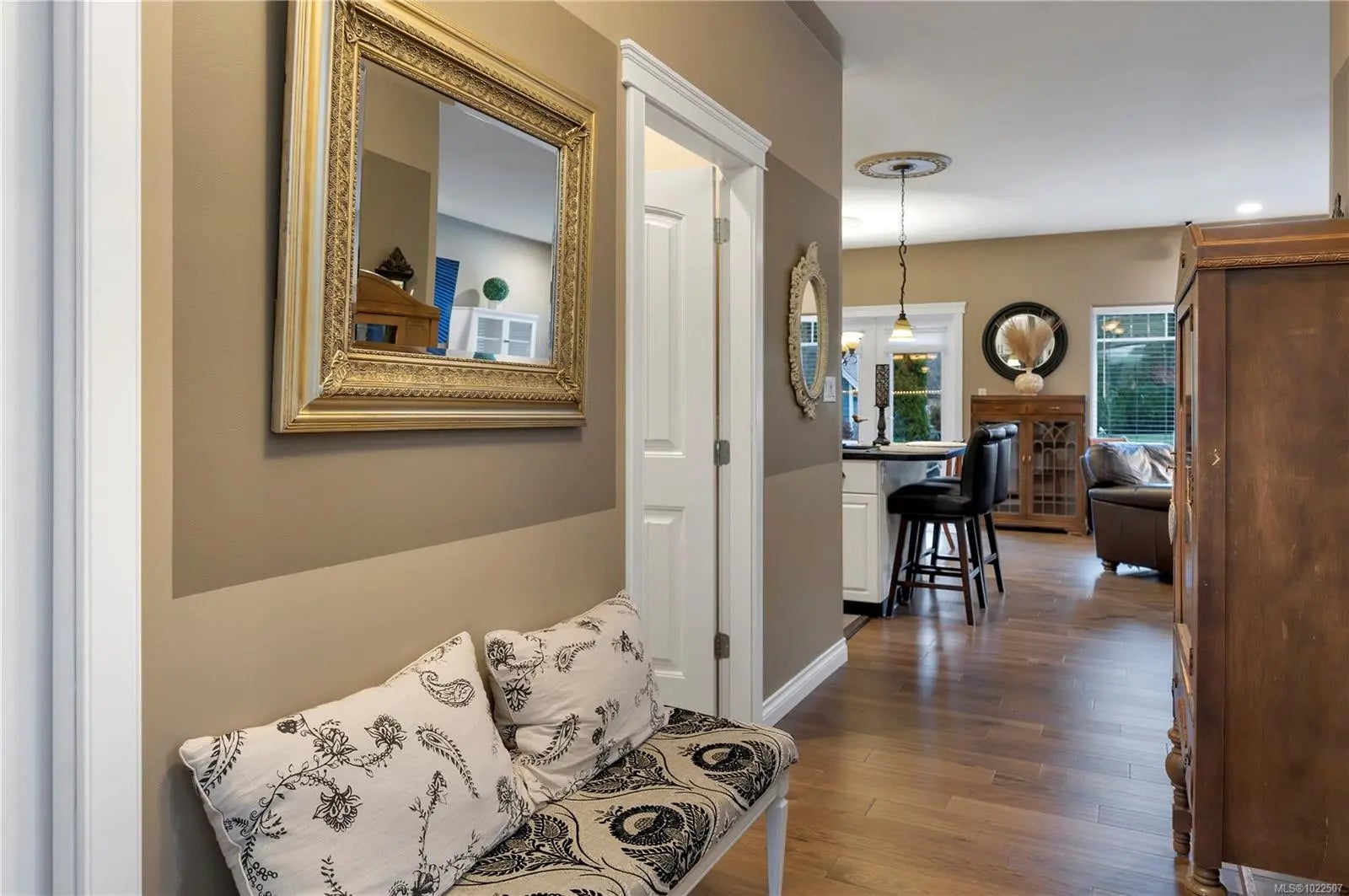 Welcome to this beautifully designed 1,840 sq ft rancher with bonus room on a 0.22-acre lot in the desirable Willow Point neighbourhood. This versatile home offers 3 bedrooms plus a den and 3 bathrooms, including a primary bedroom on the main with walk-in closet and elegant ensuite featuring a two-person soaker tub and separate shower. The bonus room includes a secondary primary suite, ideal for guests or extended family. The home features custom kitchen cabinetry and hot-water-heated hardwood floors that provide luxurious comfort while keeping energy costs low. Outside, enjoy a private backyard with a large poured concrete patio, levelled area for an above-ground pool, hot tub pre-wiring, raised vegetable garden beds, and mature cherry and apple trees plus blueberry bushes. Additional features include a 4-foot concrete crawl space, detached 10’ x 12’ garden shed, oversized garage, and greenspace across the street.