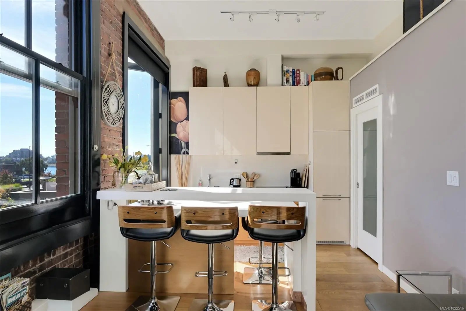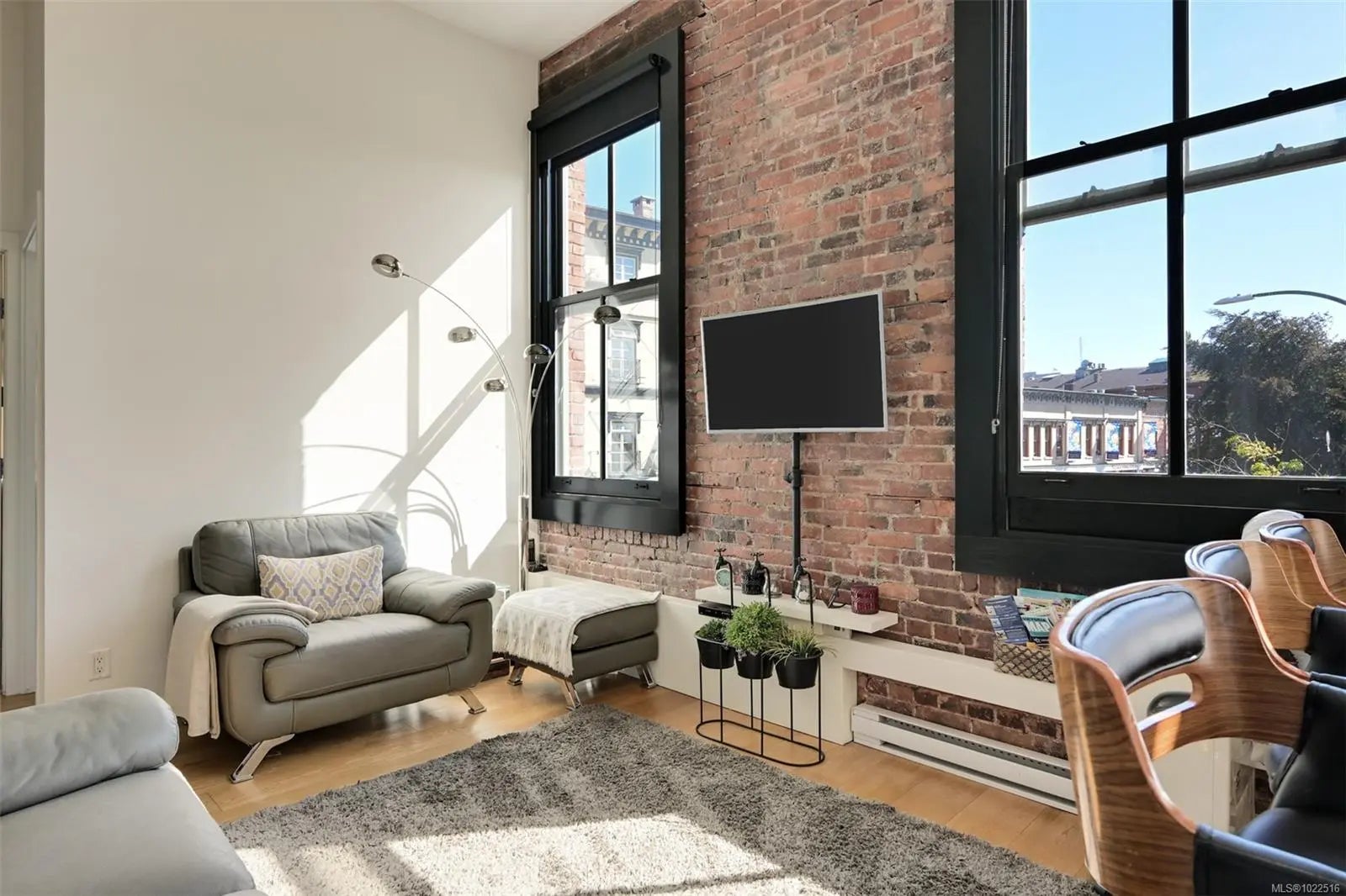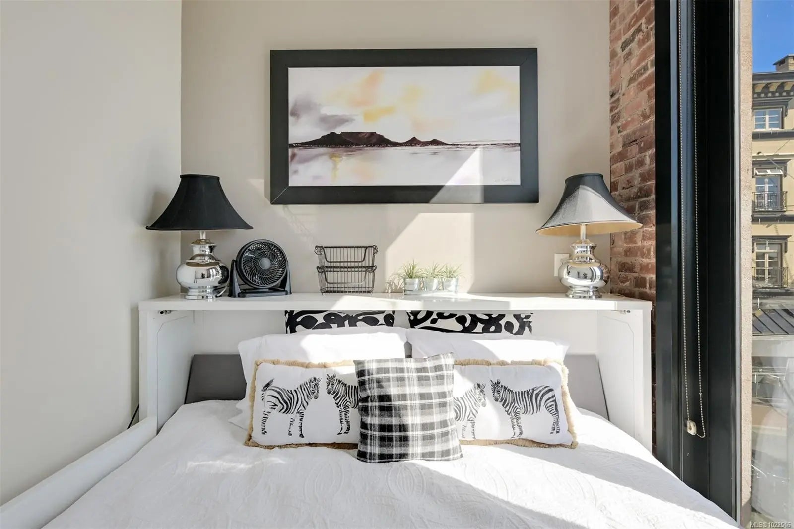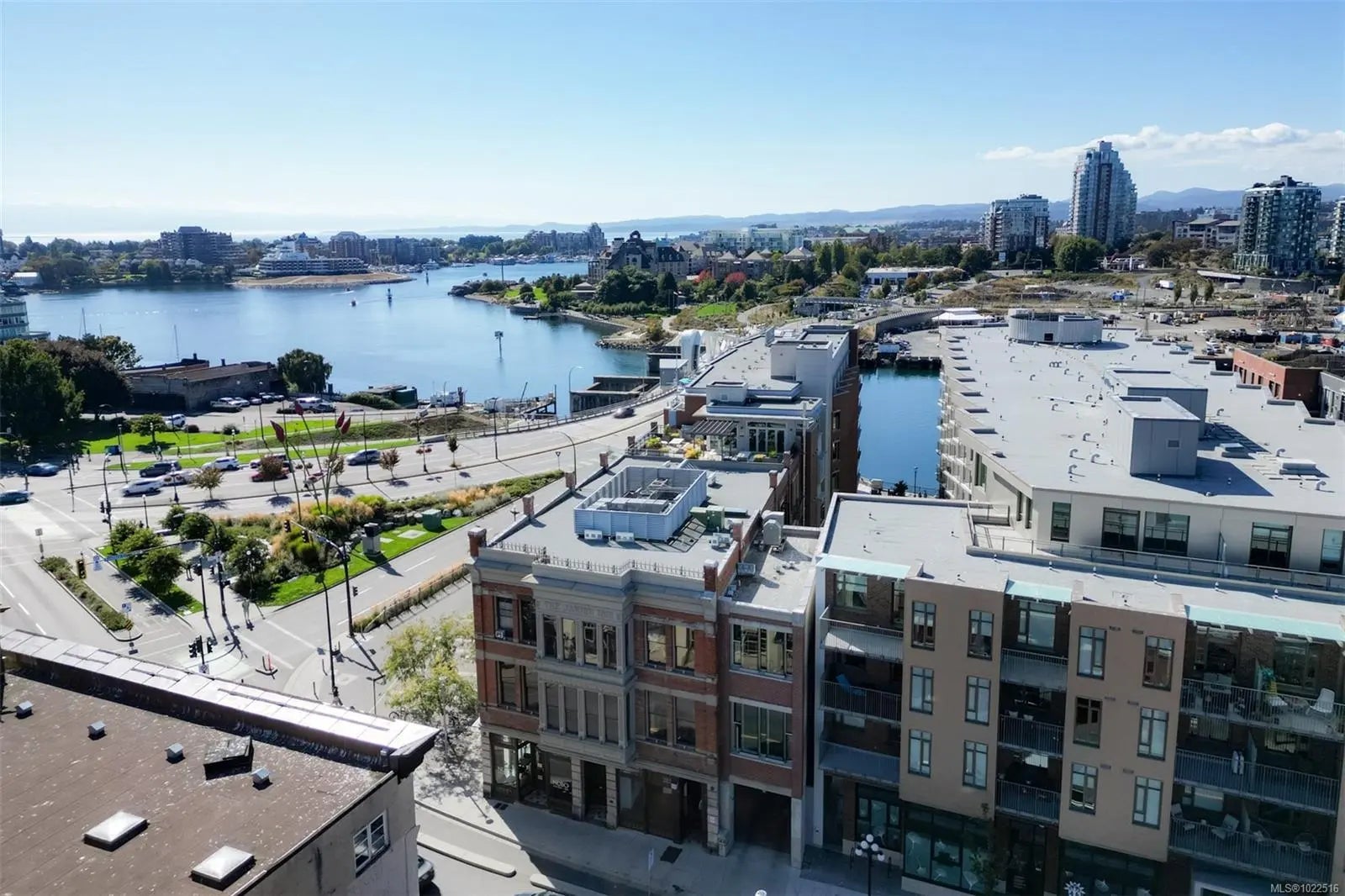 Experience urban living in the iconic Janion building, where heritage charm meets modern style. This bright SOUTH-FACING 2-bedroom features original exposed brick, oversized windows, and views of the bustling City, and Inner Harbour. Designed with efficiency in mind, it offers a built-in wall bed, integrated storage, engineered oak flooring, quartz countertops, a hidden-drawer dishwasher, refrigerator, freezer, and in-suite washer & dryer. Enjoy in-floor heating in the bathroom for added comfort. The Janion boasts premier amenities: rooftop terrace with BBQ and kitchen, fitness centre, conference room, bike/kayak storage, and internal beach access. Located in the heart of Downtown Victoria, steps to shops, dining, and the waterfront. Ideal for students, digital nomads, or snowbirds as it's fully furnished; this New York style condo is your gateway to the best of the city. Location, lifestyle, and iconic views—this is modern living at its finest.