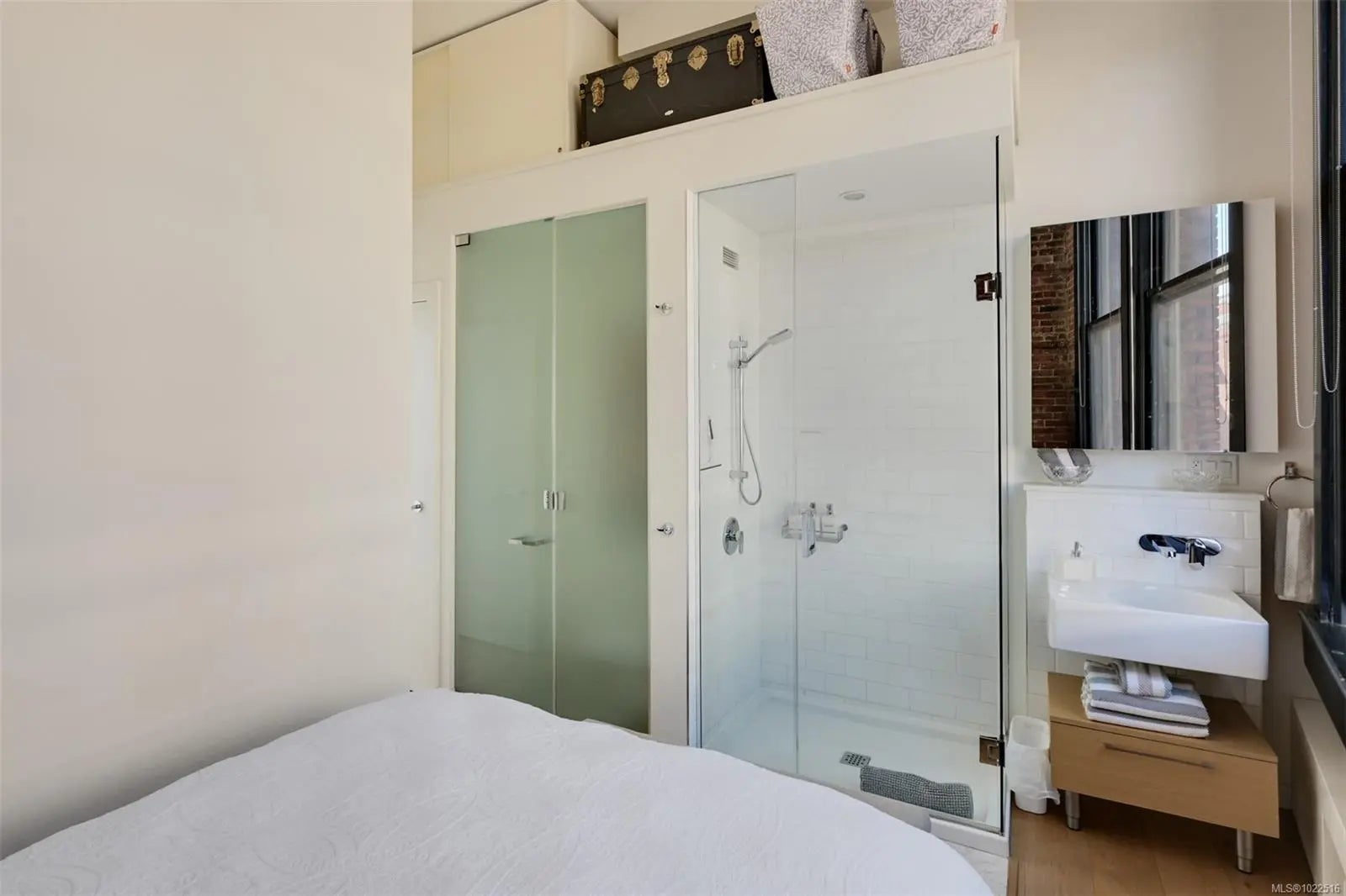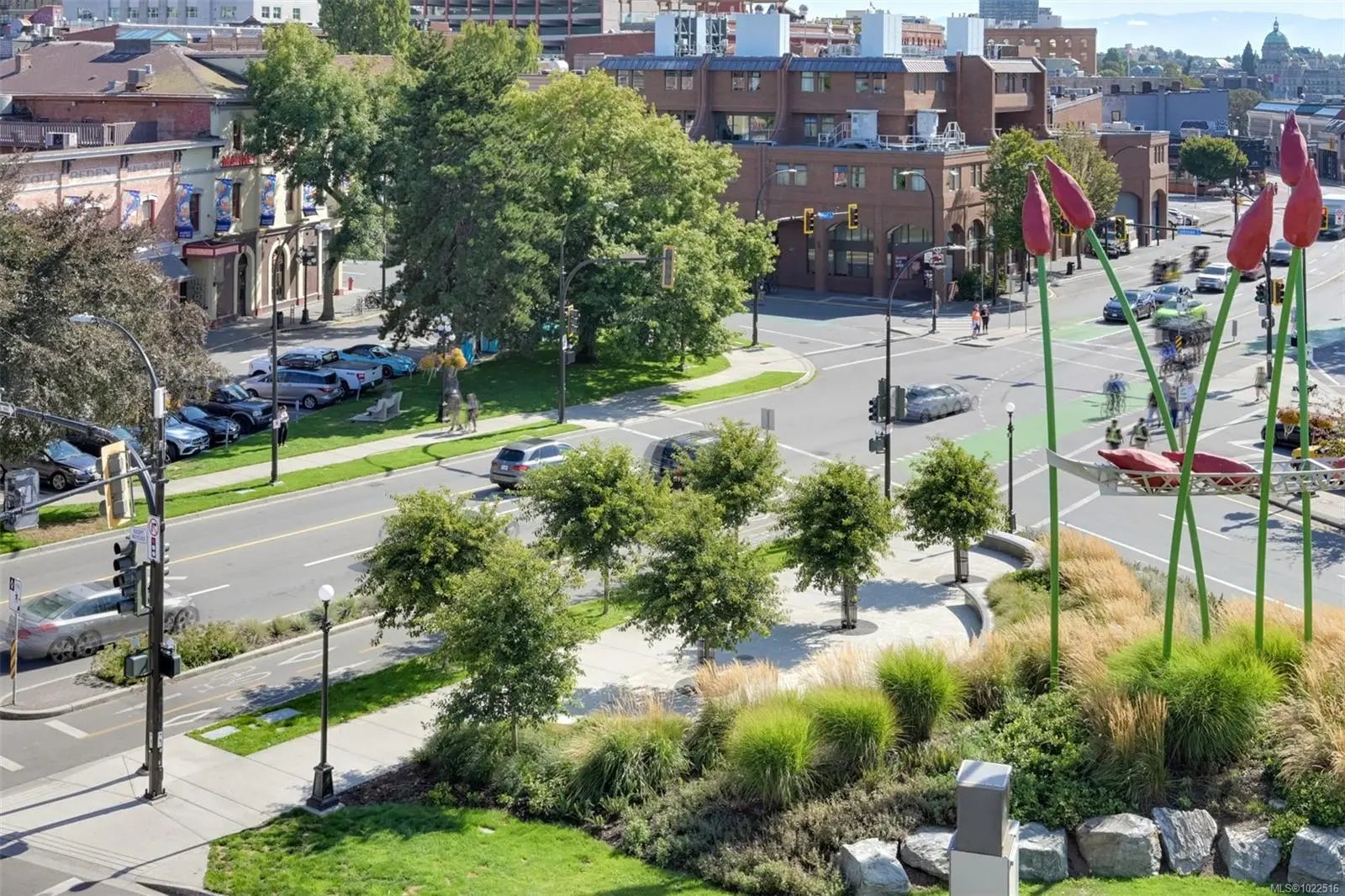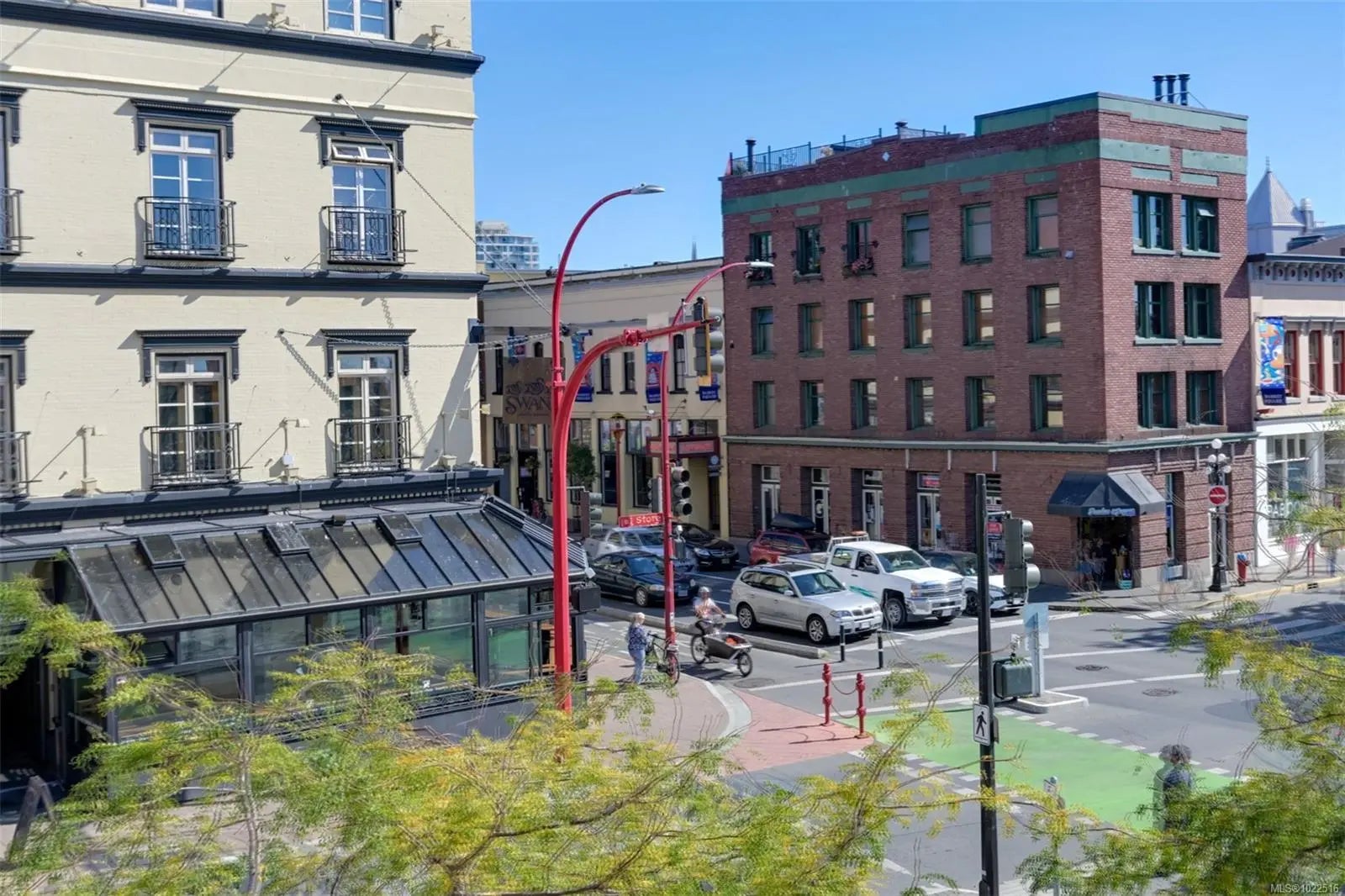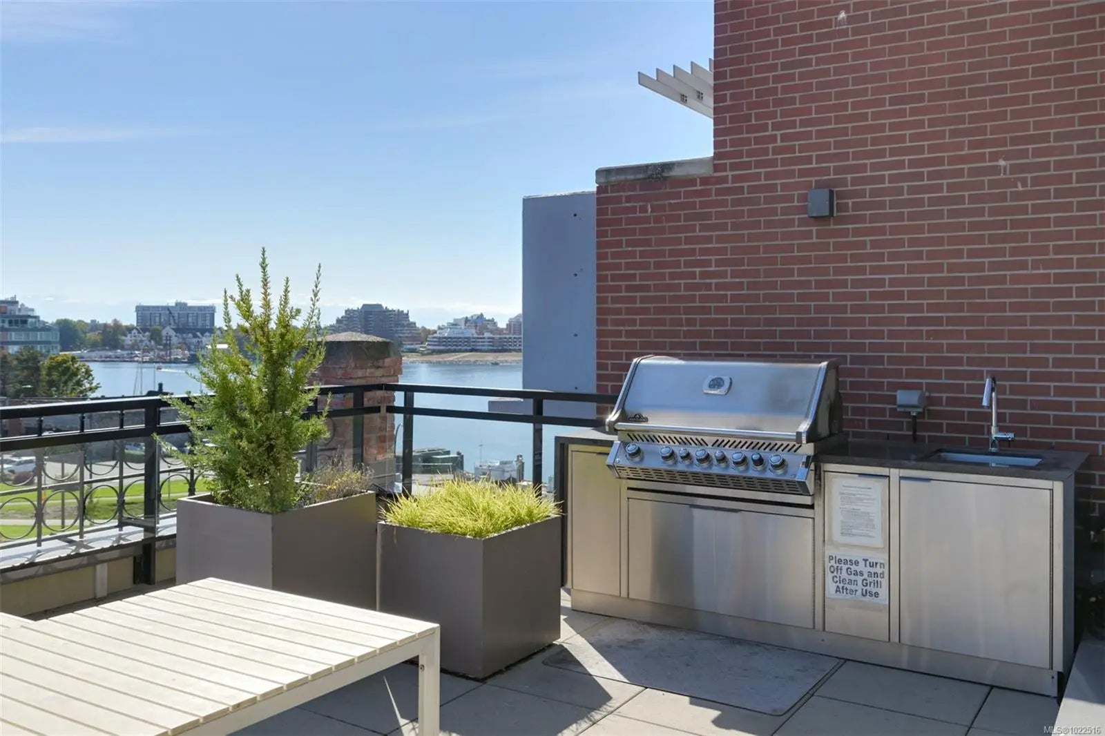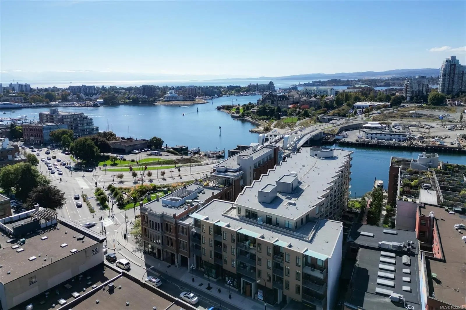 Experience urban living in the iconic Janion building, where heritage charm meets modern style. This bright SOUTH-FACING 2-bedroom features original exposed brick, oversized windows, and views of the bustling City, and Inner Harbour. Designed with efficiency in mind, it offers a built-in wall bed, integrated storage, engineered oak flooring, quartz countertops, a hidden-drawer dishwasher, refrigerator, freezer, and in-suite washer & dryer. Enjoy in-floor heating in the bathroom for added comfort. The Janion boasts premier amenities: rooftop terrace with BBQ and kitchen, fitness centre, conference room, bike/kayak storage, and internal beach access. Located in the heart of Downtown Victoria, steps to shops, dining, and the waterfront. Ideal for students, digital nomads, or snowbirds as it's fully furnished; this New York style condo is your gateway to the best of the city. Location, lifestyle, and iconic views—this is modern living at its finest.
