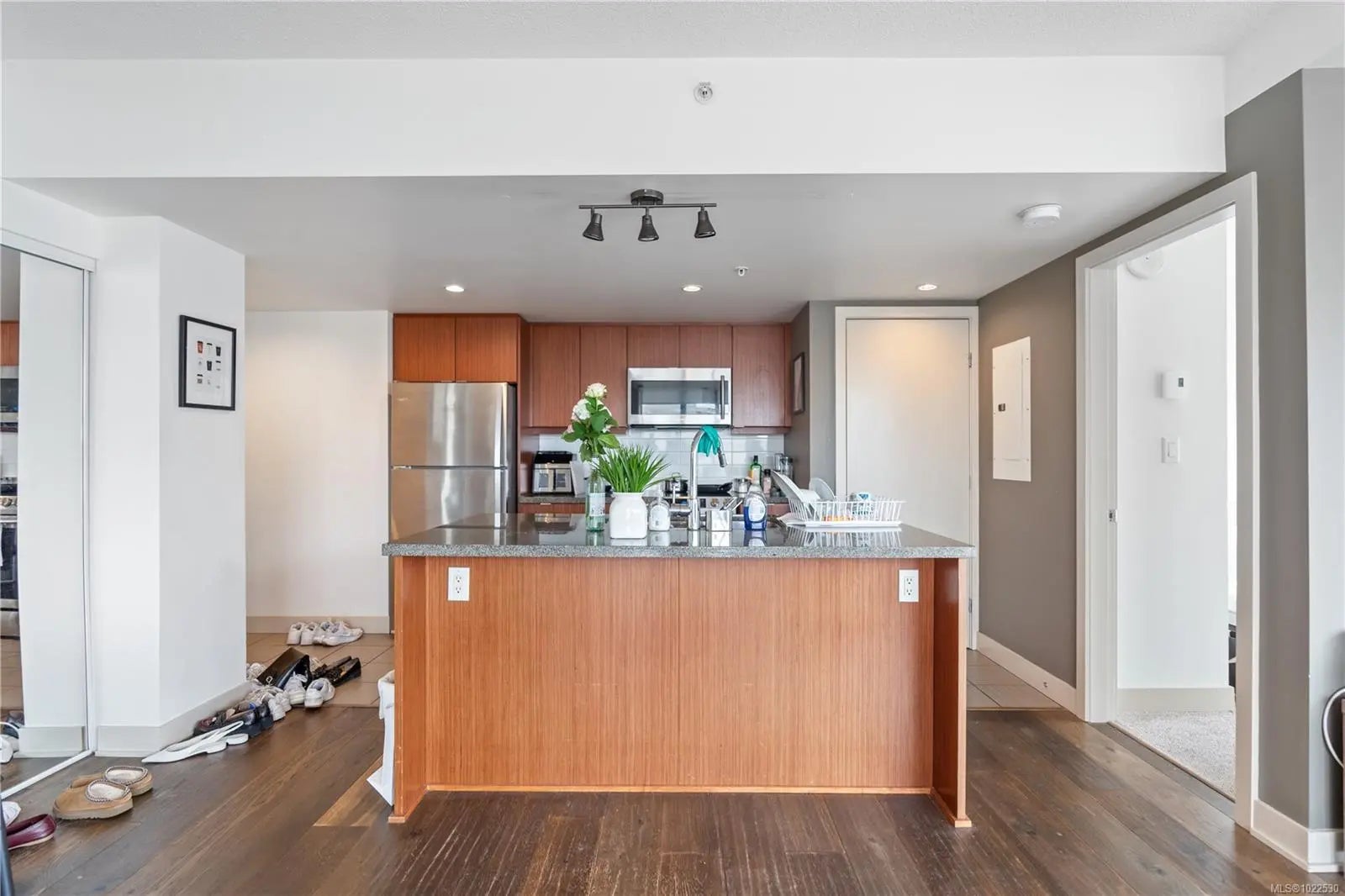 Welcome to the Juliet where modern sophistication meets downtown living! This premier floor plan boasts an architectural showpiece: a dramatic 25-foot curved wall of floor-to-ceiling windows that floods the home with natural light and showcases breathtaking city views. Inside, you’ll find high-end finishings throughout, including granite countertops, bamboo flooring, and in-suite laundry for convenience. The open-concept layout creates a seamless flow between kitchen, dining, and living spaces, perfect for entertaining or relaxing in style. When you need a retreat, head up to the exclusive rooftop Zen garden, a serene oasis offering panoramic city, mountain, and ocean vistas.