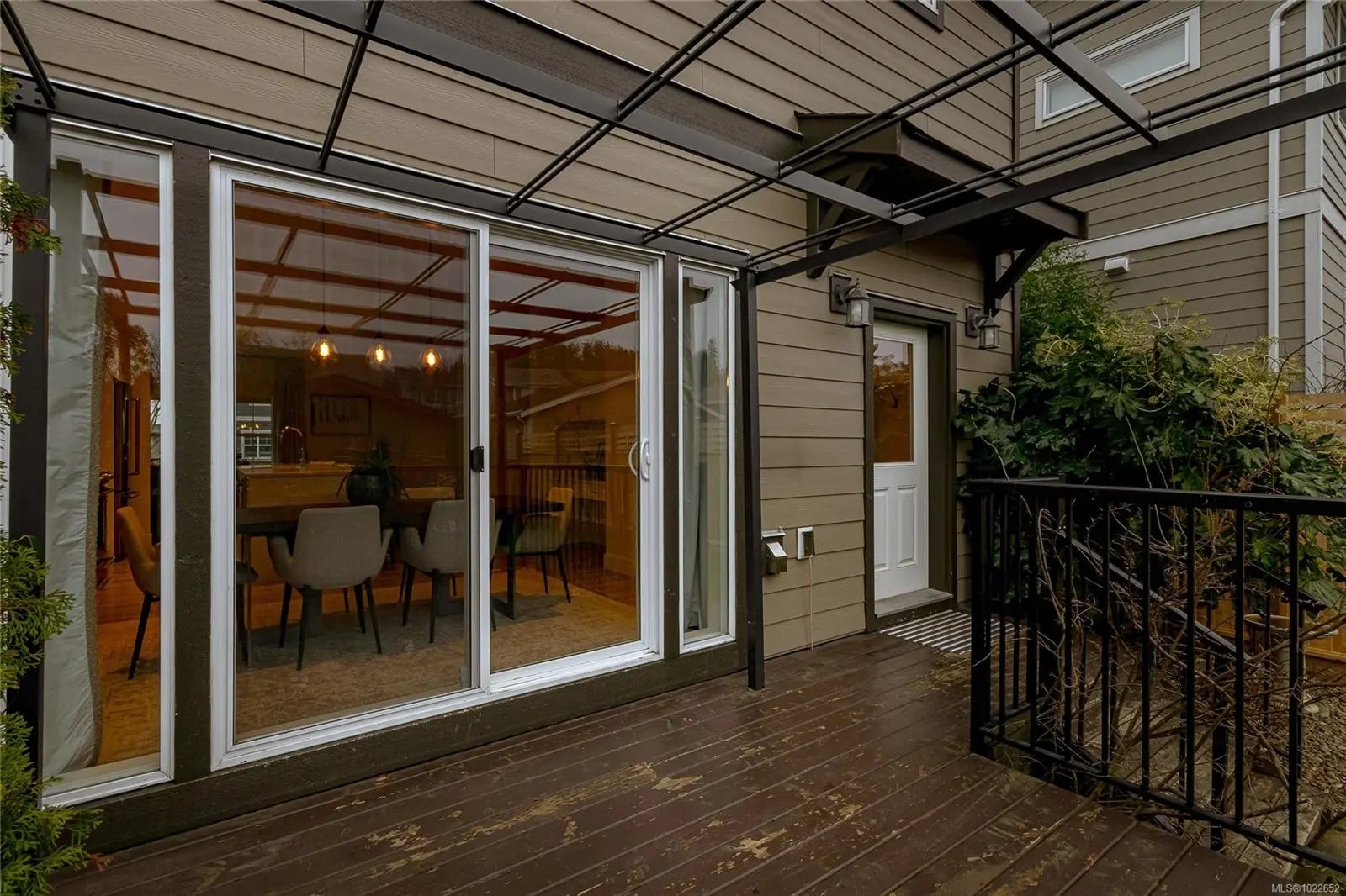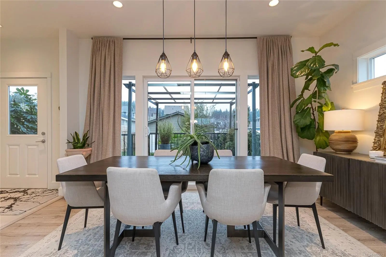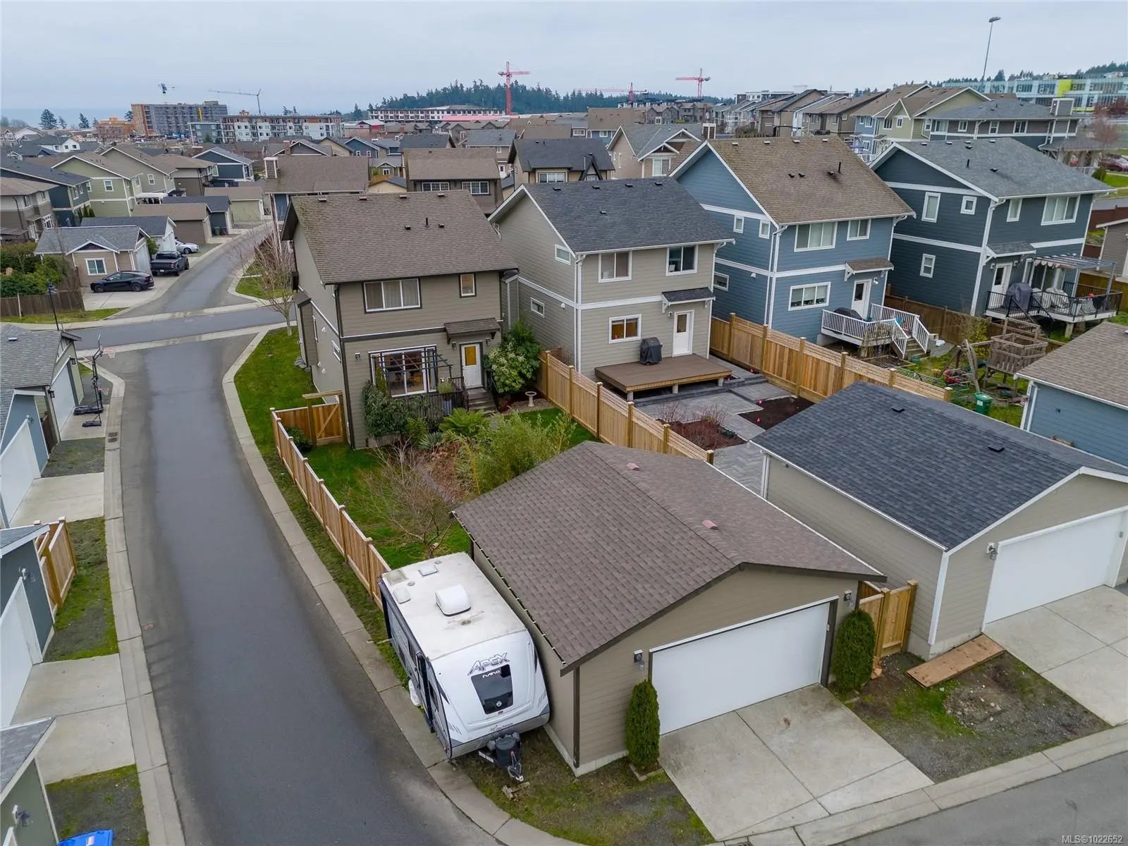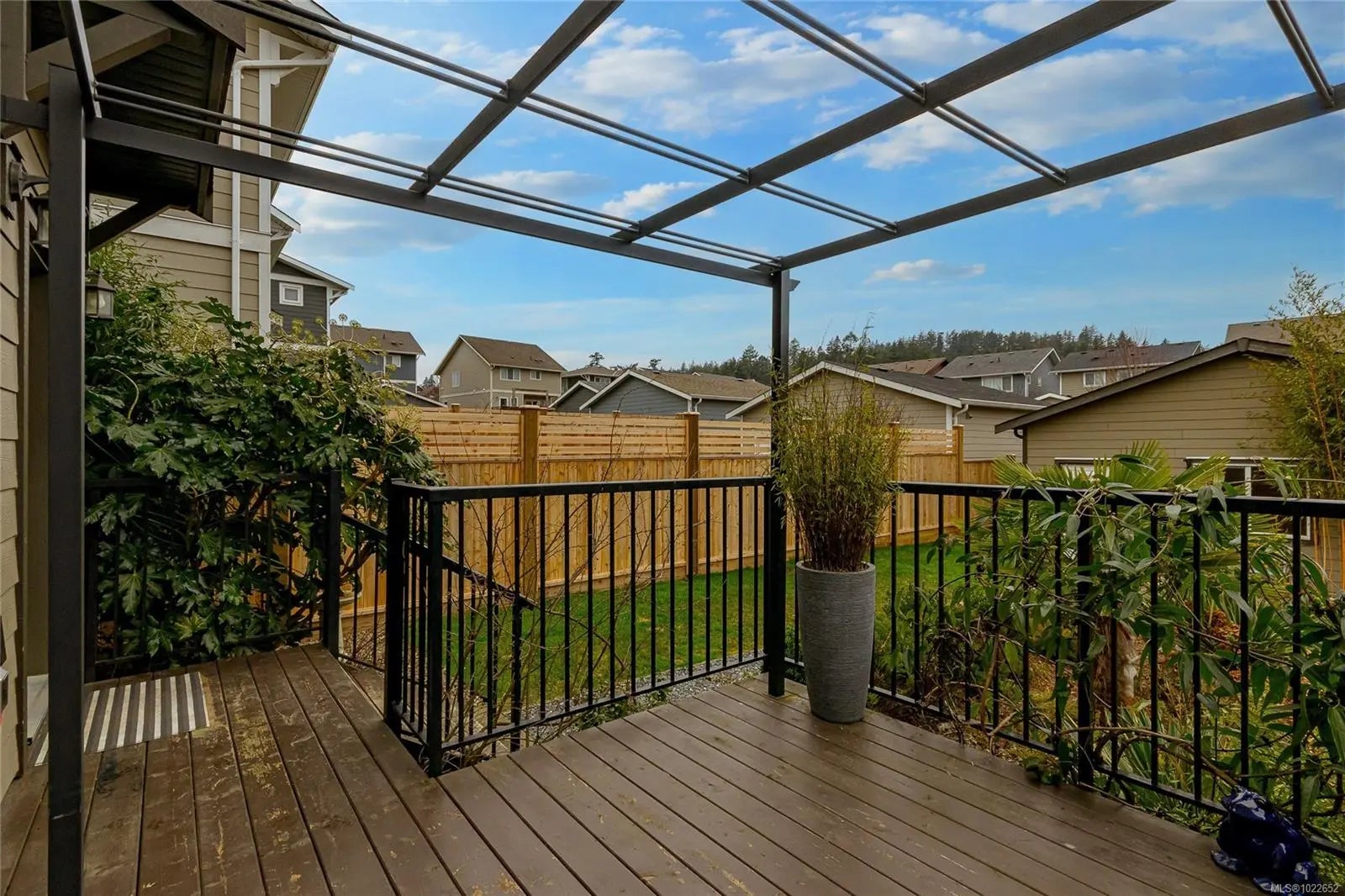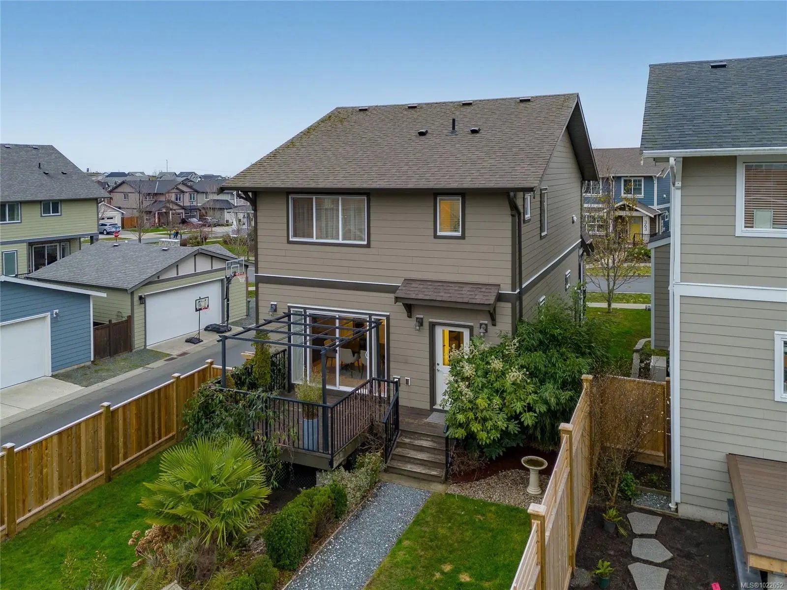 Welcome Home to this Royal Bay charmer on an established street. Start the day on a cozy patio, perfect for your morning coffee. Main level features open floor plan with a well-appointed entrance, spacious living and dining room areas and a chef’s kitchen. Upstairs find 3 bedrooms and laundry. Generous primary suite with a large 4-piece ensuite and a walk-in closet. Completing the interior is a spacious, unfinished basement. Possibilities are endless, turn it into a suite, or an extra space for the family, bathroom is already roughed in! Outside features BBQ-ready family-sized deck. Large sized back yard is a gardener’s dream with mature trees, flower beds and plenty of space for more ideas. Detached double car garage and a RARE! additional outside parking spot on this property. Lots of upgrades including sprinkler system, electric car charger and a solar-ready tech installed. Steps to everything in Royal Bay Village, 10 min to Costco and 25 min to Downtown Victoria!