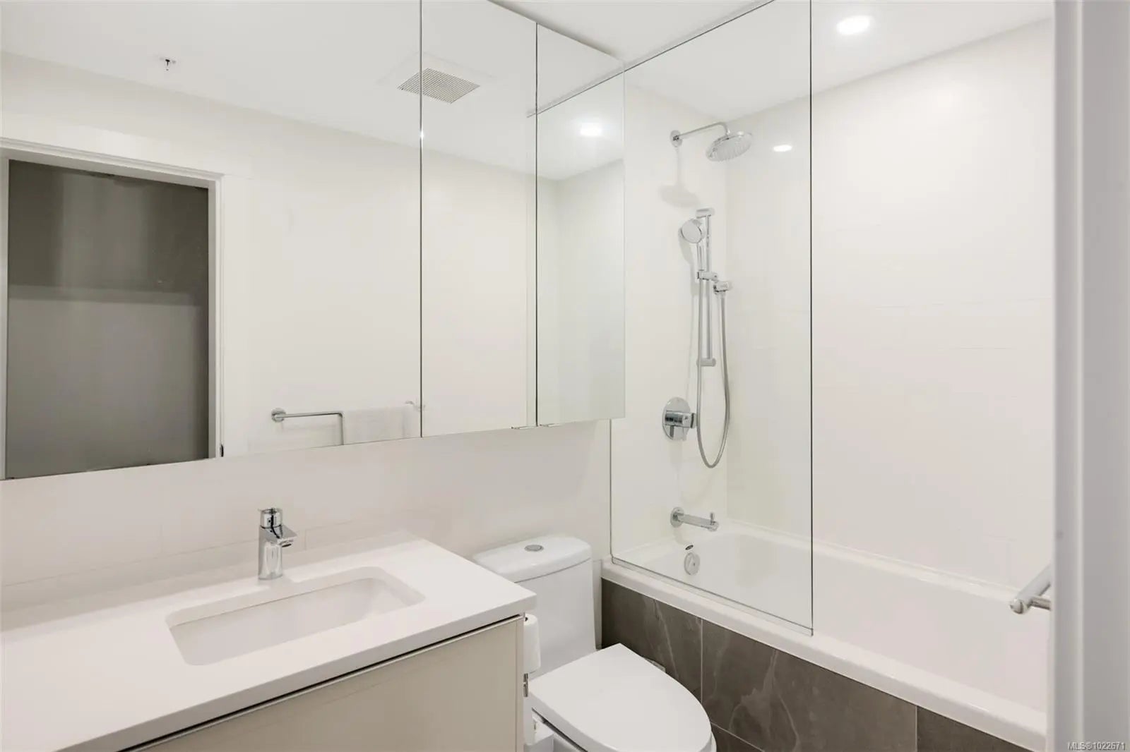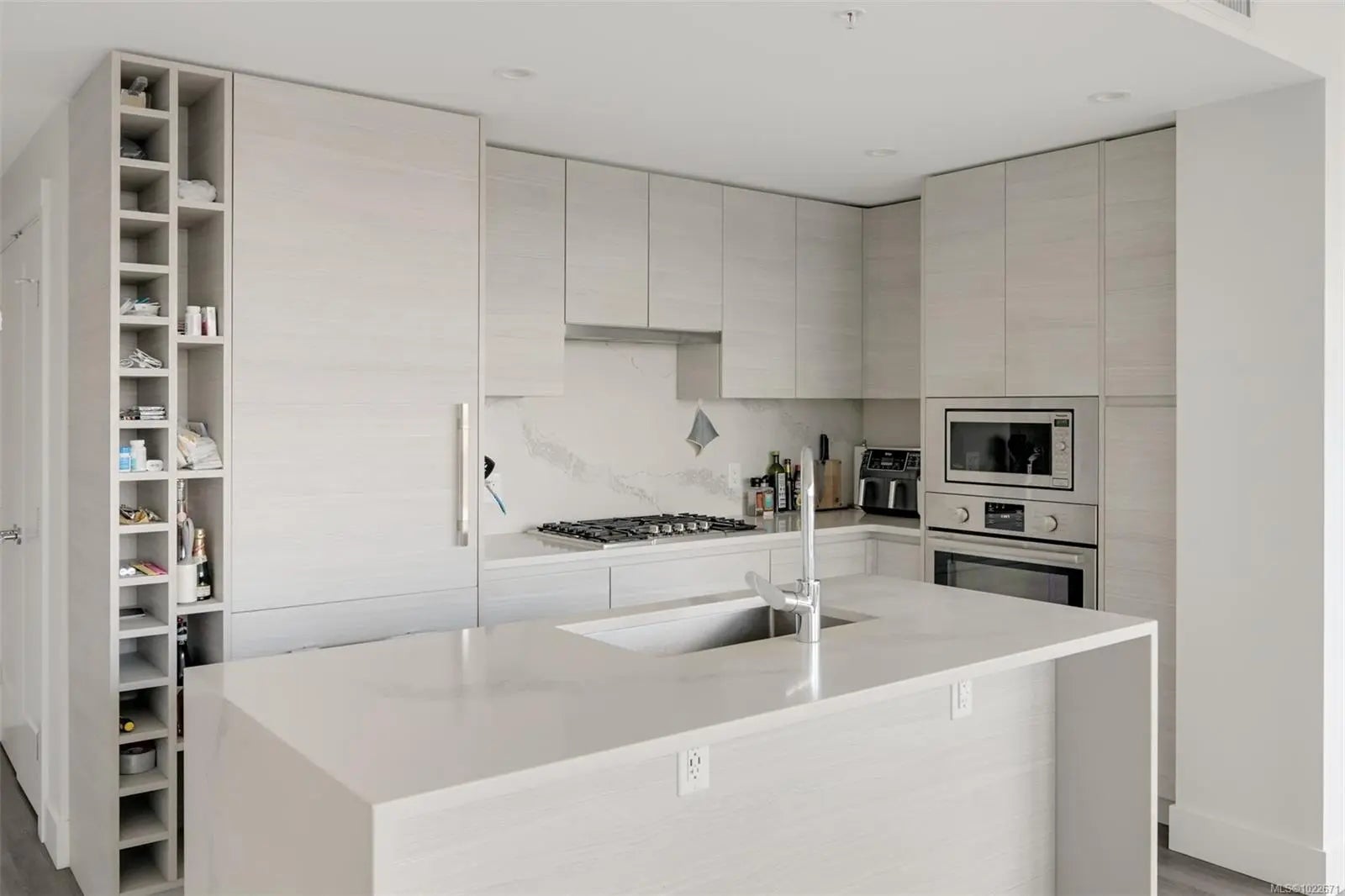 Welcome to the Hudson Place One, the centrepiece of Downtown Victoria's Skyline. Built by award winning developer Townline, this steel and concrete tower is known for its unparalleled amenities and walkability to everything Downtown has to offer. This 2 bed, 2 bath suite has high end finishings including an upscale kitchen fitted with quartz countertops, ample storage and designer Bosch appliances w/gas range. Light flooring extends into the sun filled living room with westerly ocean and city views, and dining area with access to the 24x7 deck. The primary bedroom is generous in size, and includes a luxurious ensuite with heated floors. On the opposite of the suite is the private 2nd bedroom and 4 piece bathroom. To cap it off, in-suite laundry means this home has everything you need. With amenities like concierge, gym and sauna, yoga room, lounge, billiards room, dog run, guest suite and more, Hudson Place One provides something for everybody. Upgraded EV Parking and storage included!