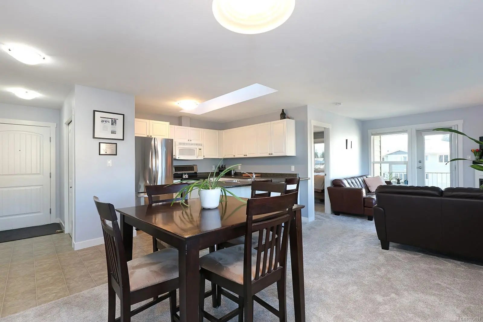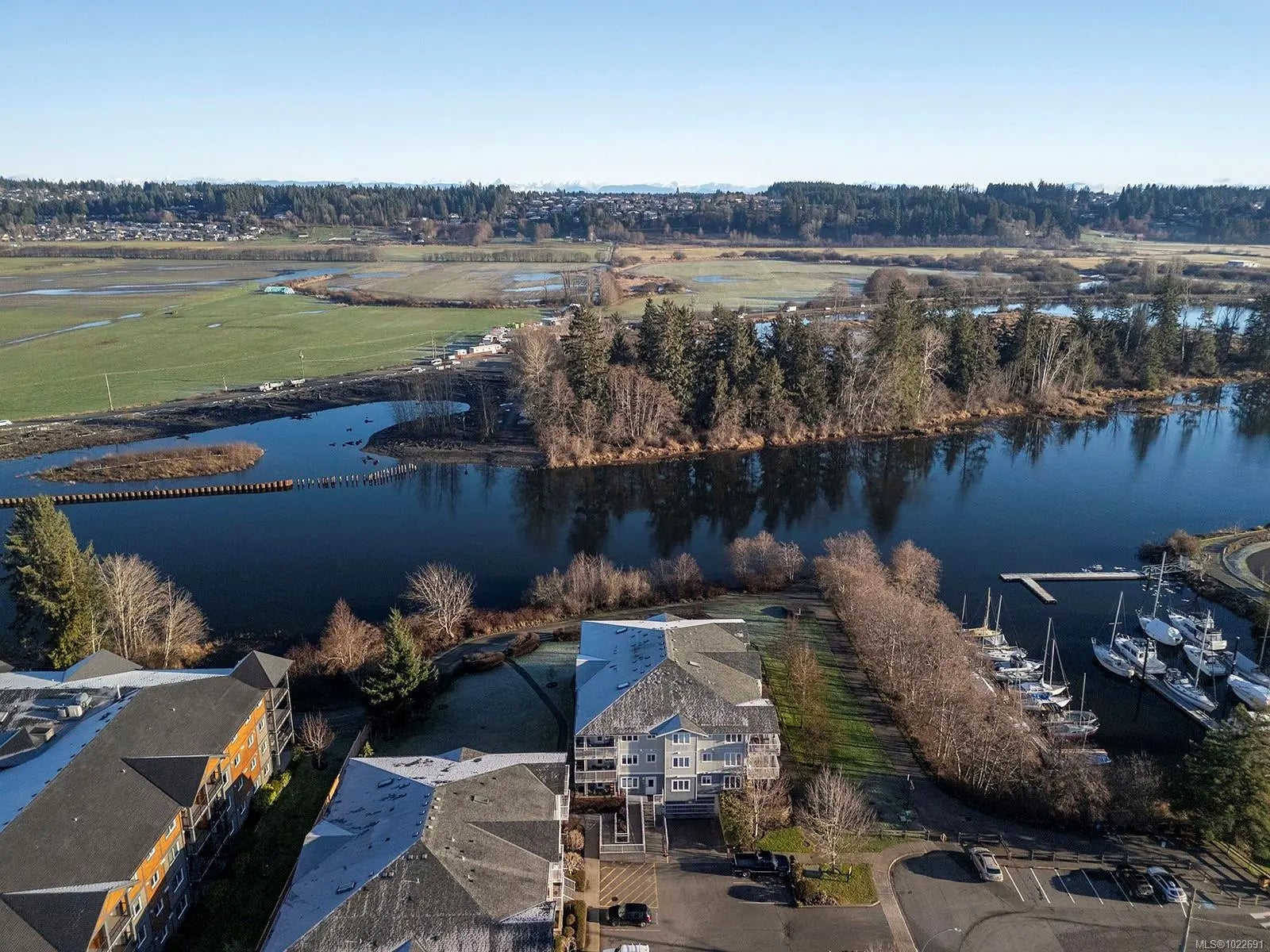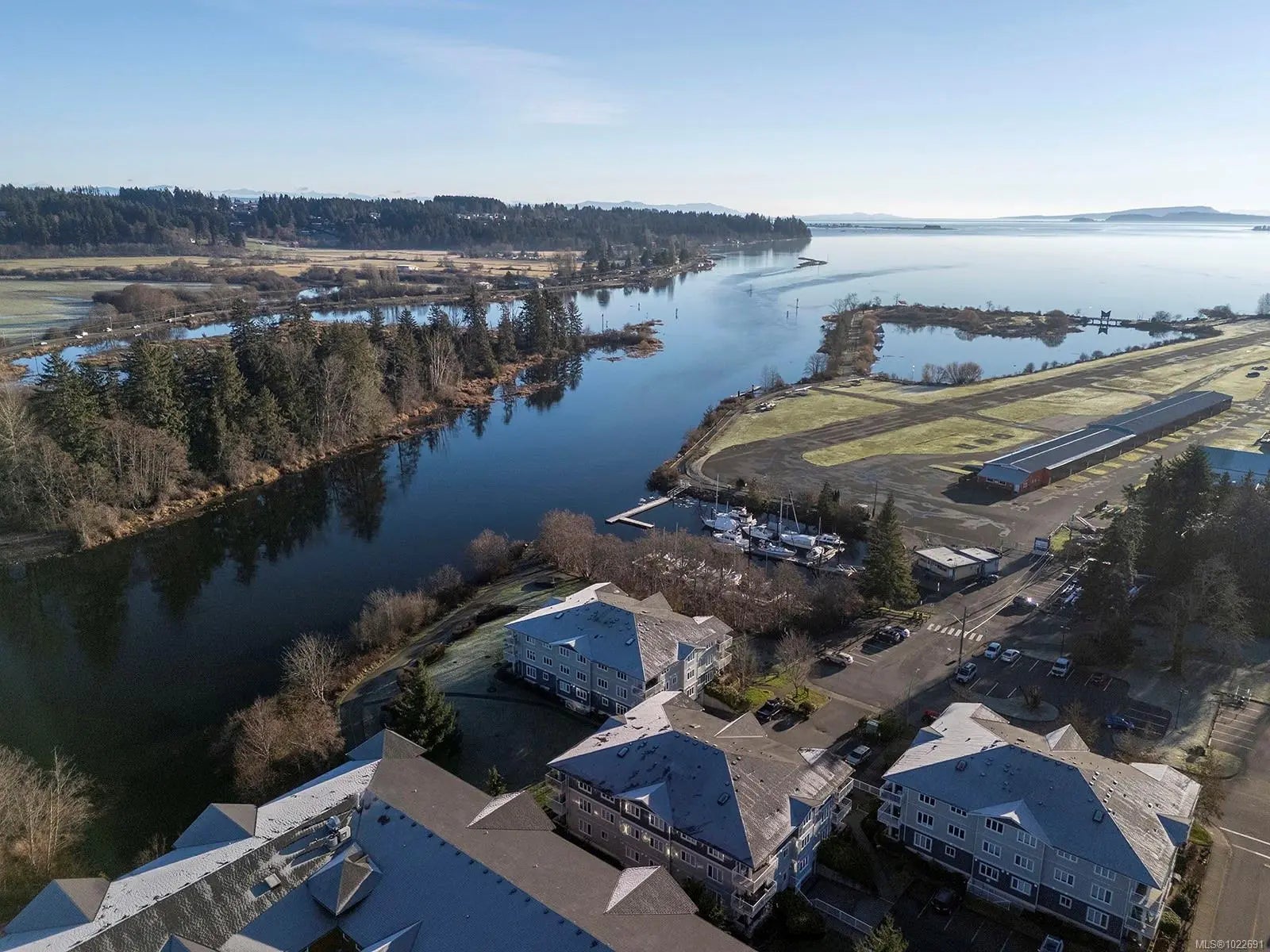 Riverview top floor corner condo! Welcome to The Tides, an oceanside community 'where the river meets the ocean', enjoy walking trails for miles along the water's edge, kayak rentals, a small boat launch/Marina, and the Airpark trail. Ever-changing views across the river to the nature reserve and estuary, watch the eagles, trumpeter swans, seals & sea lions. This spacious open plan offers a large Great room including the Dining and Living rooms with the spectacular views, and access to the covered deck with southwestern exposure. A bright, well-designed kitchen offers abundant workspace, s/s appliances, skylight overhead, seating for guests and of course you can share in ‘the view’! Cozy electric fireplace in Great room, great separation, for privacy, of the 2 bedrooms, 1 with a 4pce ensuite. In-suite laundry, elevator, 1 underground parking space and outside visitor parking. West Coast living at it's finest!