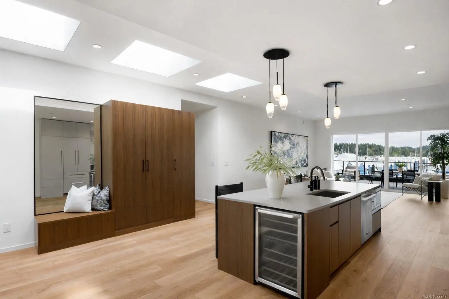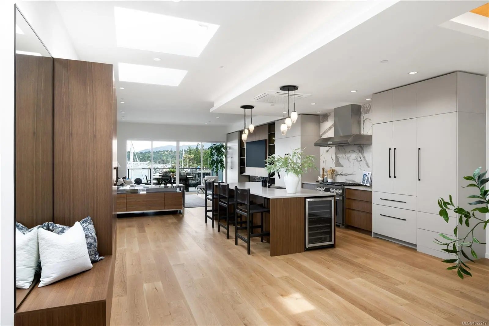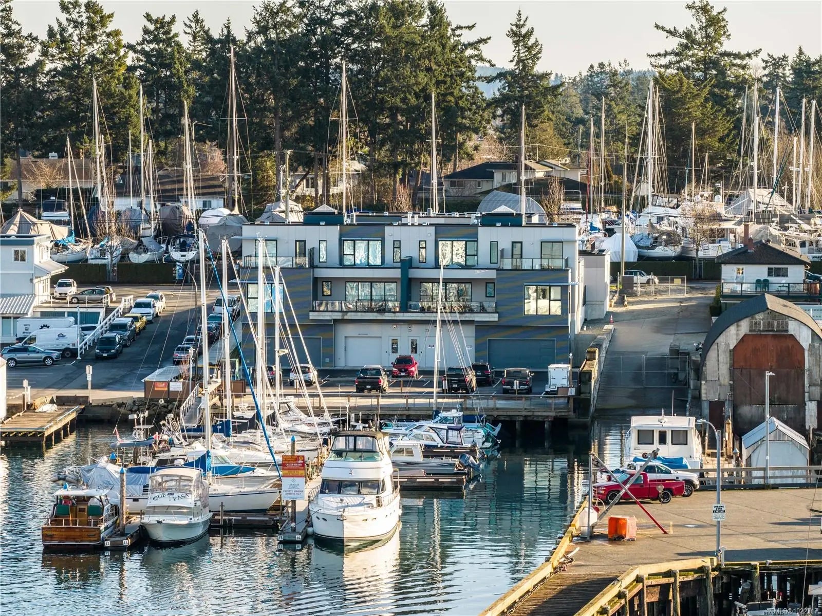 Brand-new luxury waterfront townhome in Sidney, BC, just steps from a top-tier marina, dining, and shops. Offering over 3,200 sq ft of curated living space, this home lives like a detached residence, ideal for downsizing without compromise. The main level features a full-size chef’s kitchen, dining area, gas fireplace, spacious patio, and a primary bedroom with spa-inspired ensuite. Upstairs offers a second primary suite plus two outdoor living areas, including west-facing ocean and marina views for sunset enjoyment and a southwest patio perfect for gardening. Additional highlights include a private elevator, over-height double garage with storage, and a self-contained suite ideal for guests or a professional practice. Walk to beaches, Roberts Bay and enjoy kayaking and paddleboarding from your doorstep. A rare opportunity for low-maintenance waterfront living.