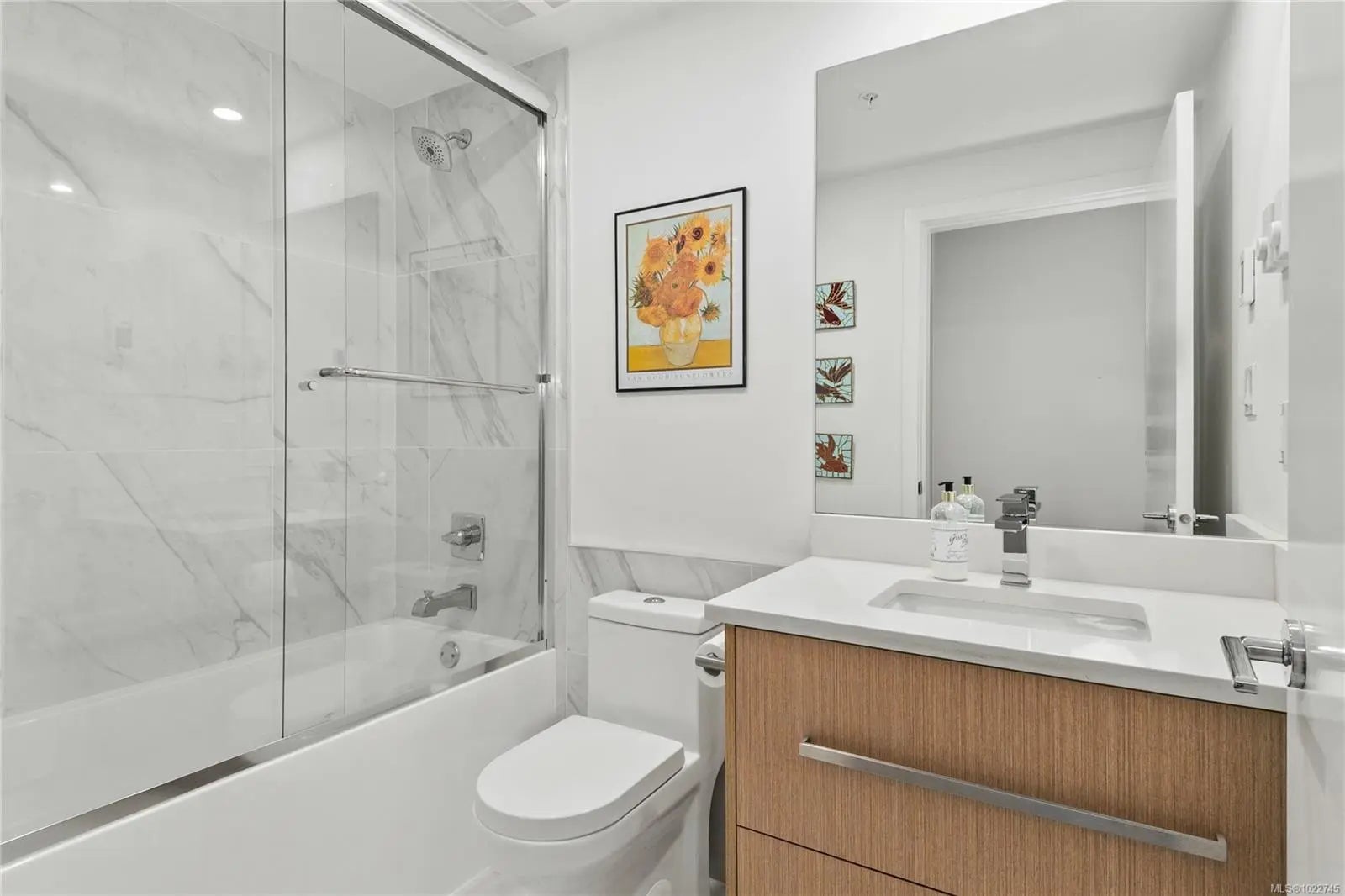 Welcome to Newport Village. This bright ground-floor corner home is filled with natural light, with large windows throughout. The open-concept kitchen features quartz countertops and overlooks the dining and living areas, creating a functional and inviting layout. Heated floors extend through both bathrooms and the laundry room, while the bathrooms are finished with quartz counters, undermount sinks, and glass shower doors. The primary bedroom offers a walk-through closet leading to a four-piece ensuite. Enjoy the convenience of entering and exiting the home through your private patio with its own gate, providing easy access to nearby walking trails—ideal for pet owners and outdoor enthusiasts. Conveniently located close to Walmart, Driftwood Mall, and the Courtenay Airpark and Millard Creek trail systems.