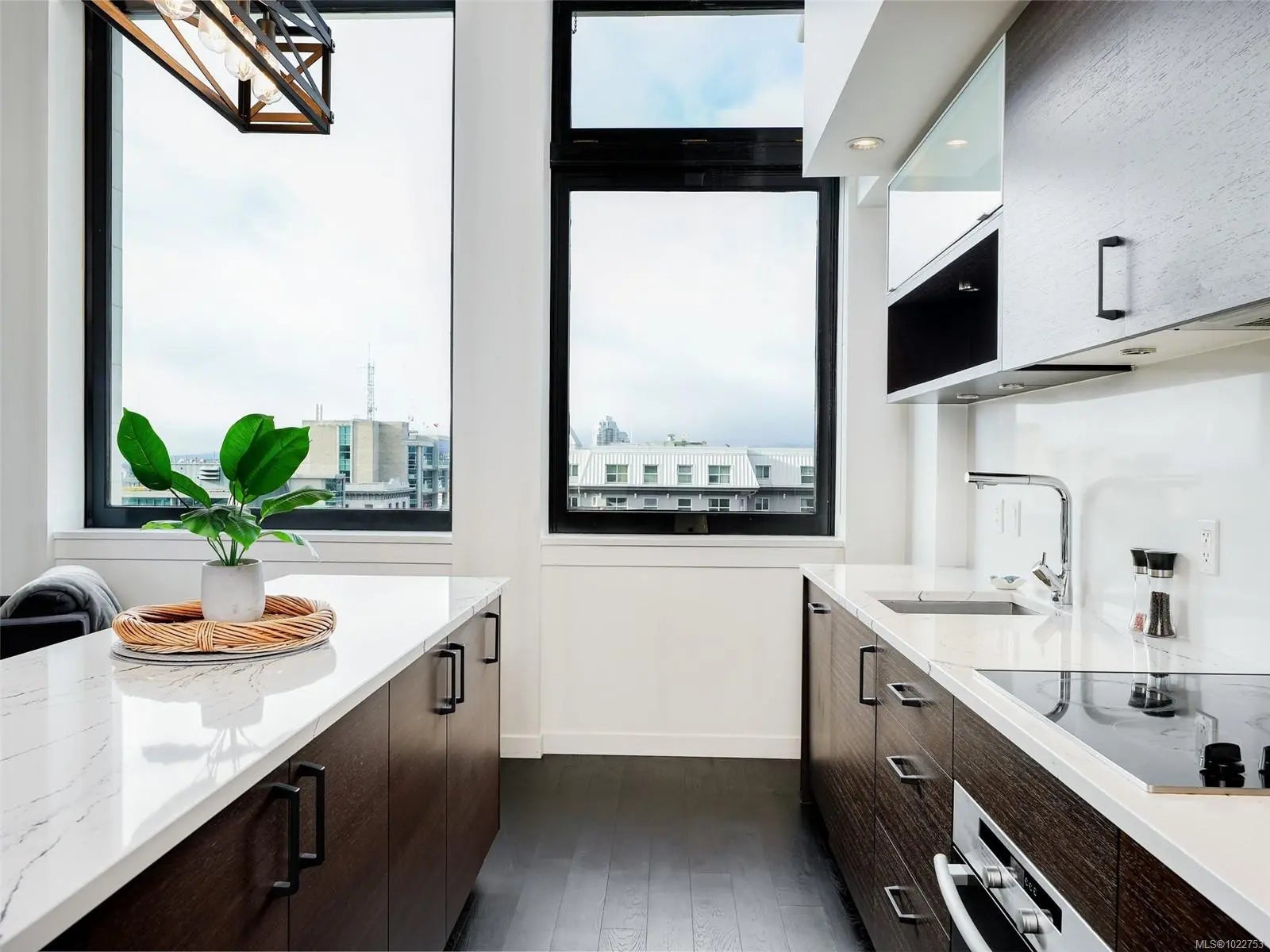 Here is your opportunity to own a piece of Victoria’s history at the Iconic "HUDSON". This BRIGHT 2 BED, 2 BATH WEST FACING loft condo boasts open concept, modern design w/17 ft. ceilings & oversized windows that offer Sunset, Ocean, City & Mountain views. This 4th floor condo features engineered hardwood floors, Geothermal heating & cooling, in-suite laundry, Stainless Steel appliances, Quartz countertops & CUSTOM ISLAND ideal for entertaining! Main level is complete with a bedroom w/sliding glass doors & 3-piece bathroom. Upstairs you will find the loft style primary bedroom & 5-piece ensuite w/heated floors, double vanity, soaker tub and walk-in shower. Rentals and pets allowed. Amenities include secure underground parking, storage locker, BONUS Guest suite, expansive 14,000sqft ROOF TOP PATIO w/lounge chairs, BBQ’s & incredible views! Steps to restaurants, shopping all in the Conde Nast Traveler "WORLD #1 SMALL CITY" - VICTORIA!
