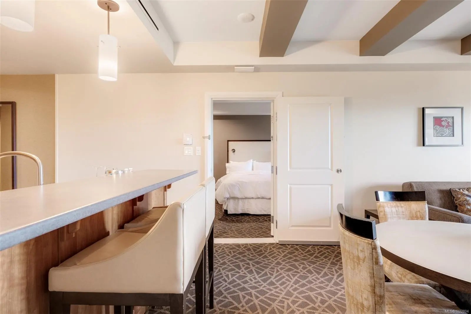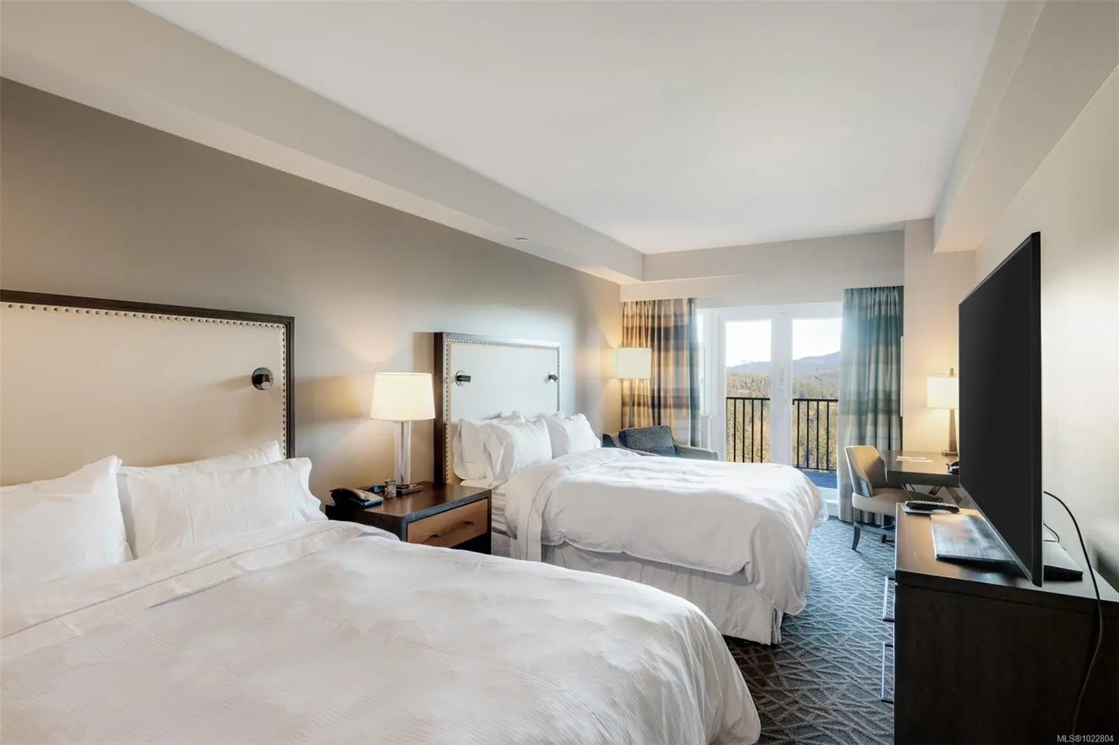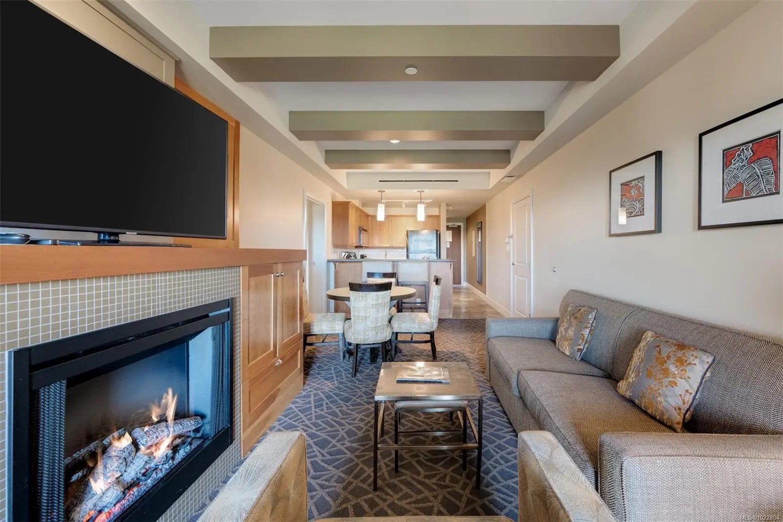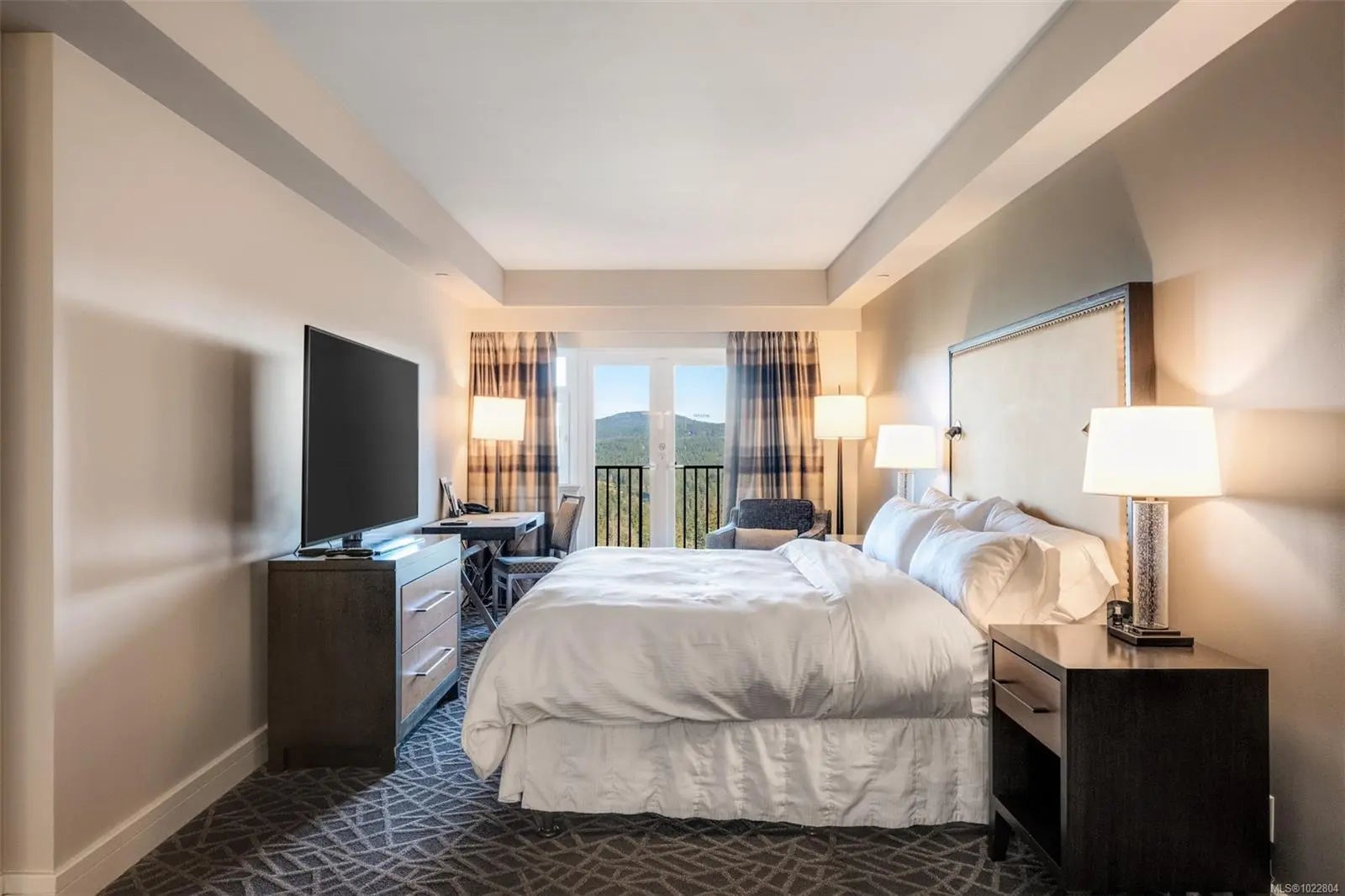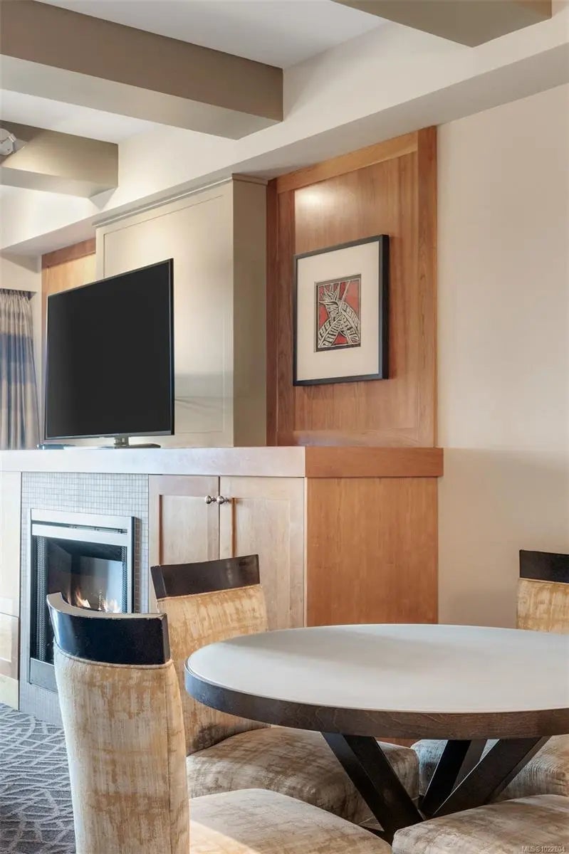 Incredible opportunity to own in Bear Mountain Resort Community! Fractional ownership in the ClubHouse at the Westin Golf Resort & Spa offers two adjoining rooms, providing guest privacy or spacious family accommodations. The kitchen flows into an open living area with a cozy fireplace, leading to a stunning patio with breathtaking mountain and golf course views. The primary suite boasts a desk area, balcony access, a walk-through double closet, and a luxurious 4-piece ensuite with a soaker tub. The additional lock-off suite sleeps four, featuring a wet bar and a 4-piece ensuite. Enjoy world-class amenities at your doorstep—two Championship Nicklaus-designed golf courses, Tennis Centre, an outdoor pool/hot tub at North Langford Recreation Centre, or hike/bike scenic trails and Mt. Finlayson. Your mountain retreat is just 20 minutes from downtown Victoria!