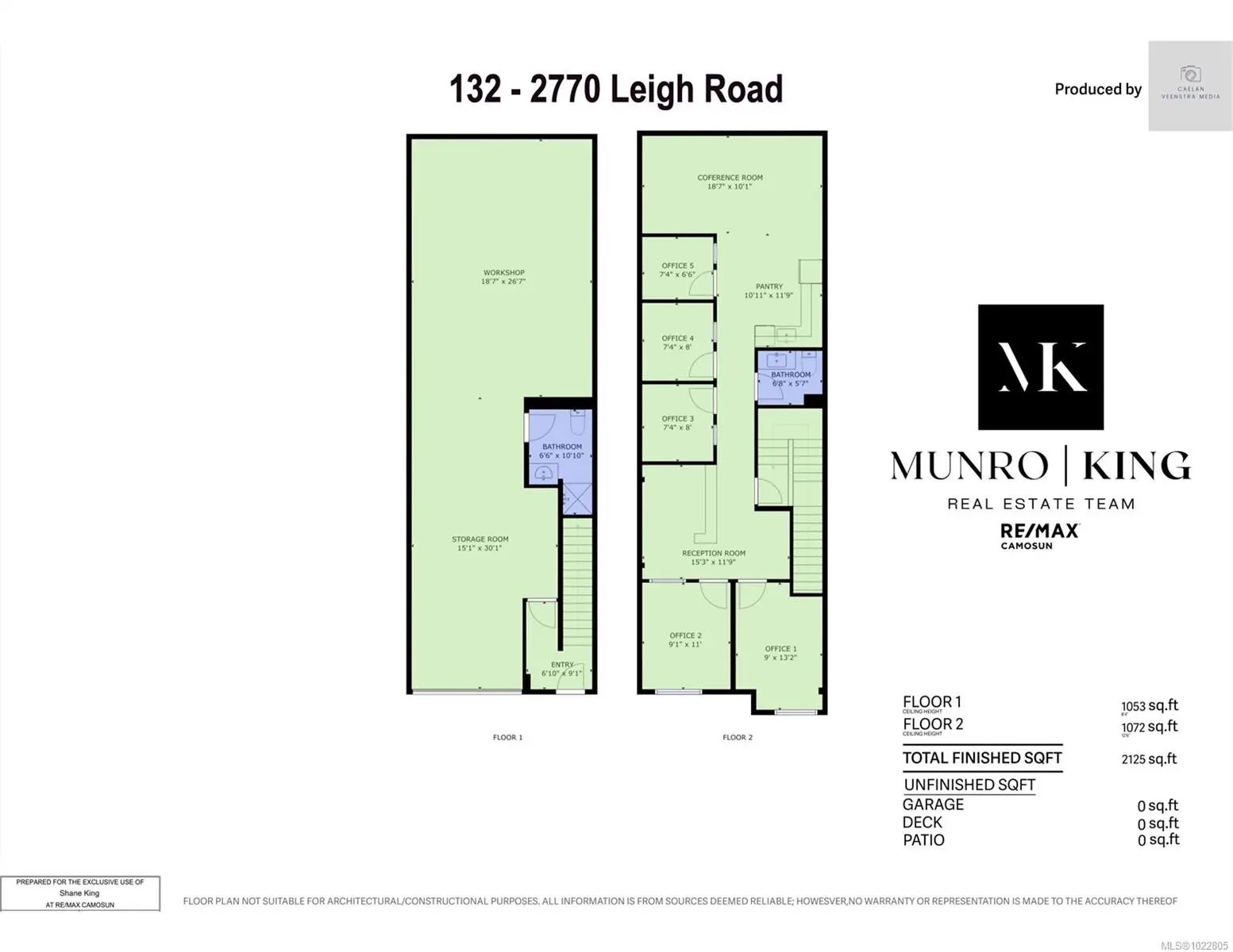 Opportunity to purchase a versatile strata industrial/commercial unit at 2770 Leigh Road in Langford. Unit 132 offers over 2,100 sq. ft. of well-designed space split evenly over two levels. The main floor is configured for light industrial or warehouse use and includes a 3-piece bathroom with convenient grade-level access. The upper floor is built out as office space featuring a reception area, five private offices, a conference area, employee kitchen, and a 2-piece bathroom. Zoned BT1, the property allows for a wide range of uses including (but not limited to) light industrial, office, electronics manufacturing, and training/education. The unit includes two LCP parking stalls located near the front entrance and offers easy loading access into the warehouse area. Ideally situated with quick access to the Trans-Canada Highway and excellent exposure along high-traffic Leigh Road, making it an outstanding opportunity for an owner-occupier or investor.