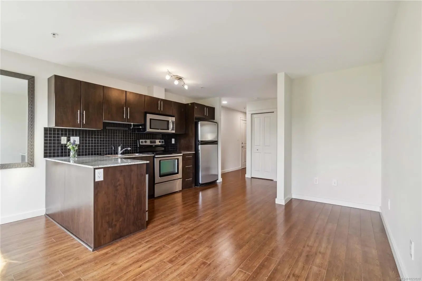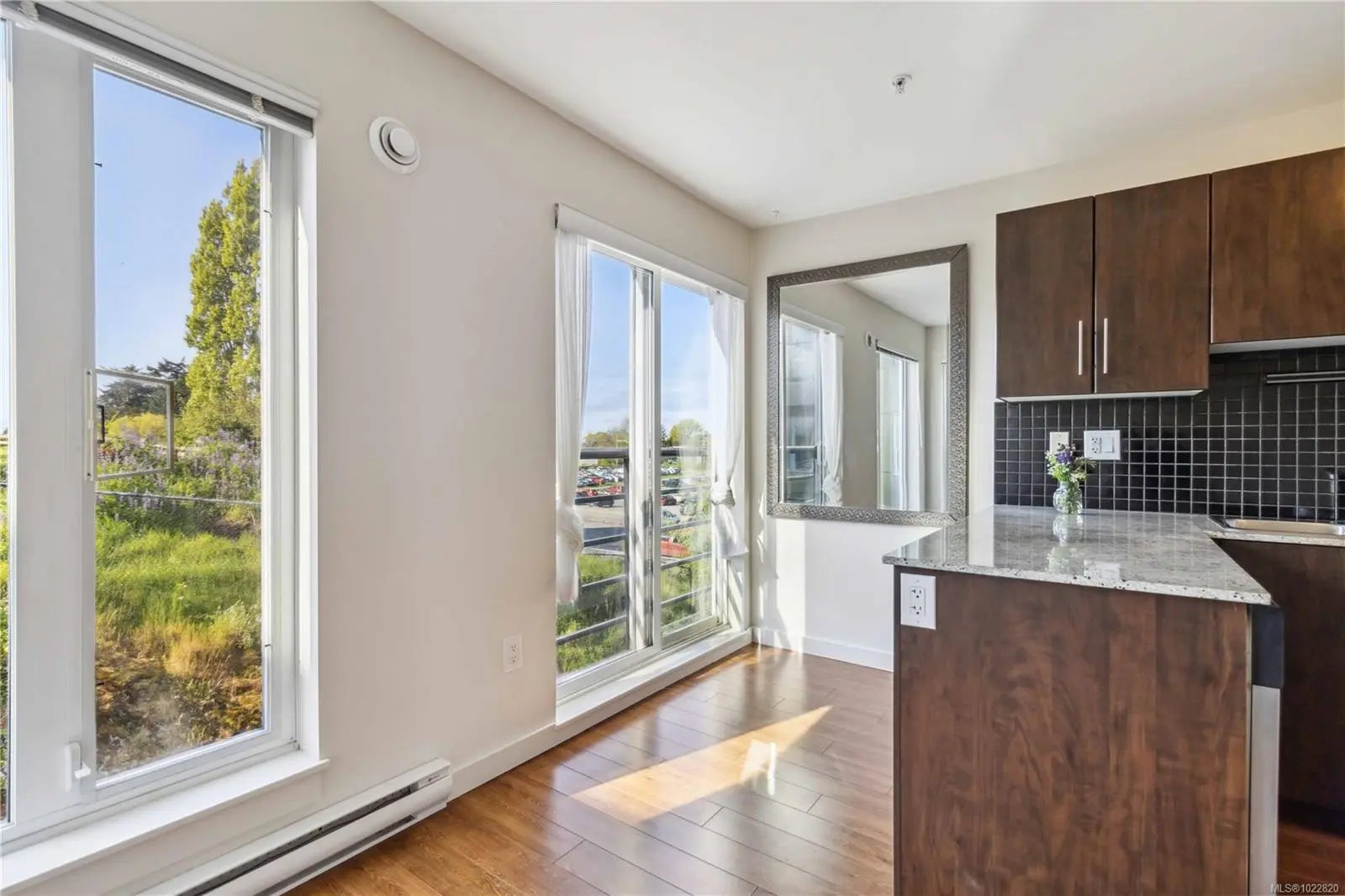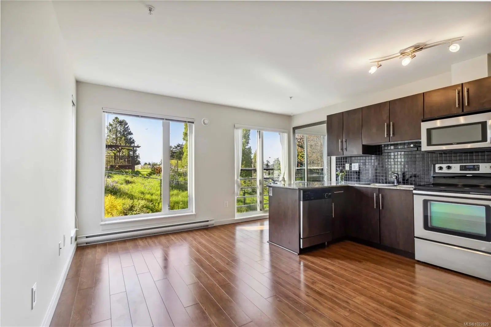 2010 boutique Saxe Point condo with the best views in the building. Close to the ocean and a corner unit. Calm, serene look out over Ken Hill Park with fabulous sunrises in your south facing home. Beautiful, sunny and bright with the park providing a peaceful and green backdrop replete with wildlife sightings from eagles and deer to many types of local birds. Very quiet part of the building so you can enjoy glimpses of the Olympic mountains. Freshly painted in a warm and neutral colour for an expansive feel. Stainless Steel appliances, in-suite laundry and granite counters. 1 parking spot included. Locked bike storage & large storage unit. Common roof top deck with complete panoramic views. For convenience: bus outside to UVic and downtown. Cats and dogs allowed (no weight limits, 2 pets) in this great location: parks, off leash areas, groceries, rec centre, library & great coffee all within walking distance. Also close to Saxe Point with the dog beach, swimming and stunning views.