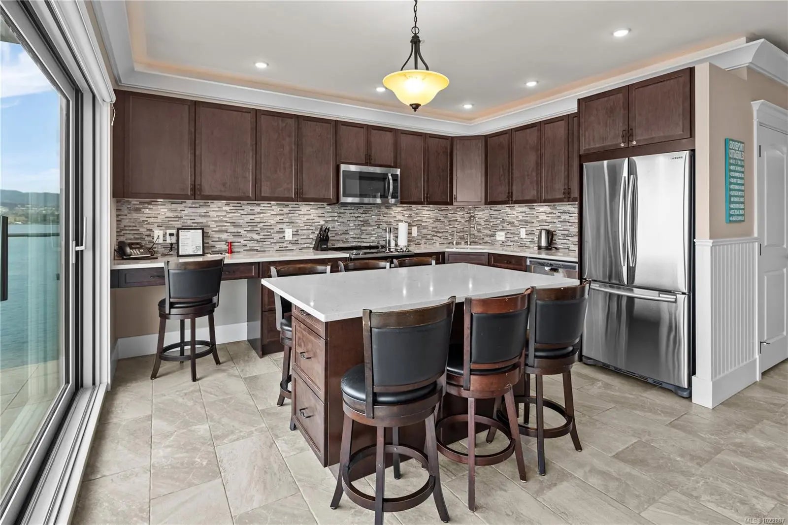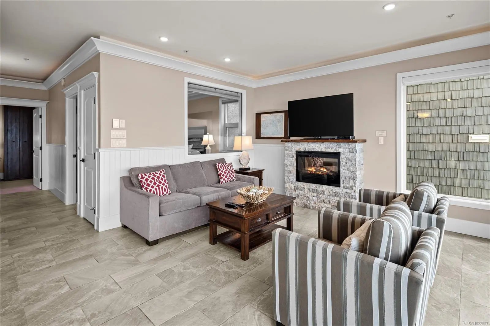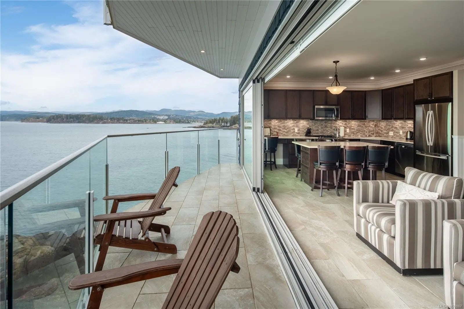 Experience the ease and elegance of oceanfront living in this exceptional two-bedroom, two-bath retreat. Perfectly positioned to capture panoramic views across the Salish Sea to the snow-dusted Olympic Mountains, each day offers nature’s finest show. Thoughtfully designed to bring the outdoors in, the open-concept layout features a dramatic wall of floor-to-ceiling sliders opening to a prow-shaped deck—ideal for soaking in the ever-changing coastal scenery. The chef-inspired kitchen is outfitted with quality stainless steel appliances, granite countertops, and custom cabinetry. The generous primary suite offers a spa-like ensuite with a freestanding soaker tub, separate shower, and heated floors. A second bedroom and full bath with stylish finishes ensure guests feel at home. Fully furnished, this home delivers effortless lock-and-go convenience, with flexibility to enjoy personally or rent while away—making it both a refined coastal sanctuary and a compelling investment opportunity.