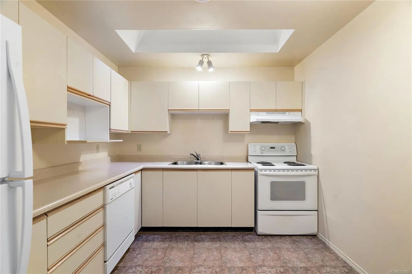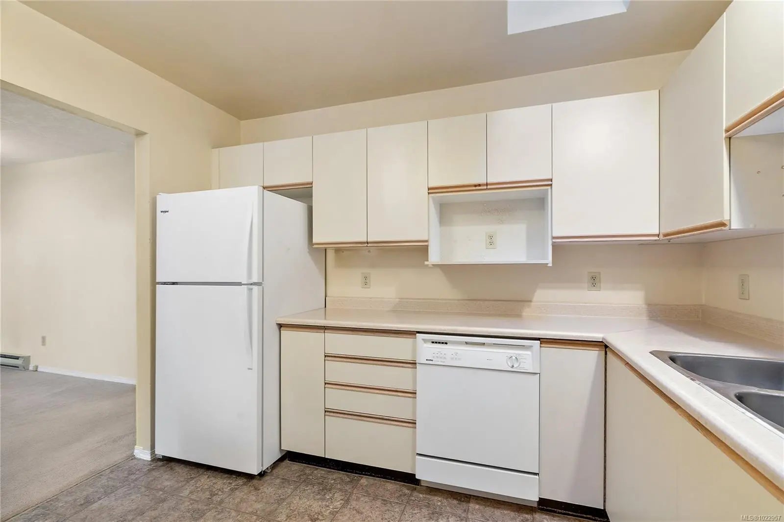 Don't miss this rare one level end unit townhome with two beds and two baths. The open floor plan makes the home feel very spacious, the skylights and large windows make it bright even on cloudy days it also has a lovely patio that is open to a large green space. Newer windows and heat pump help it stay cool in the summer and cozy in the winter. The complex is very neat and tidy and strata is well managed