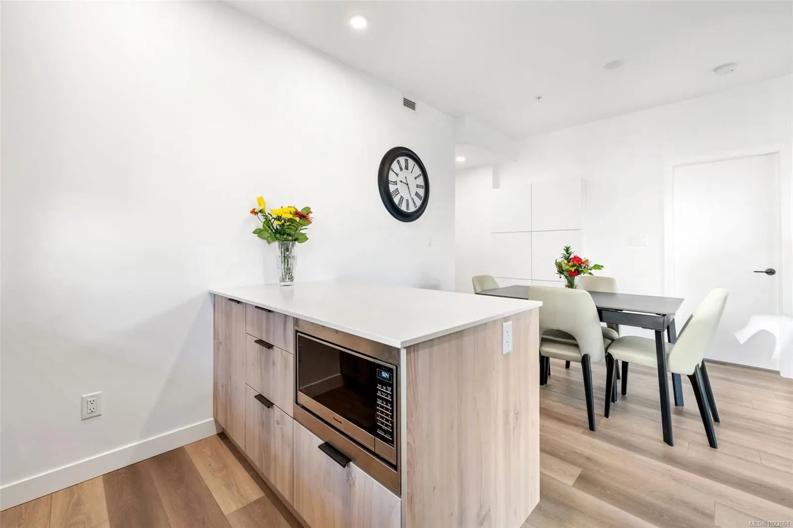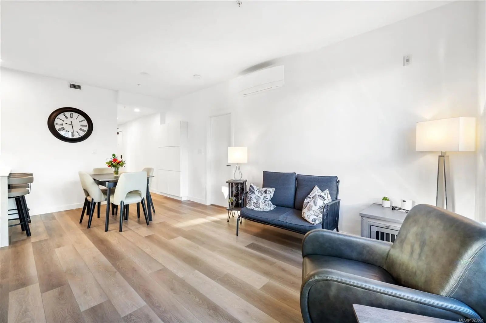 Experience coastal living with an extended walk out covered patio in this like-new 2 bed, 2 bath condo in the heart of Royal Bay, all with NO GST! The spacious covered patio with private access captures both morning and evening sun, makes dog lover's lives easy, and is perfect for enjoying hosting or relaxing by a propane fire. Offering ~900 sq ft of air conditioned modern designed space, sharing no side walls with other units, custom upgraded vinyl flooring, custom cabinetry and built-in closet organizers. Convenient kitchen with breakfast bar and stainless steel appliances. This unit includes TWO LCP side-by-side EV potential parking stalls just steps from elevator access, a storage locker, pet wash station, community garden and BBQ area, assigned bike storage, and a common rooftop patio and premium gym in the sister building. Steps to the Commons amenity village and future amenities, beaches, parks, schools, and trails. The lifestyle you’ve been looking for.