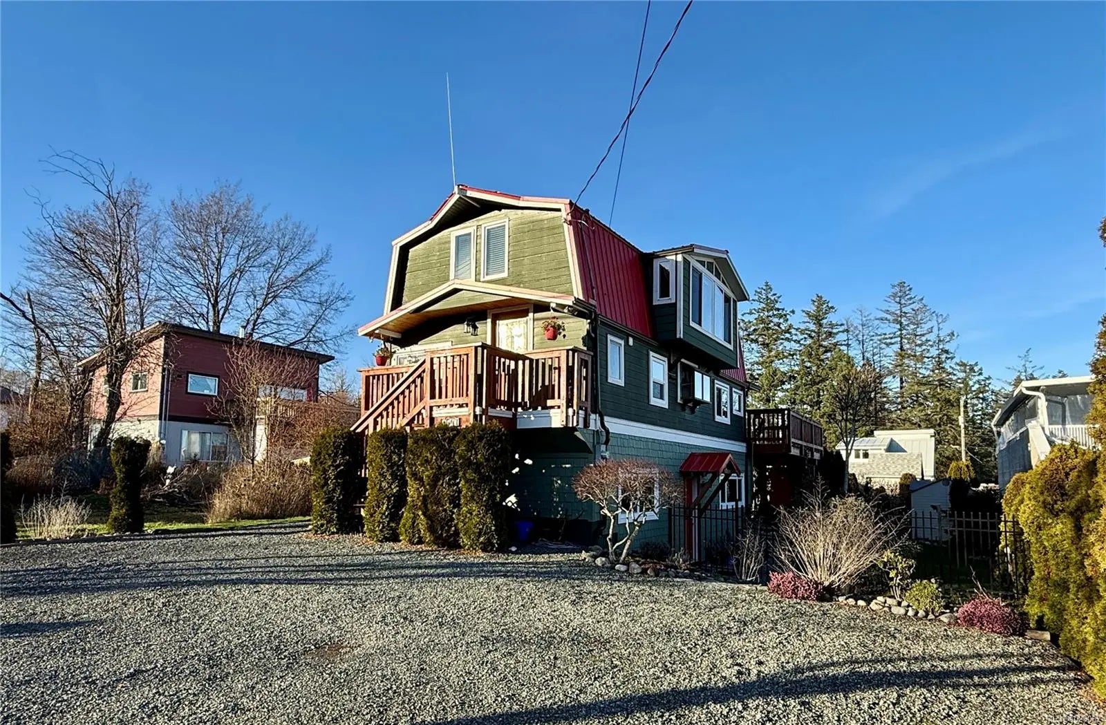 Zoned C2/R3 – rare blend of residential & commercial flexibility, allowing for a wide range of uses, including potential for an secondary suite - buyer to verify. Truly special & one-of-a-kind opportunity to own one of the most unique homes on Vancouver Island. Beautifully maintained & updated, this home tells a story unlike any other. Originally built as a float home, it was professionally relocated onto a foundation in 2013, creating a solid & distinctive residence with 3 beds + den, 3 baths & 1747sqft. Main floor is cozy & calming with natural materials, ocean views, propane fireplace, expansive (hot tub ready) deck & ample storage in the laundry room — great layout for everyday living. While upstairs you’ll find 2 beds, cozy den w/electric fireplace & 3pc bath. A full-height basement provides potential for a suite, home office or short term rental. Outside, enjoy lovely landscaping, ample parking & a walkable lifestyle—just steps to the ferry, boardwalk, restaurants & amenities.