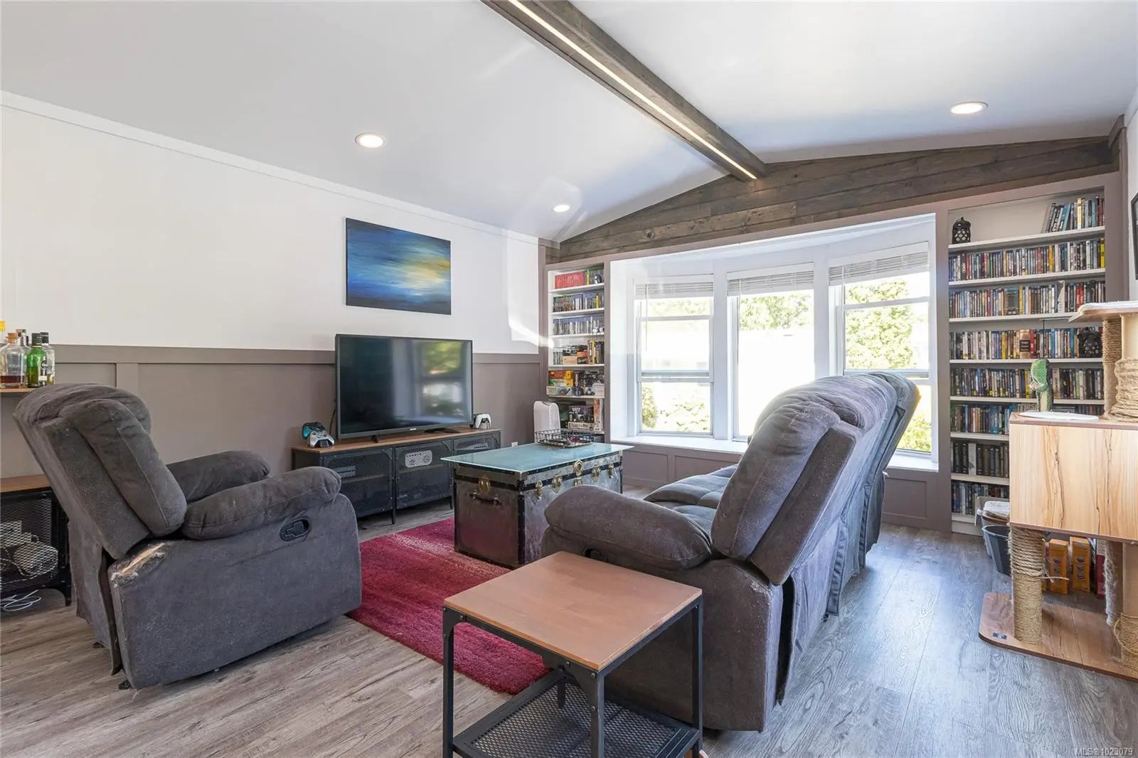 Extensively updated & move-in ready, this beautifully renovated 2BR, 1BA home is located in the desirable all-ages Cedar Ridge Estates. Step inside to a bright, modern interior featuring a fully updated kitchen with new cabinetry, under-cabinet lighting & stainless steel appliances, along with vinyl plank flooring, fresh paint, new lighting & custom built-in bookcases throughout. The updated bathroom includes a new tub, shower surround, modern vanity with kick-space lighting & a high-efficiency 150 CFM fan. Additional upgrades include a new hot water tank, updated plumbing & electrical (no poly-B), new panel, storm doors, washer & dryer with cabinetry & a wired storage shed. Outside, enjoy a freshly painted covered porch, new fencing & a private outdoor space ideal for relaxing or entertaining. Close to Saanichton Village, parks, shopping & Sidney in a pet-friendly, no age restriction community. Turnkey and a must-see!