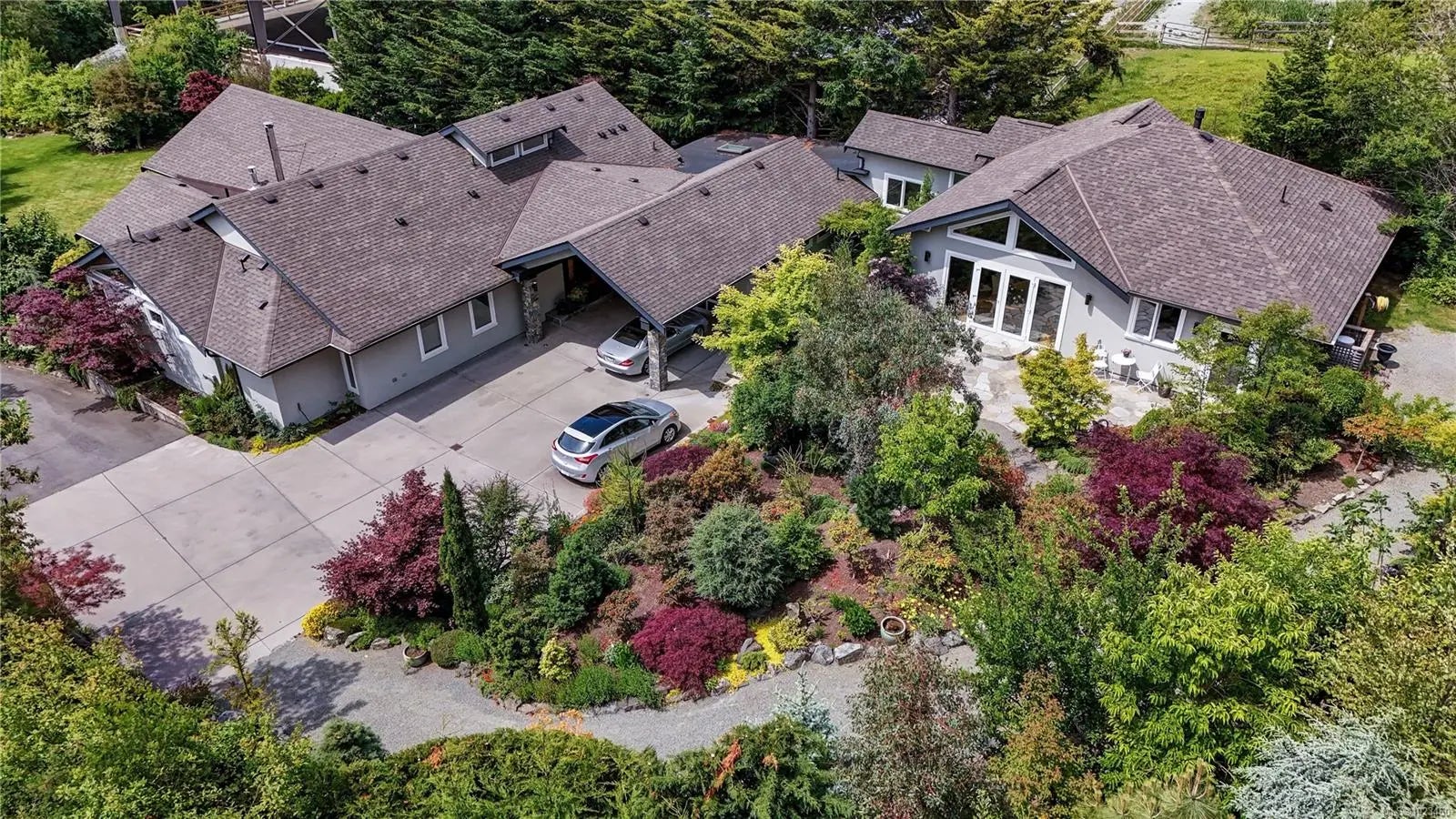 Welcome to 11333 Chalet Road: Ocean Views & English-country elegance. 4206 sq ft, modern 4 bed, 5 bath RANCHER with vaulted ceilings, on a private, fully fenced and gated 1.02 acre. West-facing over the warm waters of Deep Cove, with easy access to Chalet Beach. Completely renovated, including a 2000 sq ft addition with separate bedroom, bathroom, kitchen/wine room and 25'x19' family room, or a music or art space?, with French doors to a private, flagstone terrace. A great, multi-generational, living option. Fully landscaped: perennials, fruit trees & delicate maples, quiet seating areas, natural stone cascading waterfall, greenhouse and expansive lawn. Neighbours greet neighbours along forested trails & quiet, level country roads to local amenities & farmers' markets. Deep Cove: a coastal enclave of some of the finest properties in the country. 10 mins to Sidney, Airport and BC Ferries. A true haven for west coast living! Virtual Tour on our website.