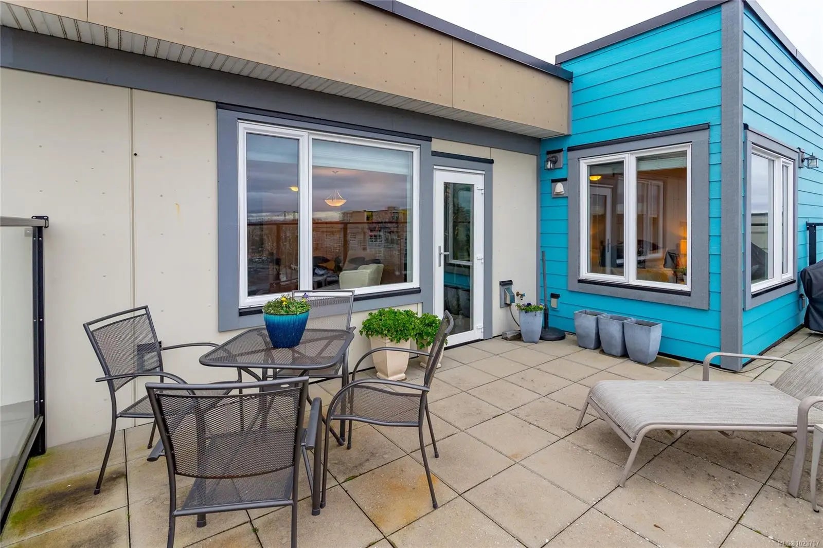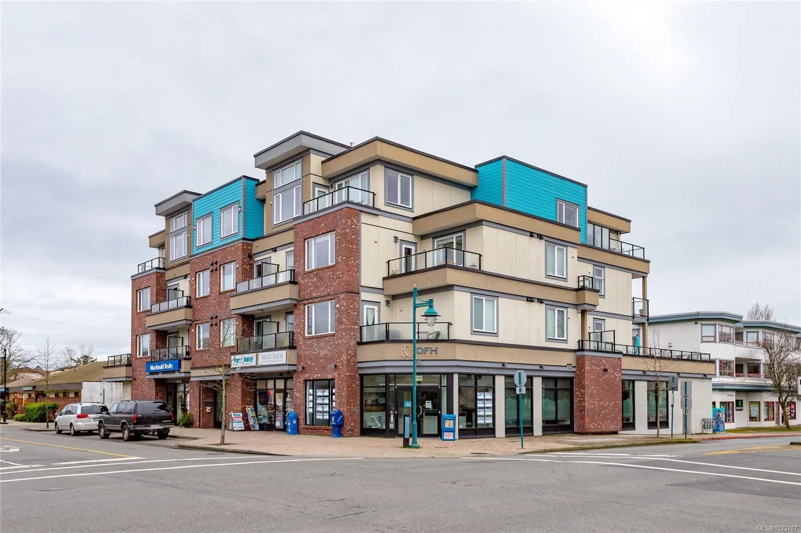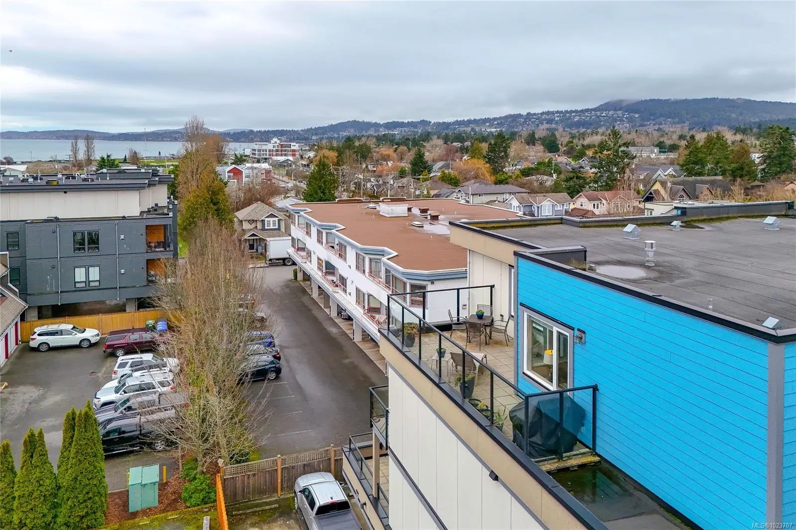 Location, location! This SE corner penthouse offers exquisite coastal living in the heart of friendly Sidney by the Sea, just one block from shops, restaurants & services, and only a few blocks from the waterfront promenade & iconic fishing pier. This 1470 sq.ft. light-filled home sits on the quiet side of the building, offering excellent privacy with no traffic noise and ocean & mountain views from every window. Open-concept layout features a well-appointed kitchen with solid-surface countertops, central island, SS appliances & gas range option. Relax in the spacious living room with a cozy natural gas fireplace. The generous primary bdrm, 3 baths & in-suite storage room (or home office) provide rare flexibility. Entertain on the exceptionally large SE-facing wrap-around balcony, perfect for enjoying city, ocean & mountain views. Additional highlights include a new hot water tank, bike storage, parking stall & private storage locker. Pet-friendly, all ages welcome, rentals permitted.