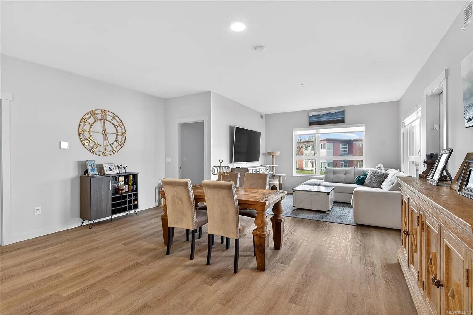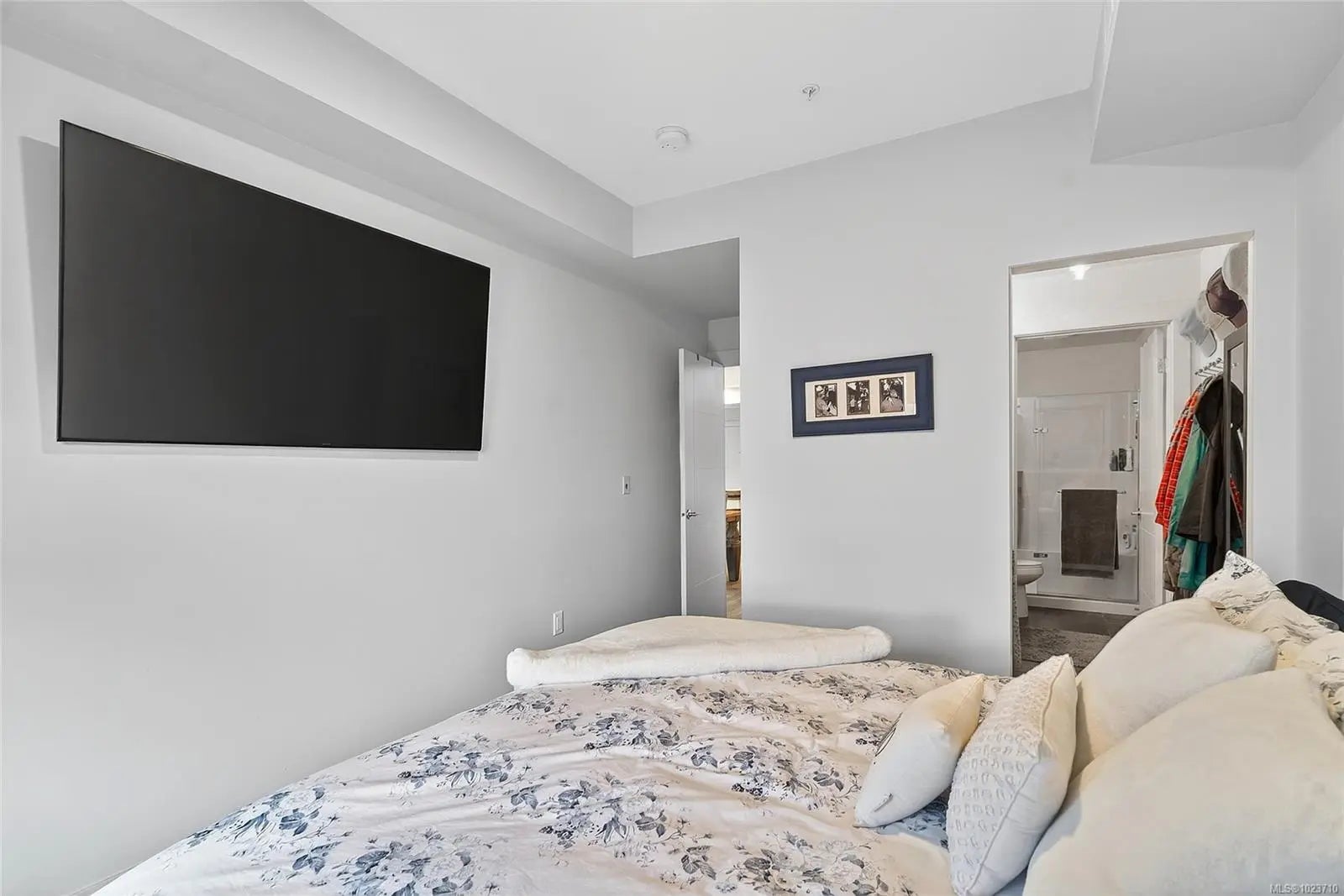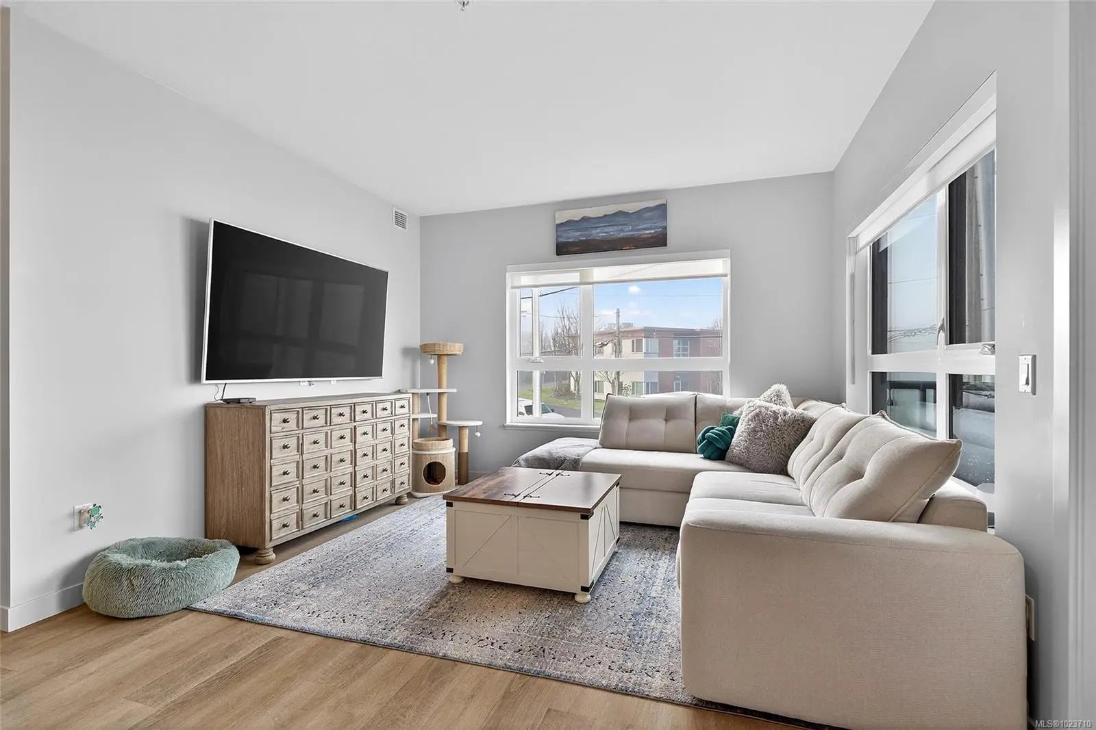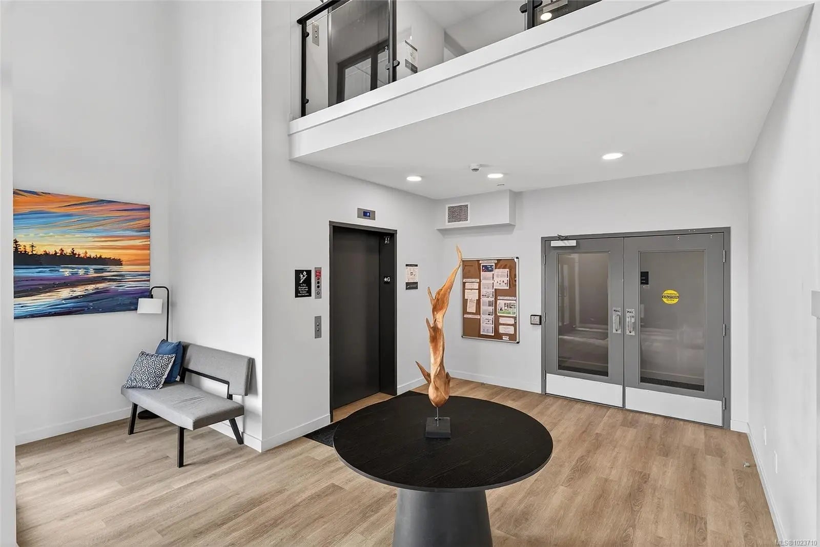 Welcome to Mosaic at Jensen, Parksville’s modern green built condo community in the heart of downtown. This spacious 2 bedroom, 2 bathroom home features the desirable Cabernet floor plan with an open layout and excellent bedroom separation. Northwest facing, the unit offers ocean views toward the Salish Sea and Lasqueti Island, plus a generous balcony ideal for afternoon light and evening sunsets. Inside are 9’ ceilings, quartz countertops, contemporary cabinetry, triple pane windows, and an energy efficient heat pump for heating and cooling. The functional design includes an office nook, in suite laundry, and bright open living space. The home includes a secure underground parking stall steps from the elevator, bike storage, entry with security system, a fourth floor storage locker, plus pet and rental friendly bylaws. Owner occupied and maintained in show home condition. Enjoy a walkable lifestyle with shops, cafes, restaurants, parks, and the beach just steps away.