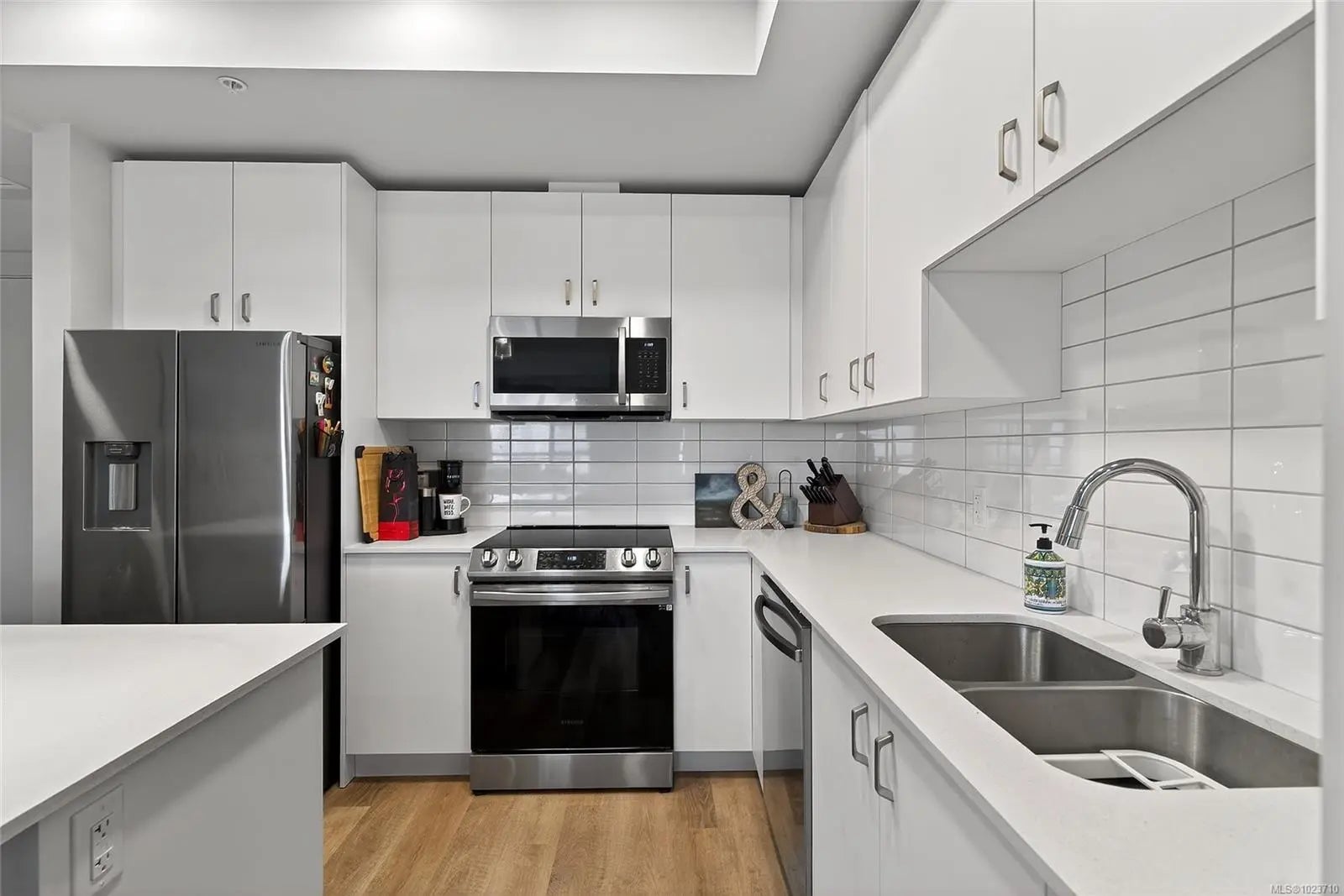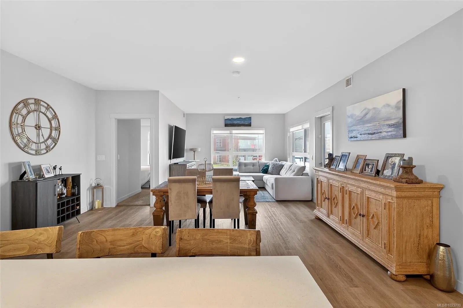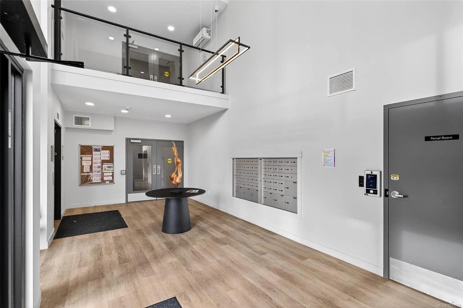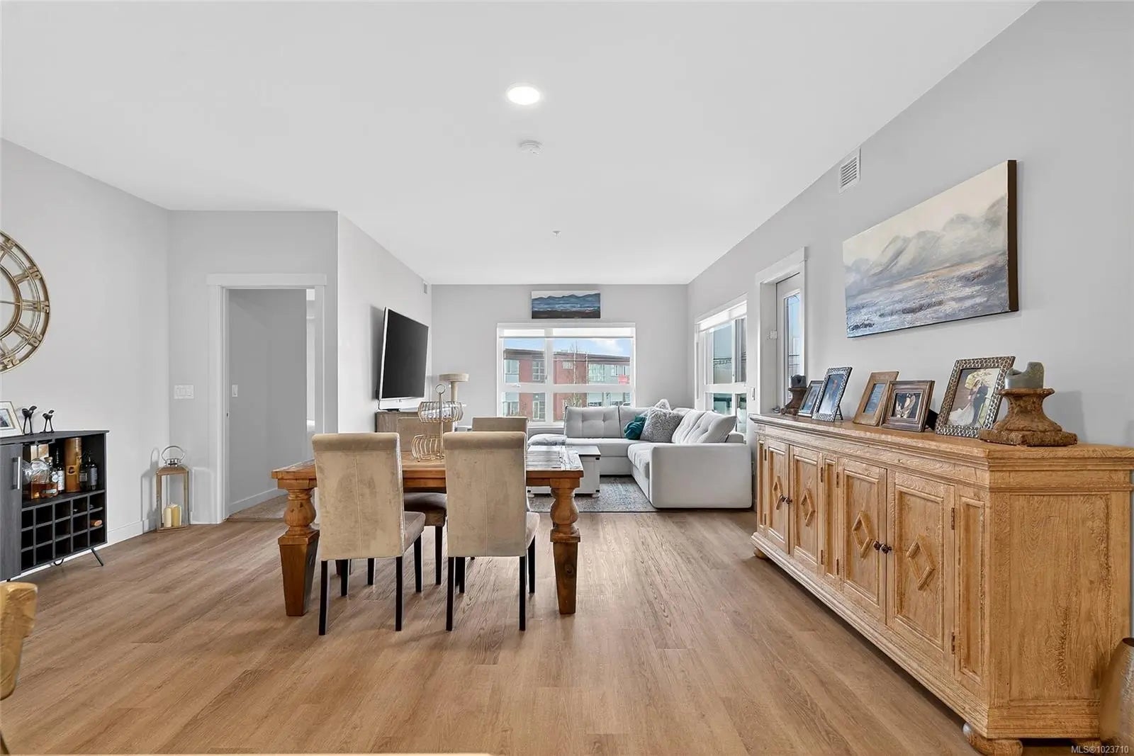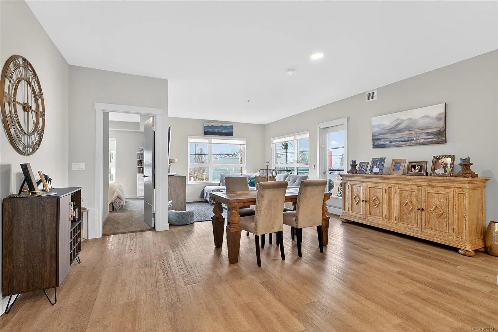 Welcome to Mosaic at Jensen, Parksville’s modern green built condo community in the heart of downtown. This spacious 2 bedroom, 2 bathroom home features the desirable Cabernet floor plan with an open layout and excellent bedroom separation. Northwest facing, the unit offers ocean views toward the Salish Sea and Lasqueti Island, plus a generous balcony ideal for afternoon light and evening sunsets. Inside are 9’ ceilings, quartz countertops, contemporary cabinetry, triple pane windows, and an energy efficient heat pump for heating and cooling. The functional design includes an office nook, in suite laundry, and bright open living space. The home includes a secure underground parking stall steps from the elevator, bike storage, entry with security system, a fourth floor storage locker, plus pet and rental friendly bylaws. Owner occupied and maintained in show home condition. Enjoy a walkable lifestyle with shops, cafes, restaurants, parks, and the beach just steps away.