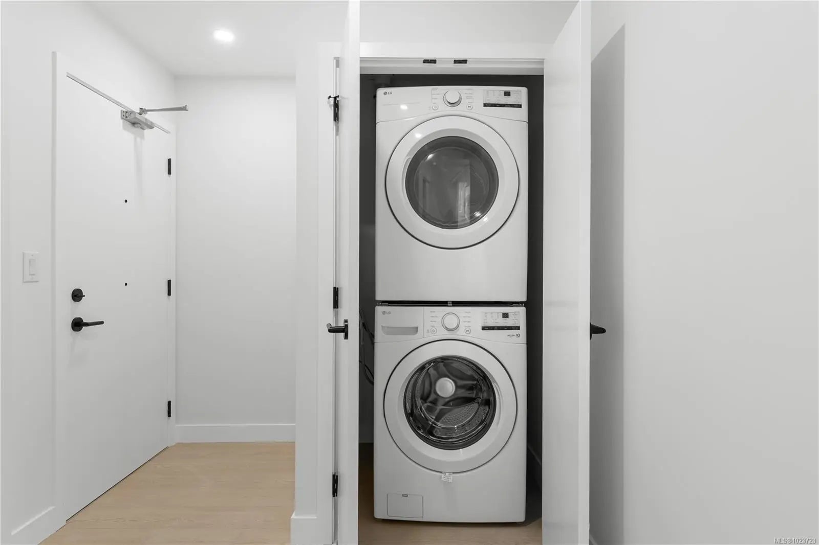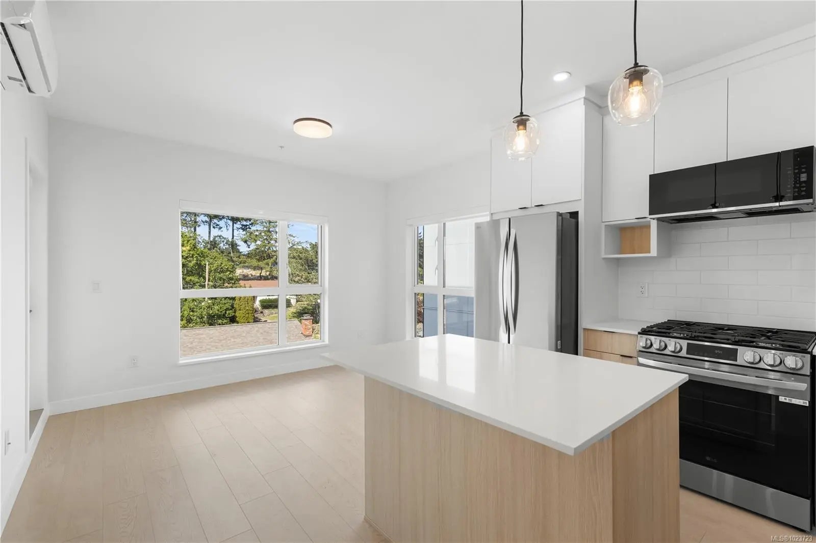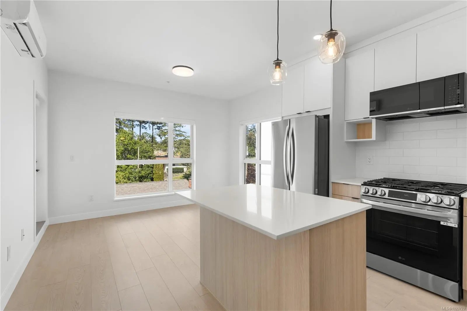 Welcome to Millstream Residences, built by renowned developer Landvision. This functional and thoughtfully designed 2 bedroom corner unit home offers 668 sqft of living space as well as a cozy 52 sqft patio, perfect to enjoy during the warm summer months. The open living space features oversized windows that flood the space with tons of natural light, durable neutral flooring and matte black hardware and details throughout that anchor the home. The kitchen features SS LG appliances, quartz countertops and island and two-tone cabinetry with ample room for storage. The building features a large outdoor space where you can connect with your neighbours and enjoy the green spaces, seating, BBQ’s and playground. Centrally located in the heart of Langford, you are just minutes from amazing amenities and recreation, schools, hiking trails, parks and lakes. Price + GST