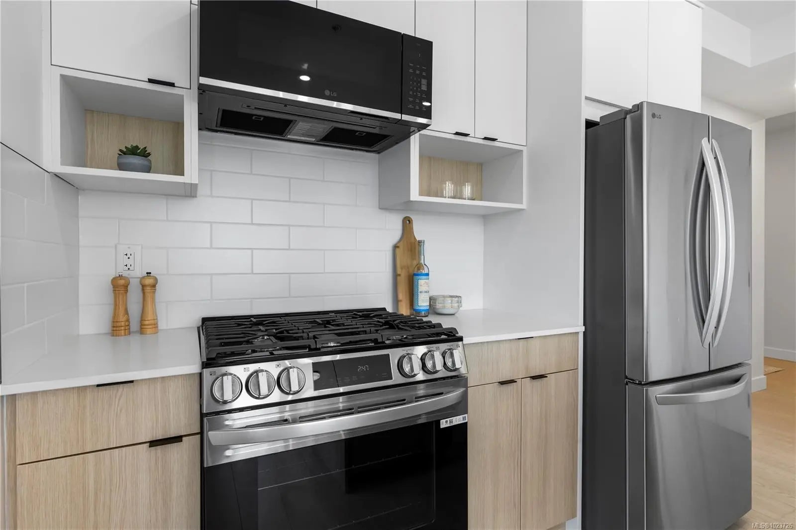 Welcome to Millstream Residences. This functional and thoughtfully designed 1 bedroom unit home offers 657 sqft of living space as well as a large balcony, perfect to enjoy during the warm summer months. The open living space features oversized windows that flood the space with tons of natural light, durable neutral flooring and matte black hardware and details throughout that anchor the home. The kitchen features SS LG appliances, quartz countertops and island and two-tone cabinetry with ample room for storage. The building features a large outdoor space where you can connect with your neighbours and enjoy the green spaces, seating, fire tables, BBQ’s and playground. Centrally located in the heart of Langford, you are just minutes from amazing amenities and recreation, schools, hiking trails, parks and lakes. Price + GST