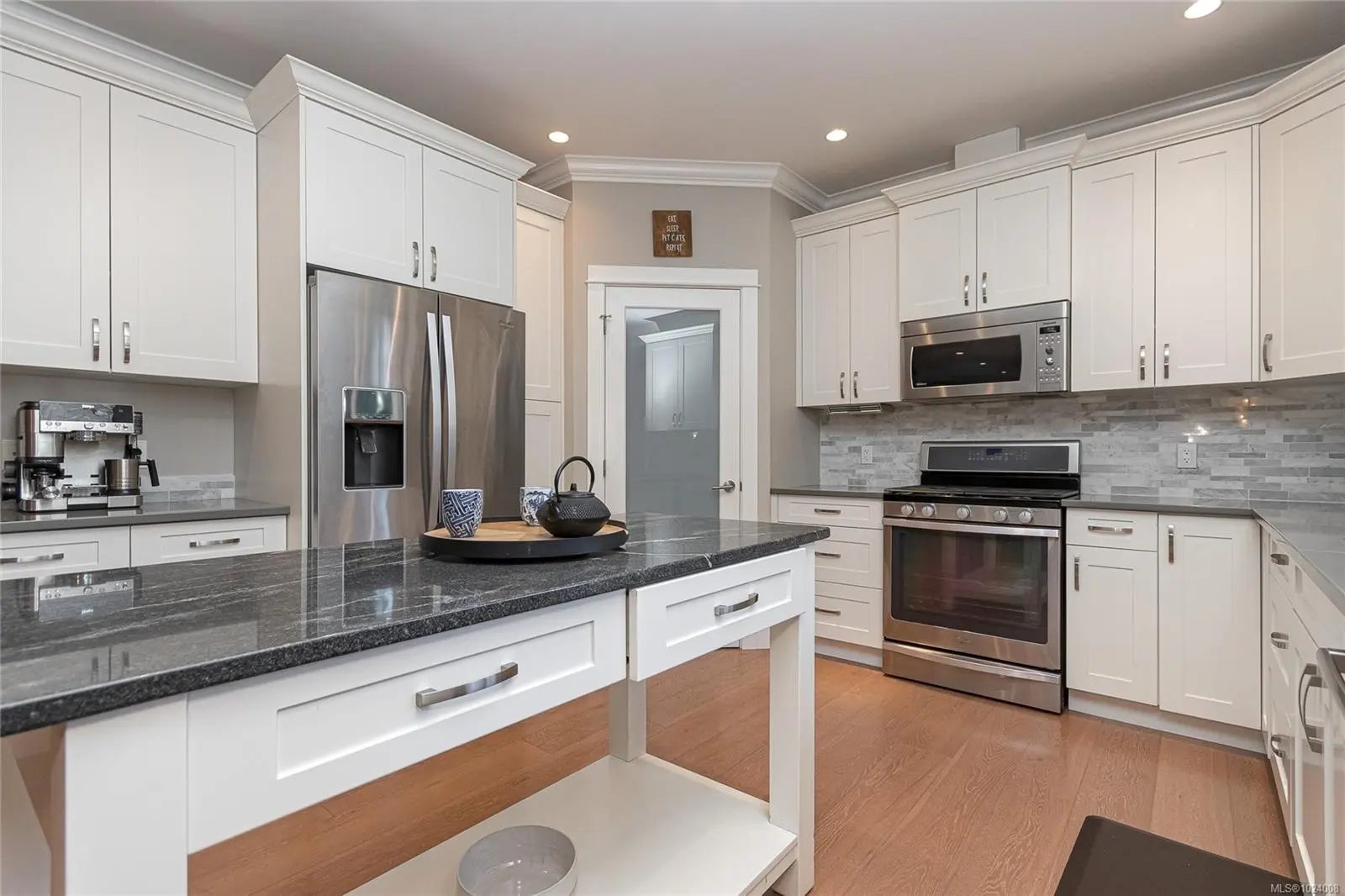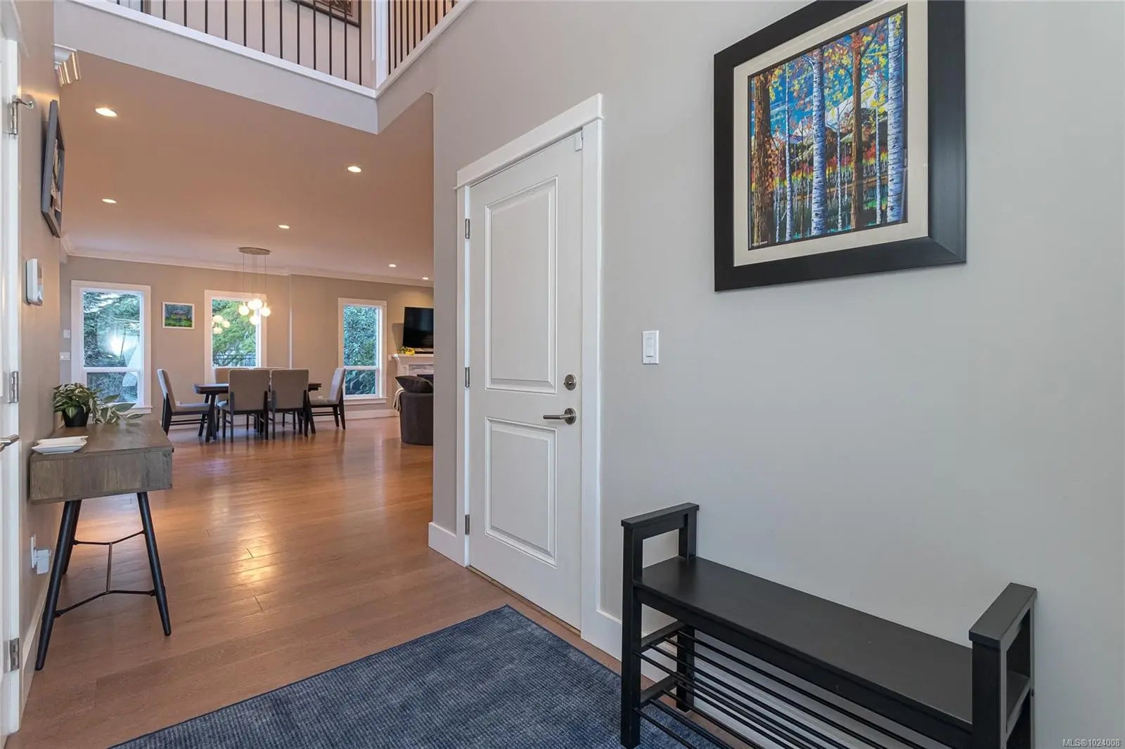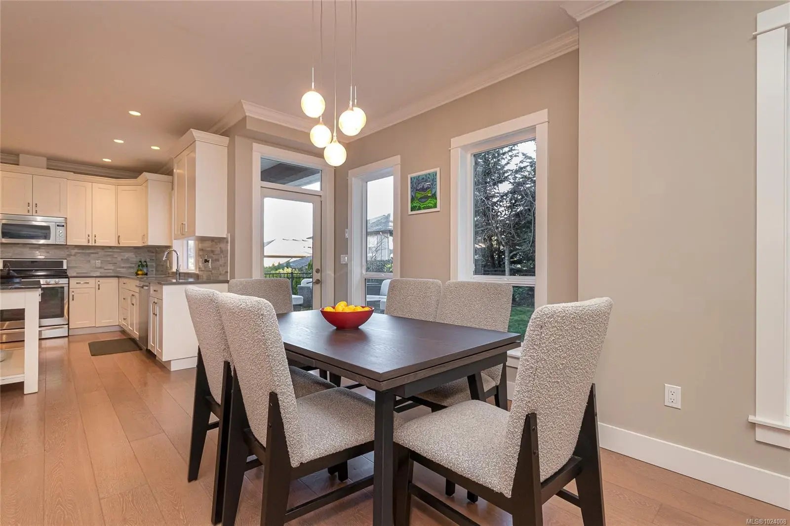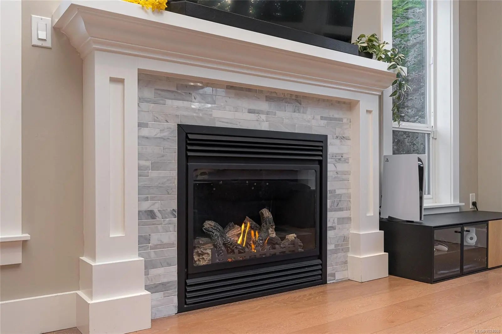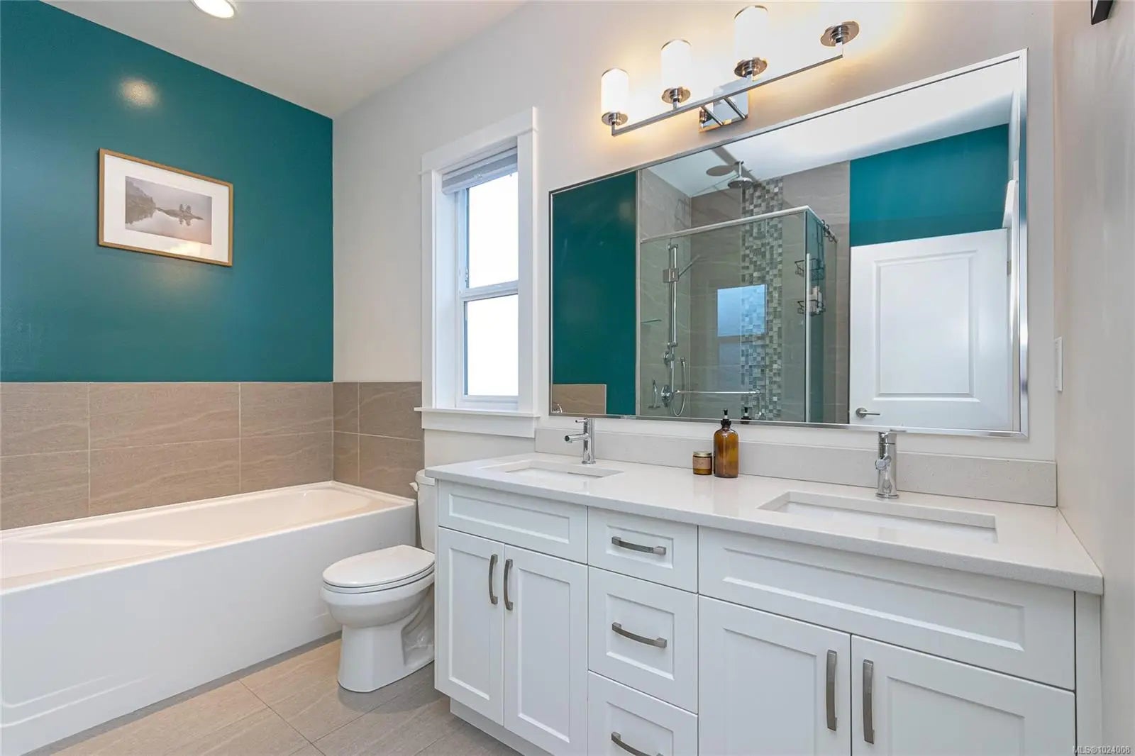 The perfect family home awaits. Built in 2014 this home offers a rare & sought-after floor plan w/4 spacious bedrms on the upper level. Tucked away on a quiet cul-de-sac adjacent to a natural green space park, enjoy exceptional privacy & tranquil forest views through floor-to-ceiling windows that flood the home with natural light. The no-step entry main floor features a bright, open living space ideal for family life and entertaining. The kitchen boasts quartz countertops, walk-in pantry, freestanding island, n-gas stove, and a window overlooking the backyard. The living room features a n-gas fireplace, park outlook, while a versatile family room works well as a media room, office, guest space, or playroom. Upstairs, the sizable primary suite has a spa-inspired 6-piece ensuite w/ shower, soaker tub, and twin sinks. In-floor radiant heating throughout home. Pls notice the easy-care landscaping, EV charger in the double garage, walkable transit, short bike ride to beaches and amenities.