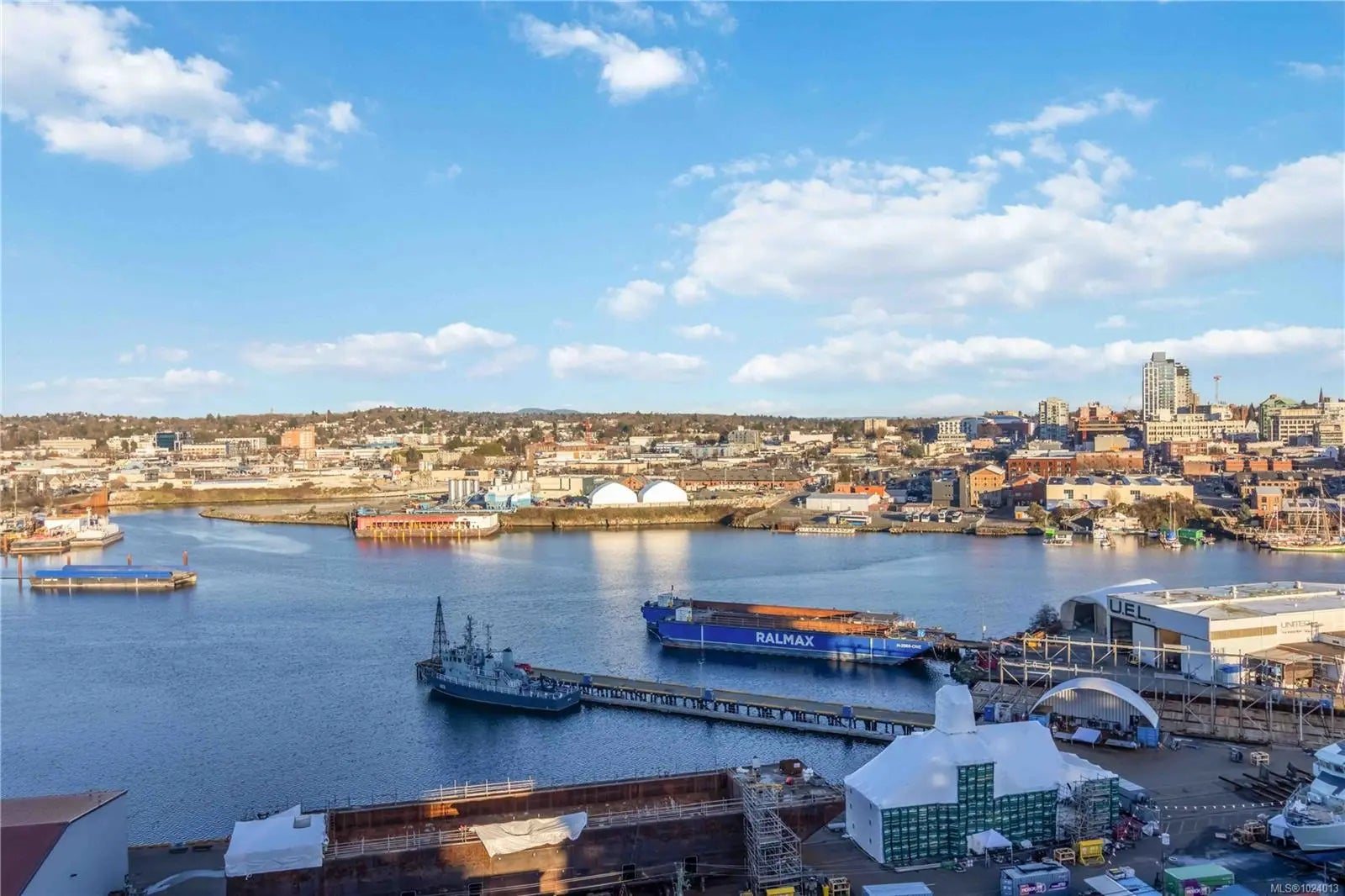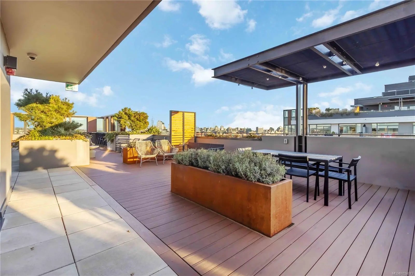 Discover elevated,sustainable living in this stunning 2 bed, 2 bath west-facing corner unit at Dockside Green Victoria’s award-winning community by Bosa. Bright open layout w/ premium finishes suits a modern harbourside life. Massive 800 sqft terrace expands space—no extra strata fees—perfect for entertaining,relaxing & enjoying mountain + ocean views w/ great afternoon sun.Eco-friendly radiant heating pairs with advanced ERV for fresh air & balanced temp/humidity year-round.Gourmet kitchen boasts Italian Stosa cabinetry, gas cooktop, Grohe premium fixtures, plus black solid walnut coffee station & entertainment unit. Includes Level 2 EV charging & storage locker behind parking stall. Third-floor unit offers ground-level privacy with easy walk-up access. Walkable Vic West:steps to Galloping Goose Trail,Songhees Walkway, cafes,shops - a quick walk to downtown & highway access. Amenities:rooftop terrace w/ BBQs & firepit,gym,lounge, pet spa, & secure bike storage—ideal for active living.
