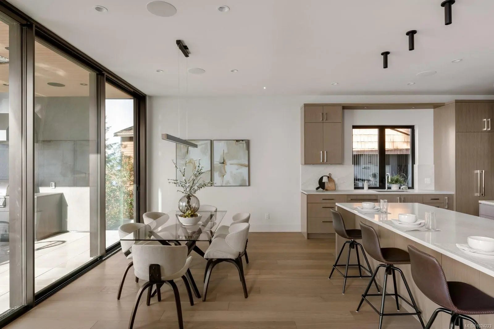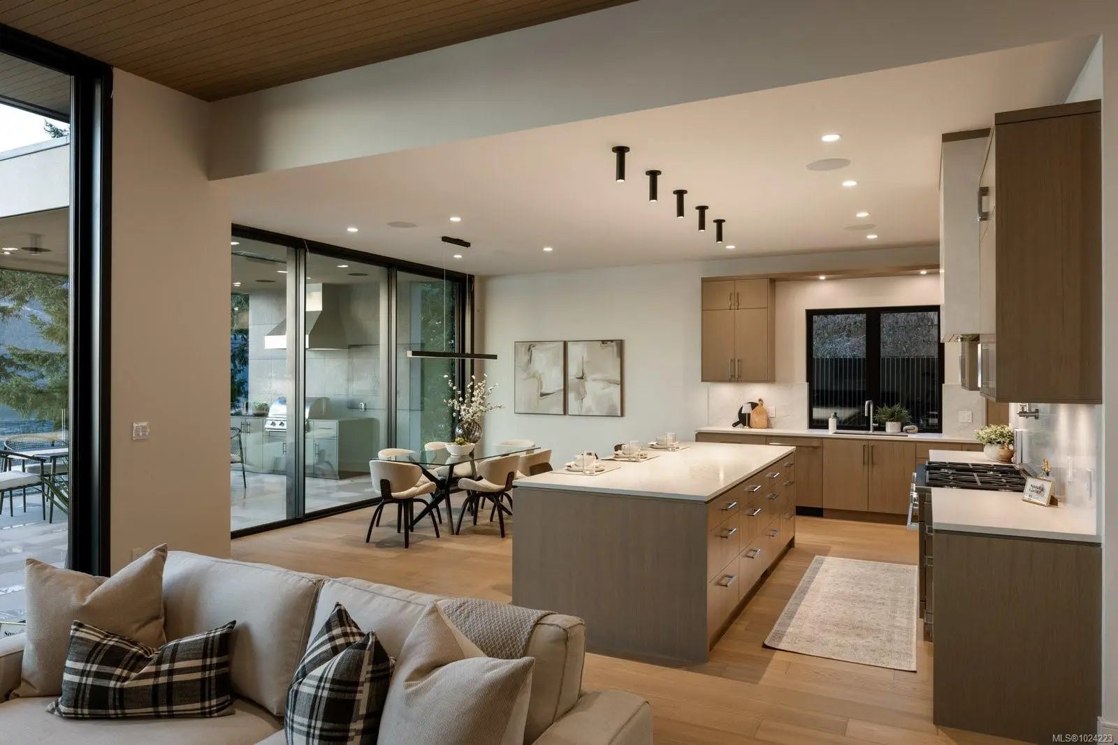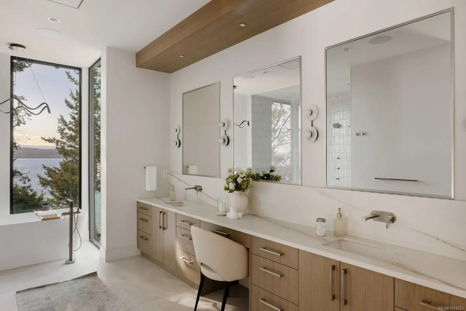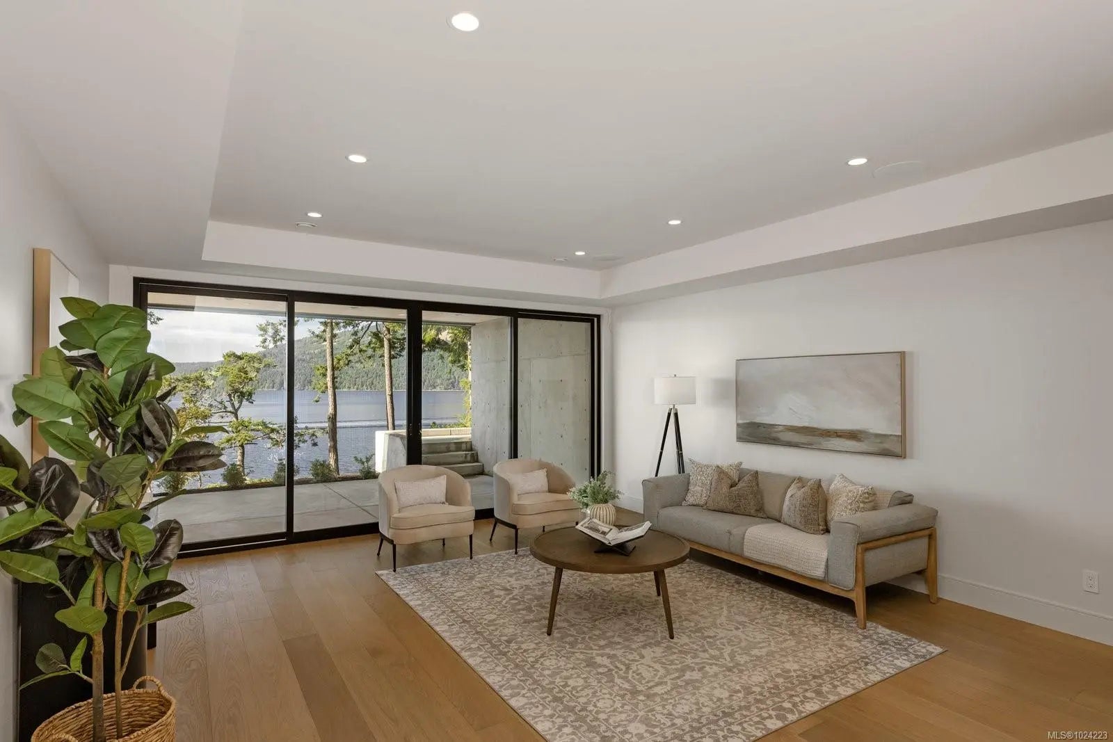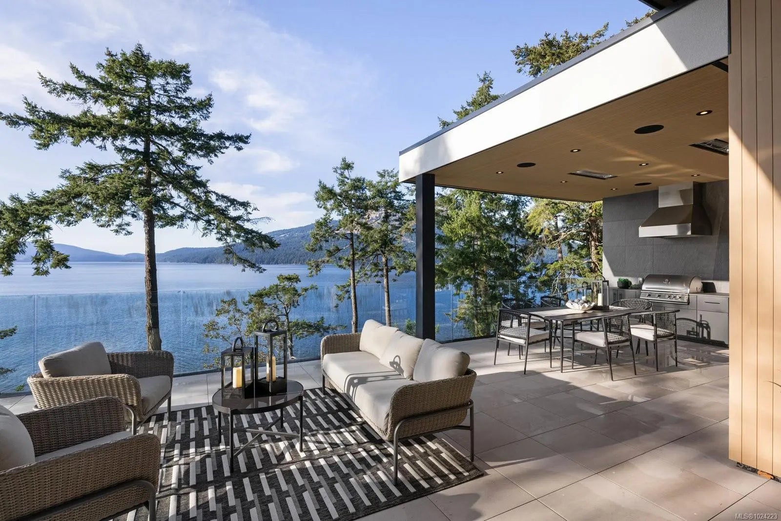 Experience resort-level comfort in complete privacy at this striking oceanfront retreat. Set on 1.08 acres with coveted western exposure, the 3,908 sq ft residence captures unforgettable sunsets and sweeping water views from nearly every room. Architecturally designed to maximize natural light, the home pairs modern lines with warm, natural materials—wood ceilings, soft textures, and impeccable finishes that feel calm and inviting. The open main living area features soaring 10–12’ ceilings, expansive windows, and dramatic floor-to-ceiling sliding doors that blur the line between indoors and out. Entertain effortlessly in the chef’s kitchen with a premium Miele appliance package, then dine al fresco on the heated covered terrace. A gated driveway, 3-car garage, and ample parking add convenience, while the thoughtful “lock-and-leave” design makes ownership easy. Built by award-winning contractor GT Mann, this is West Coast living at its finest.