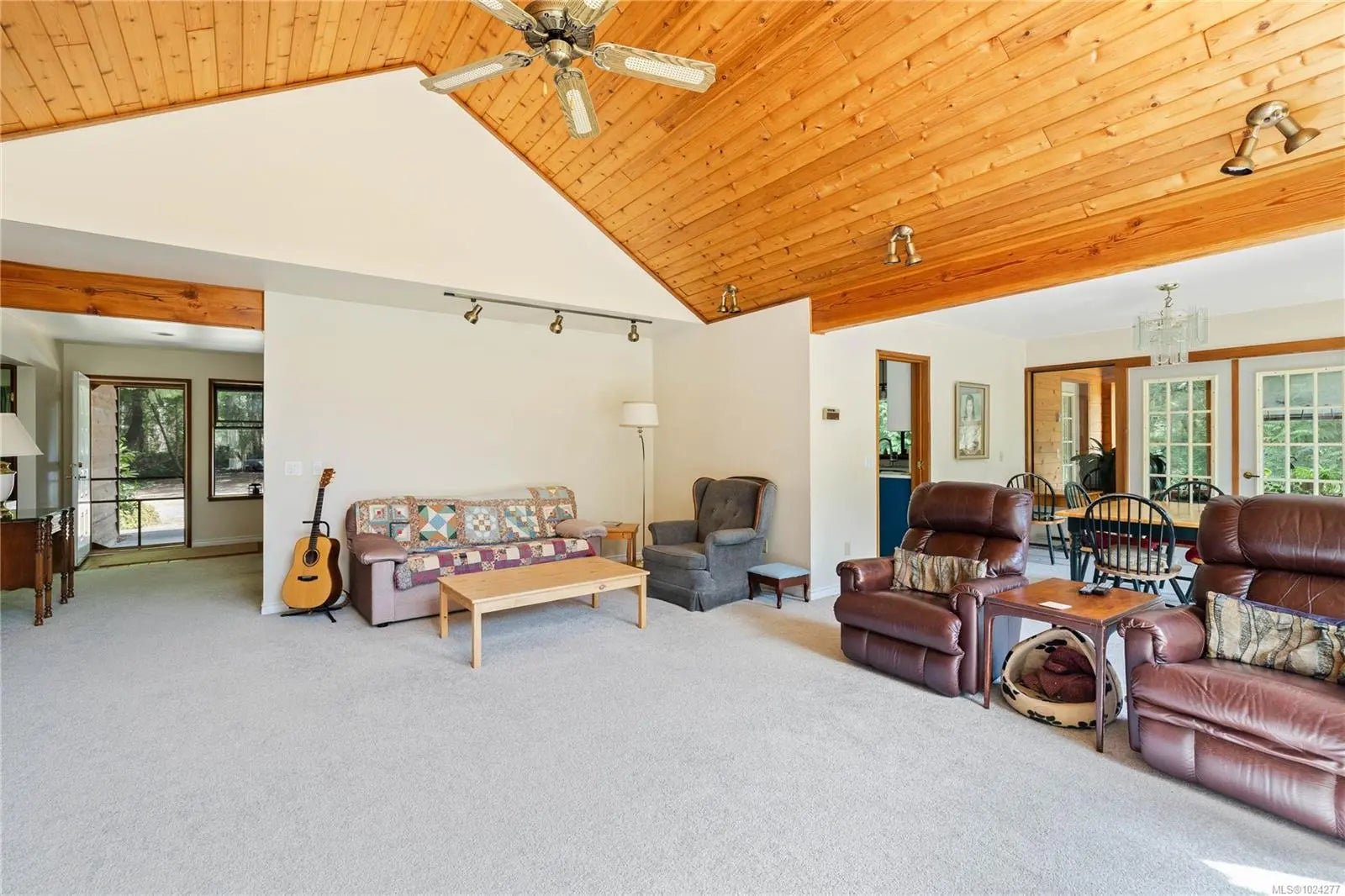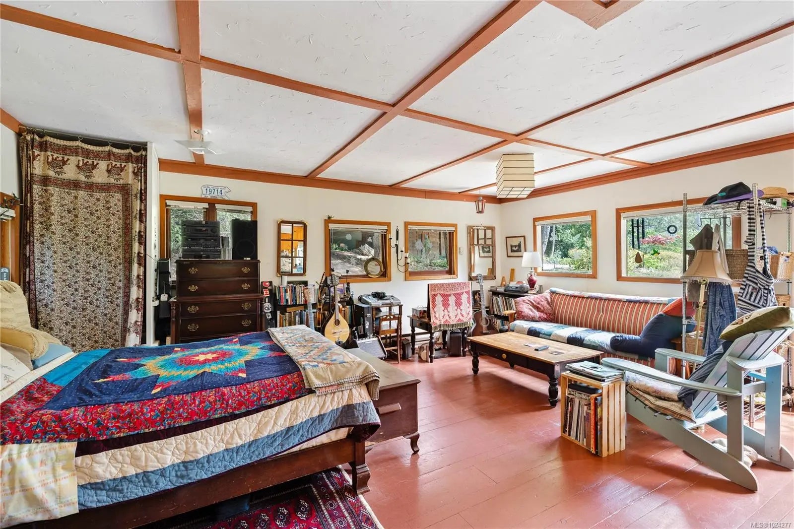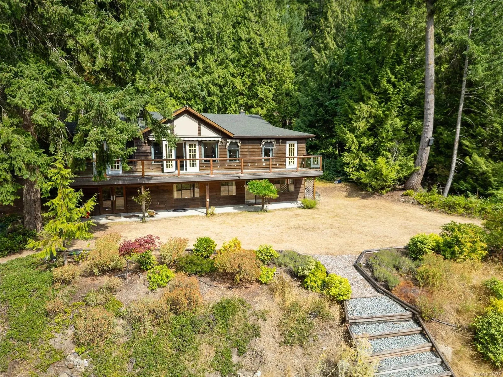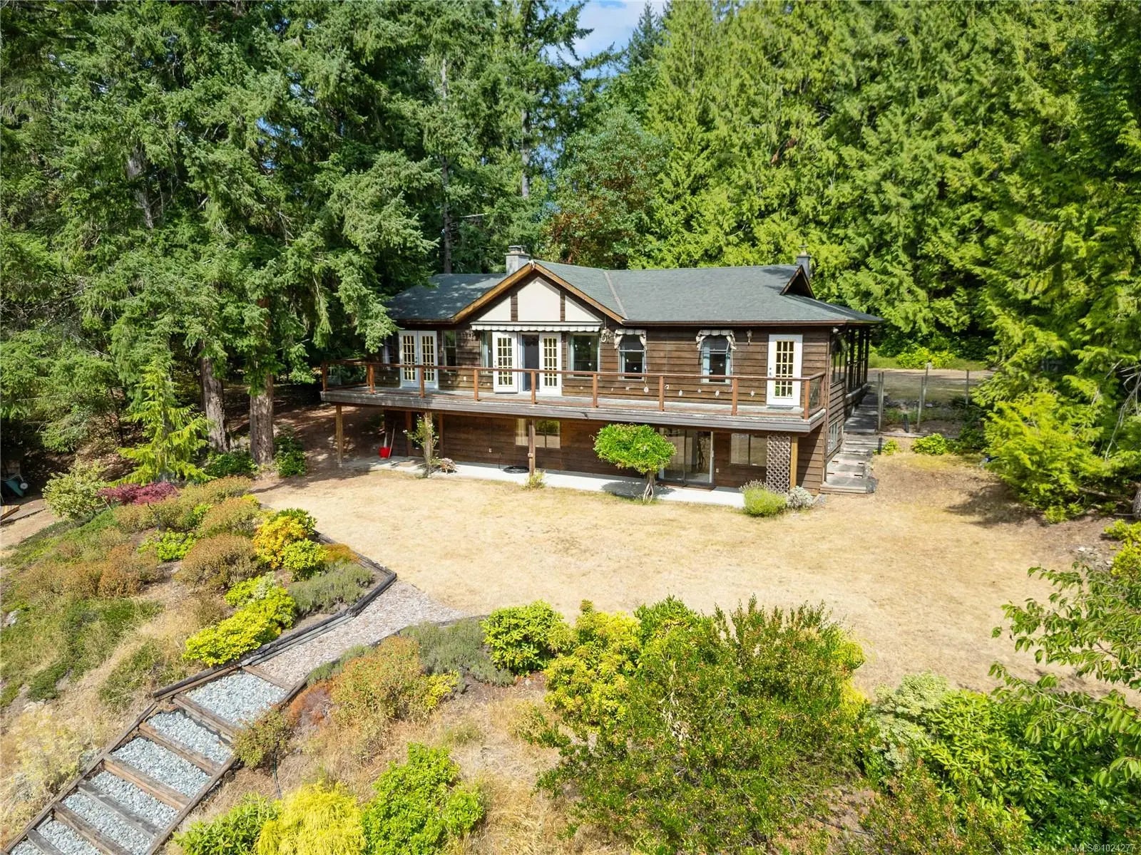 Your own secluded island sanctuary offered for the first time on the market. This outstanding estate is nestled on nearly 10 acres of sun-drenched, private land, with nearby shoreline access via the scenic Jack Foster Trail bordering the property. The well maintained, thoughtfully designed home harmonizes beautifully with its natural surroundings, offering efficient main-level living and stunning views over a large pond, lush perennial gardens, and fruit trees. West Coast charm shines with wood accents, vaulted ceilings, and a cozy fireplace, while the lower level provides a welcoming guest area. Relax on the sun decks and tranquil patio sitting areas, or retreat to the charming two-level substantial, guest cottage, with its own private location. A separate studio offers the perfect space for creative pursuits or a quiet workspace and in addiition, there is a triple care garage. Serenity, peace and quiet in a secluded natural setting close to the beach equals the perfect island haven.