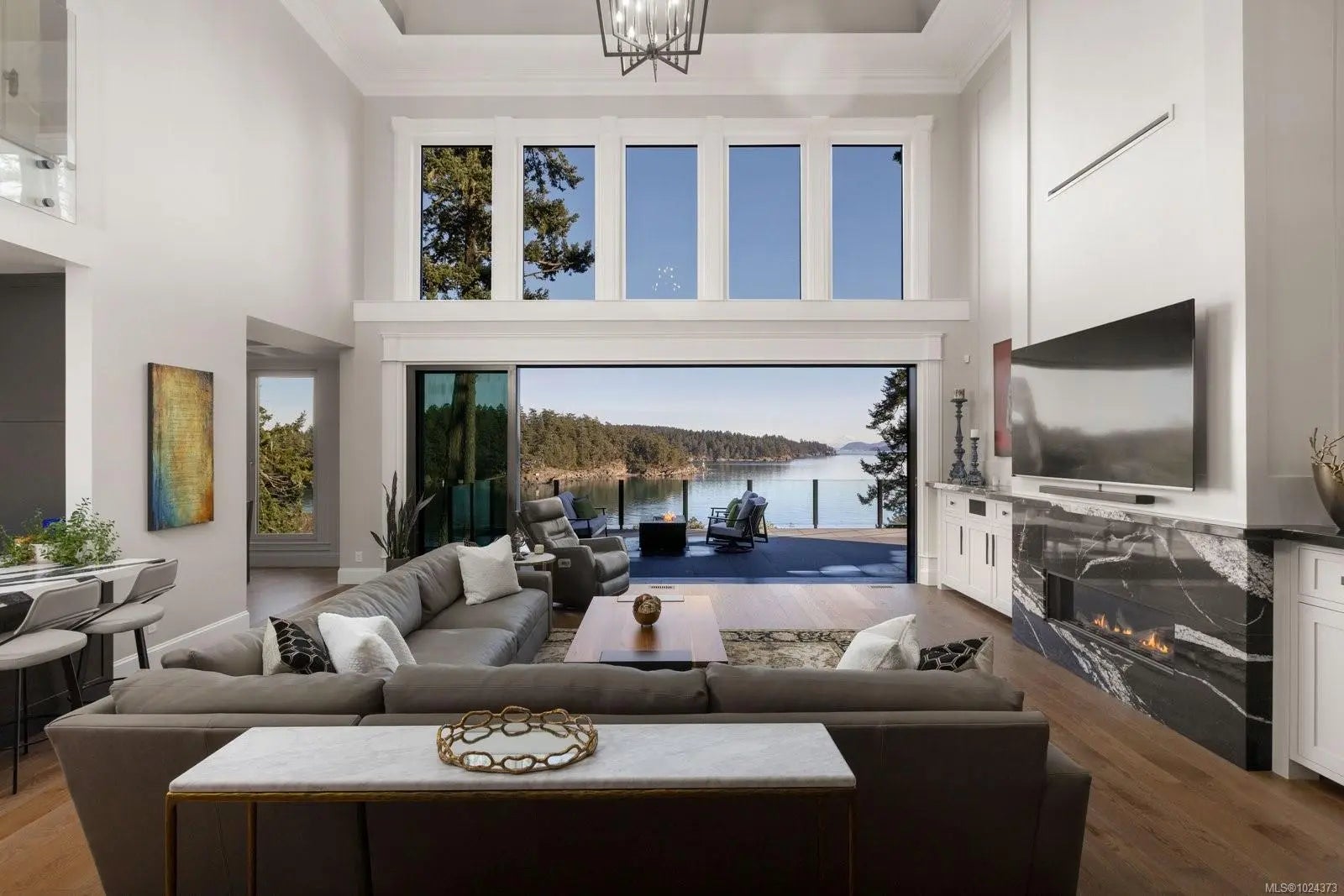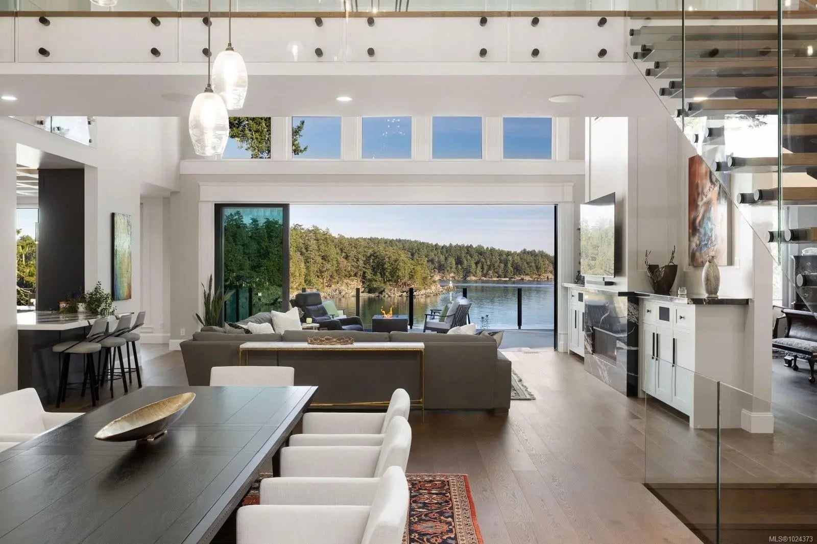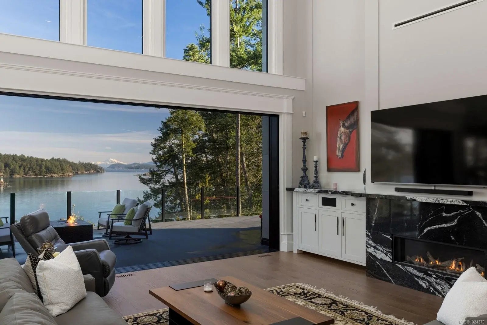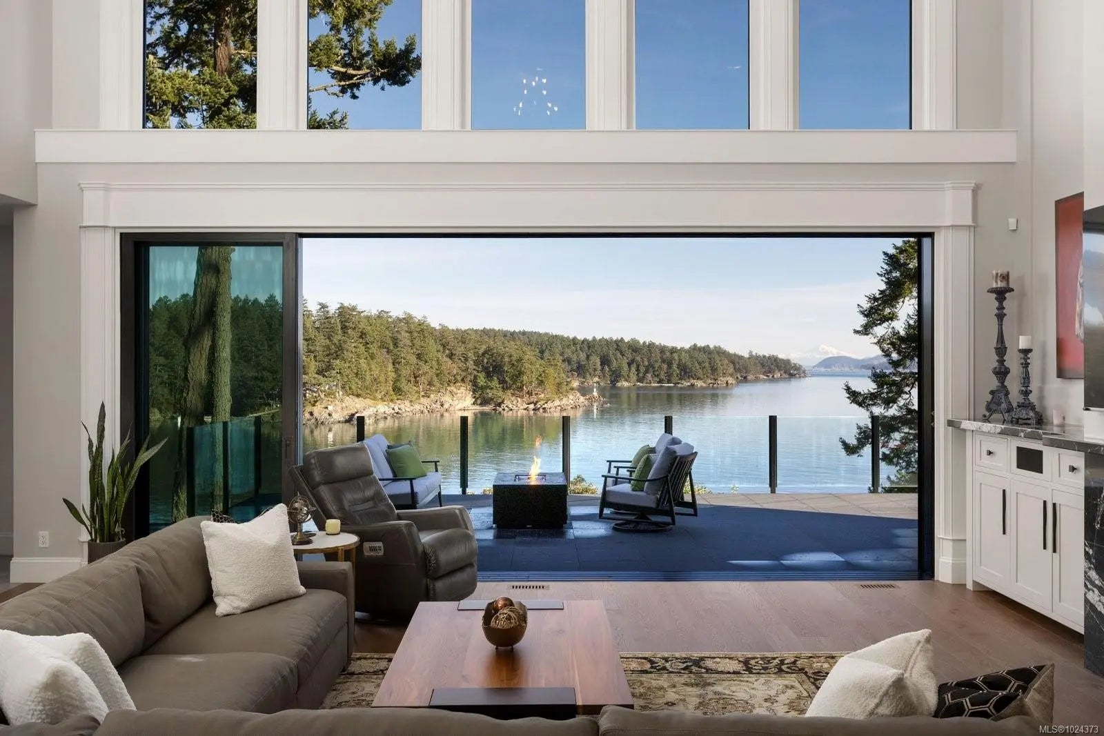 Set above a sheltered inlet on 1.26 acres of private waterfront, 10865 Fernie Wynd is an exceptional European-inspired estate offering over 9,300 sq ft of elevated West Coast living. Designed to capture the views at every turn, the home features expansive living spaces, two-story ceilings, and walls of glass that frame sweeping ocean and island vistas. Seamless indoor-outdoor flow leads to an expansive full-width deck with glass railings—perfect for entertaining, relaxing, and enjoying unforgettable sunsets. With six bedrooms, eight bathrooms, and a full recreation level, the home offers true estate-scale comfort. Surrounded by mature evergreens with direct beach access and crystal-clear water, this is a rare coastal retreat where privacy, luxury, and nature exist in perfect balance.