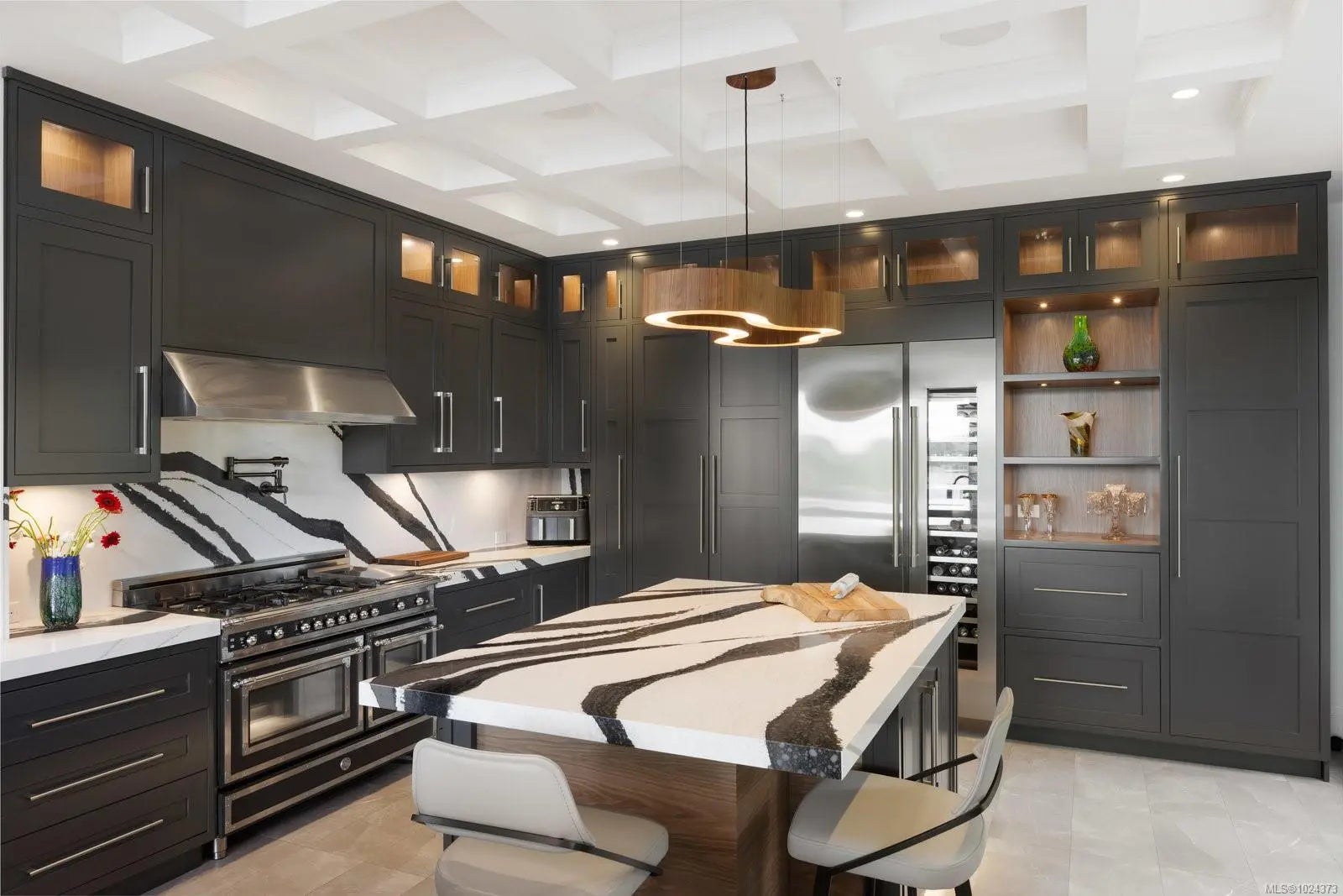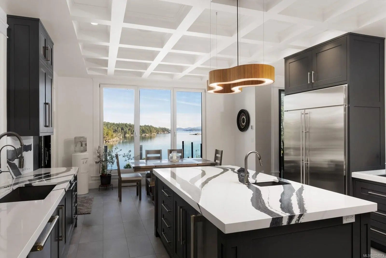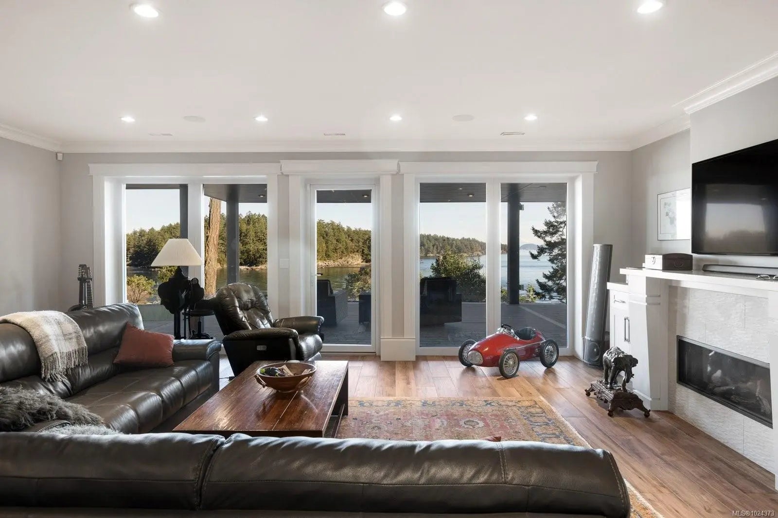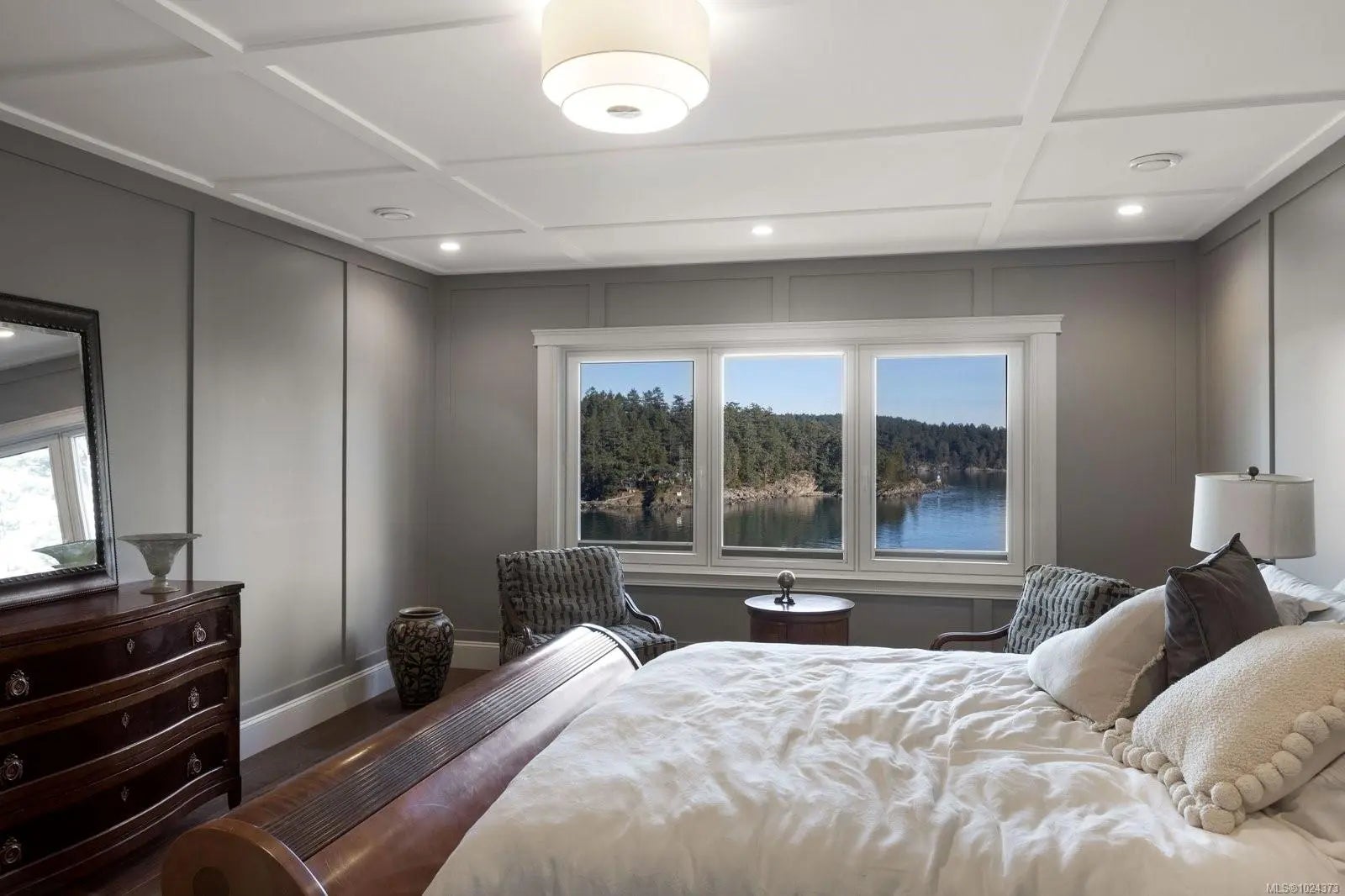 Set above a sheltered inlet on 1.26 acres of private waterfront, 10865 Fernie Wynd is an exceptional European-inspired estate offering over 9,300 sq ft of elevated West Coast living. Designed to capture the views at every turn, the home features expansive living spaces, two-story ceilings, and walls of glass that frame sweeping ocean and island vistas. Seamless indoor-outdoor flow leads to an expansive full-width deck with glass railings—perfect for entertaining, relaxing, and enjoying unforgettable sunsets. With six bedrooms, eight bathrooms, and a full recreation level, the home offers true estate-scale comfort. Surrounded by mature evergreens with direct beach access and crystal-clear water, this is a rare coastal retreat where privacy, luxury, and nature exist in perfect balance.
