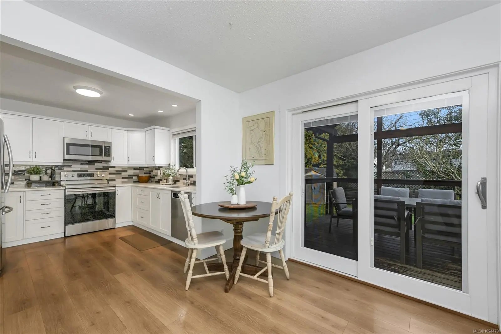 Welcome to this beautifully maintained 4BR, 3BA home tucked away in Sidney, offering flexible living spaces and a thoughtfully designed layout for everyday comfort and entertaining. Fresh neutral finishes, including new paint and flooring, complement the inviting main level featuring a spacious living and dining area, updated kitchen, and adjoining family room. Step outside to a private, green backyard with covered and open deck space plus a hot tub - perfect for extending your living space outdoors. The main-level primary BR includes a 3-pc ensuite with direct backyard access, providing an accessible and convenient main-floor living option, along with a 2nd BR, full bath, and double garage. Upstairs offers two additional BR's, full bath, laundry room, and a large great room ideal for a media space, secondary living area, or grand bedroom. With ample parking, a fully fenced yard, and just a short stroll to the ocean and Van Isle Marina, this home delivers the best of Sidney living.
