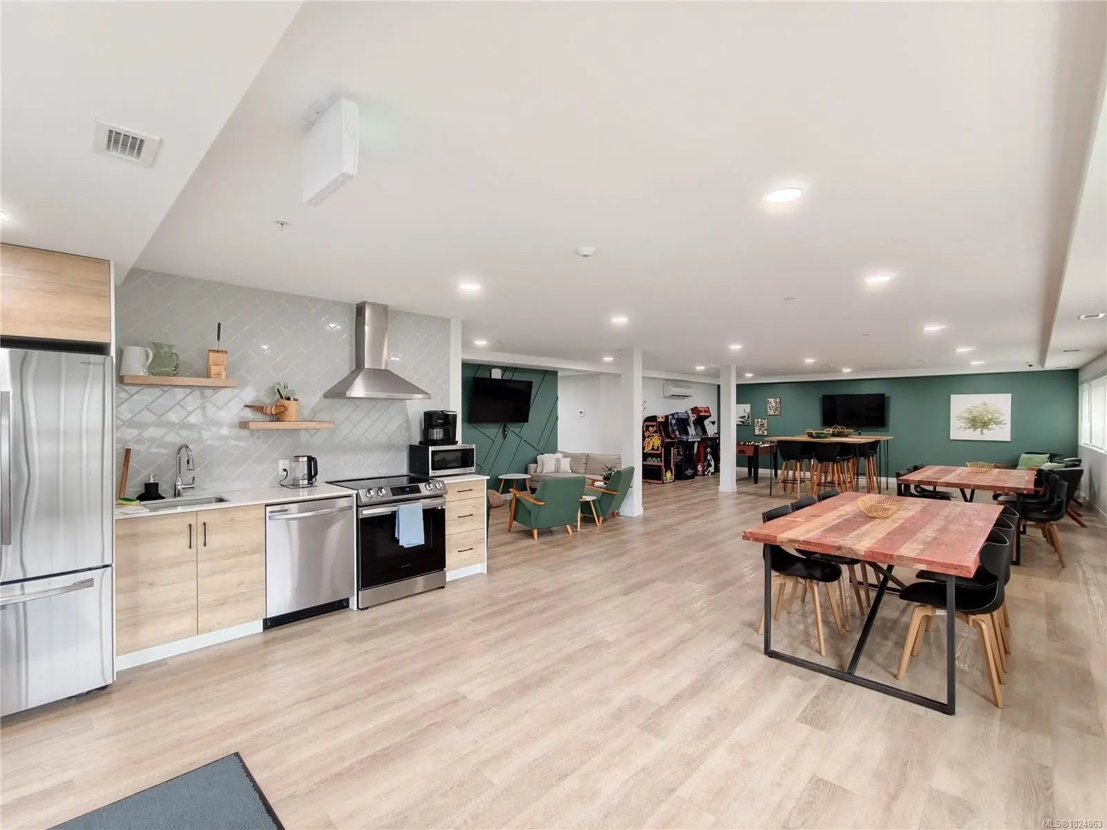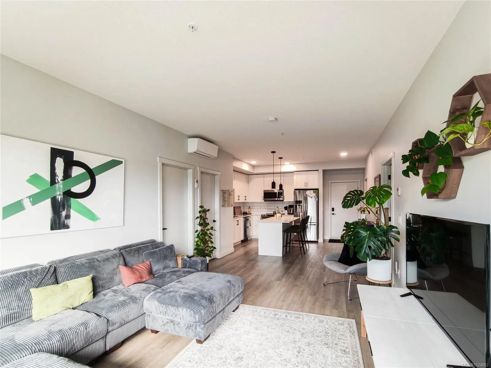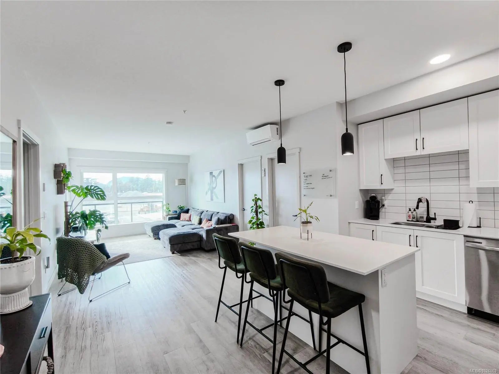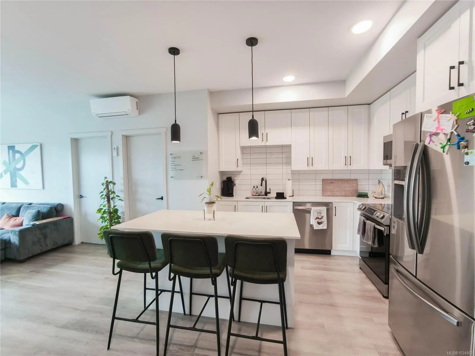 Beautiful CORNER residence with a huge wrap-around deck and TWO parking stalls, offering exceptional space, light, and flexibility. This bright 2-bed, 2-bath home features a sleek open-concept kitchen with large quartz countertops, soft-close cabinetry, stainless steel appliances, a heat pump, and an advanced flood-detection system. Enjoy beautiful views from the living area and balcony, perfect for relaxing or entertaining. Built to the province’s highest energy-efficiency standards, the building boasts LED lighting and triple-pane windows for year-round comfort. Two parking stalls add rare convenience for both homeowners and investors. Building amenities include a rooftop deck, fitness centre, dog run, community gardens, EV charging stations, resident lounge, bike storage, and more. Ideally located near shops, dining, and everyday essentials, this is modern condo living at its best.