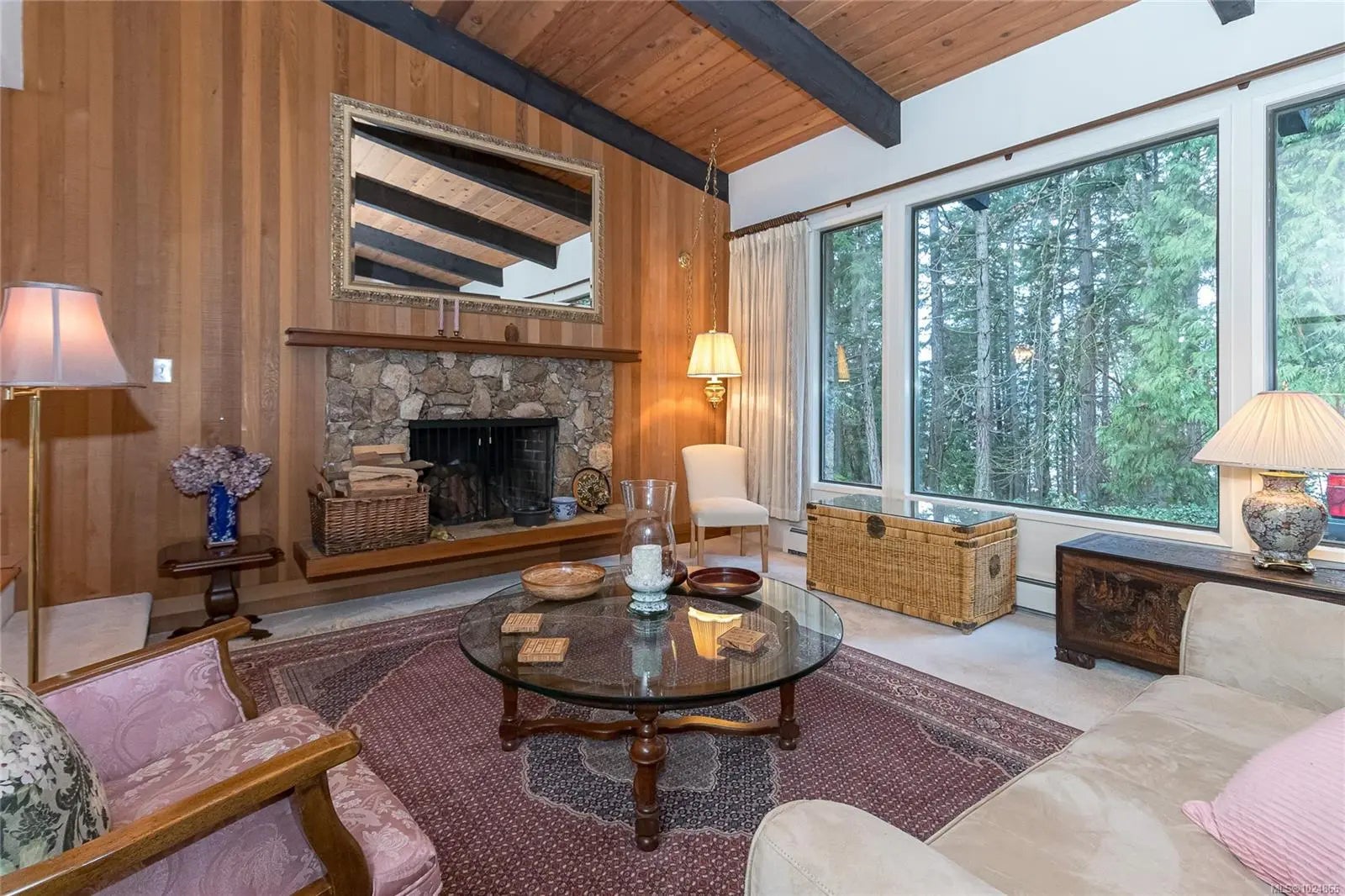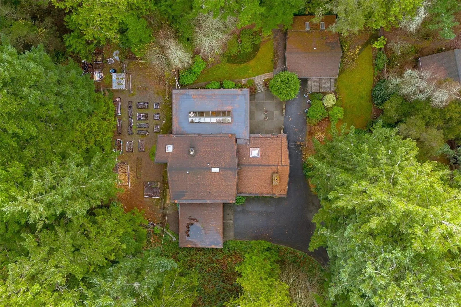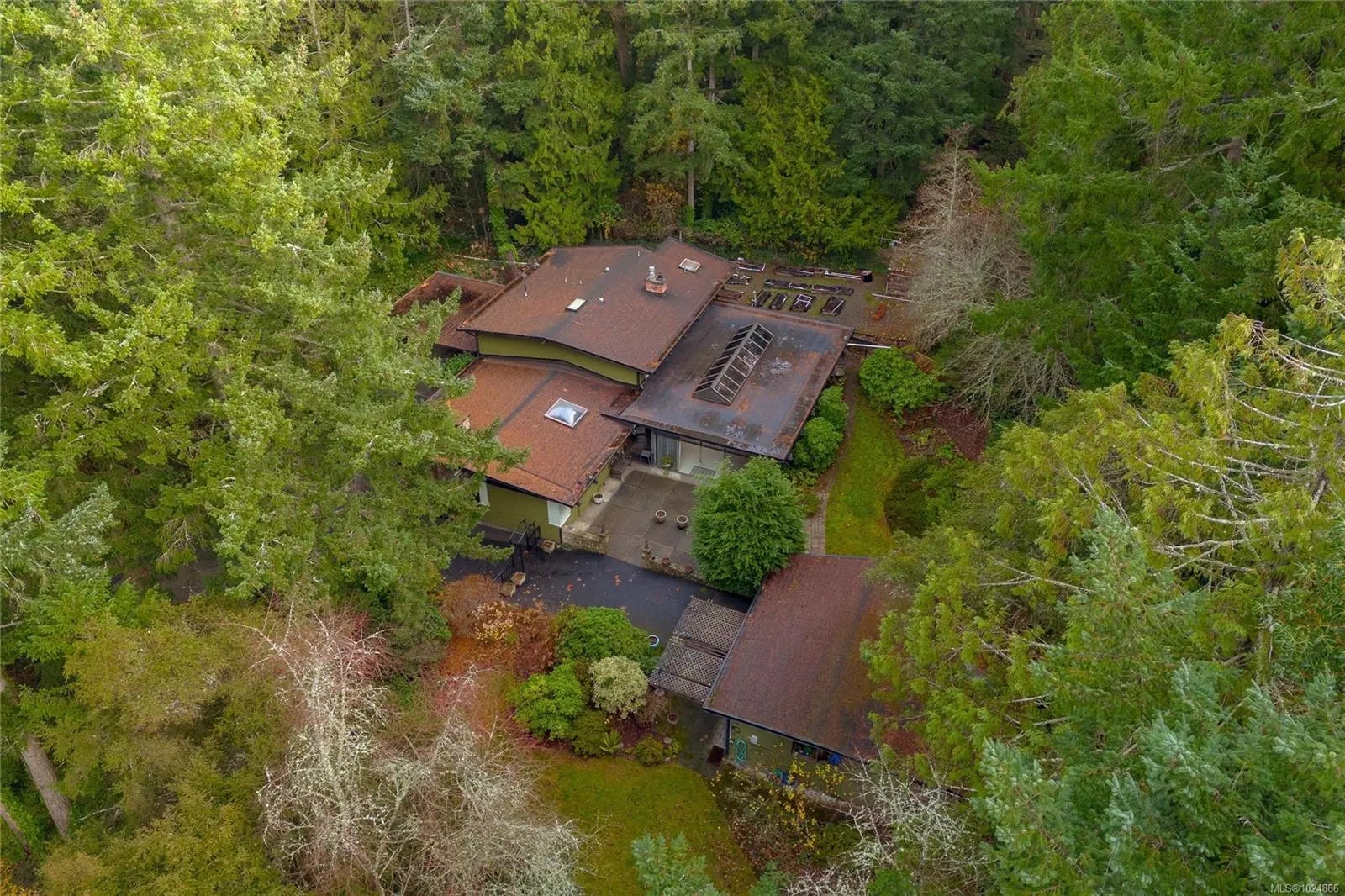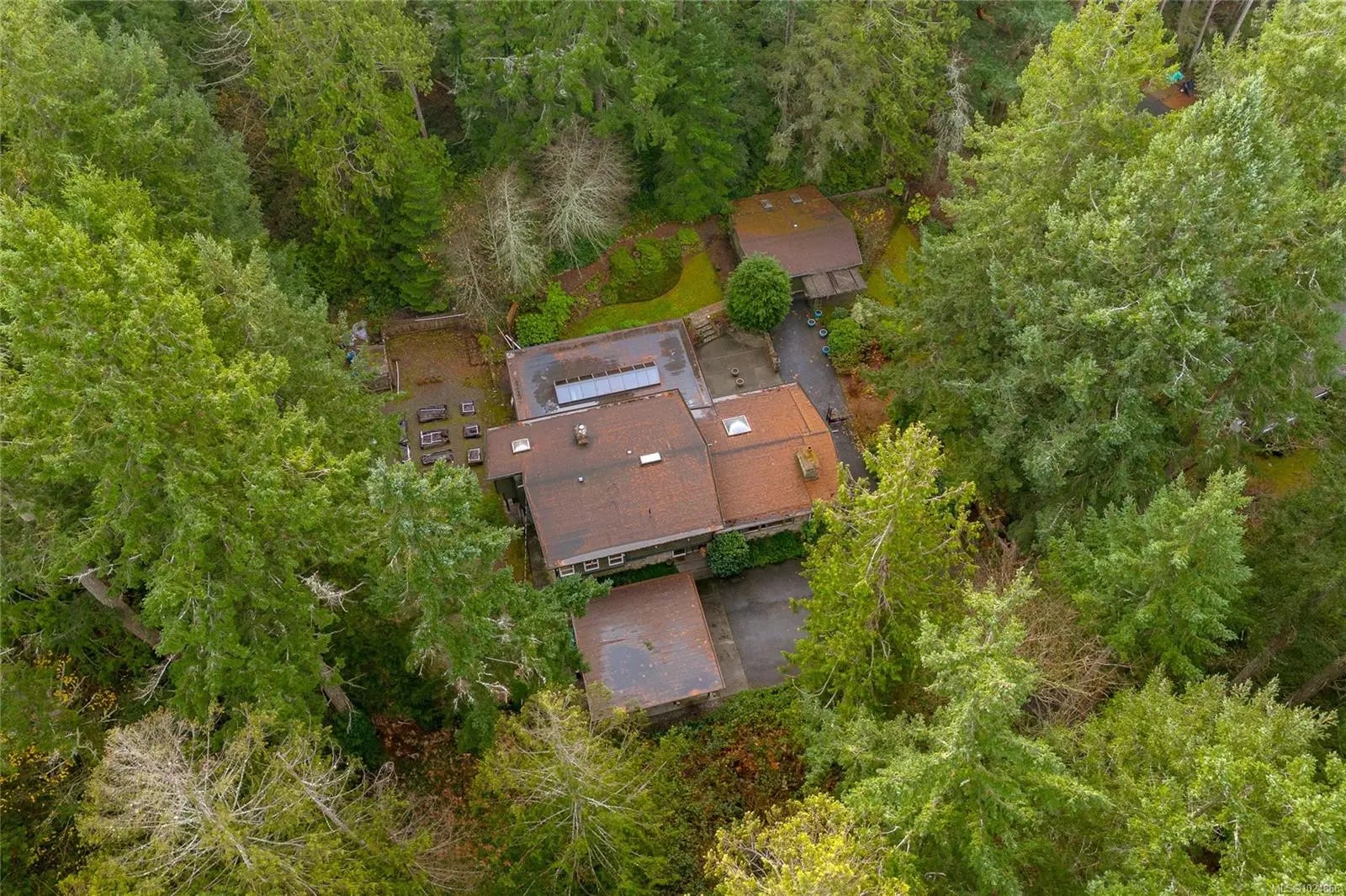 Nestled on a private 1 acre property with some waterviews, this spacious, Westcoast style , split-level home offers room for the whole family in a great neighborhood. The main level offers an office, formal living room with vaulted cedar ceilings and cozy wood-burning fireplace, a formal dining room with large windows, french door & wood floors, perfect for entertaining. The kitchen has an eating area that overlooks the sunken family room, complete with a cozy gas fireplace and wet bar, there is also the laundry & 2 piece bath. The added bonus is a 600 sq ft sunroom with an additional gas fireplace that offers many options, games room, media space, or home gym. The upper level offers 4 generous bedrooms, master with many wood accents, ensuite with a sunken jetted tub,shower & bidet. So much natural wood indoors that adds to the Westcoast design. Wonderful outdoor patio areas, . Also an added bonus of a separate 456 sq ft detached shop, a two-car carport, all surrounded by nature.