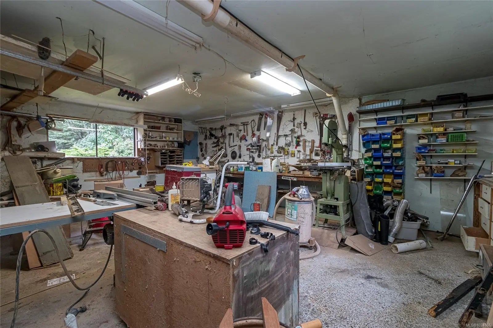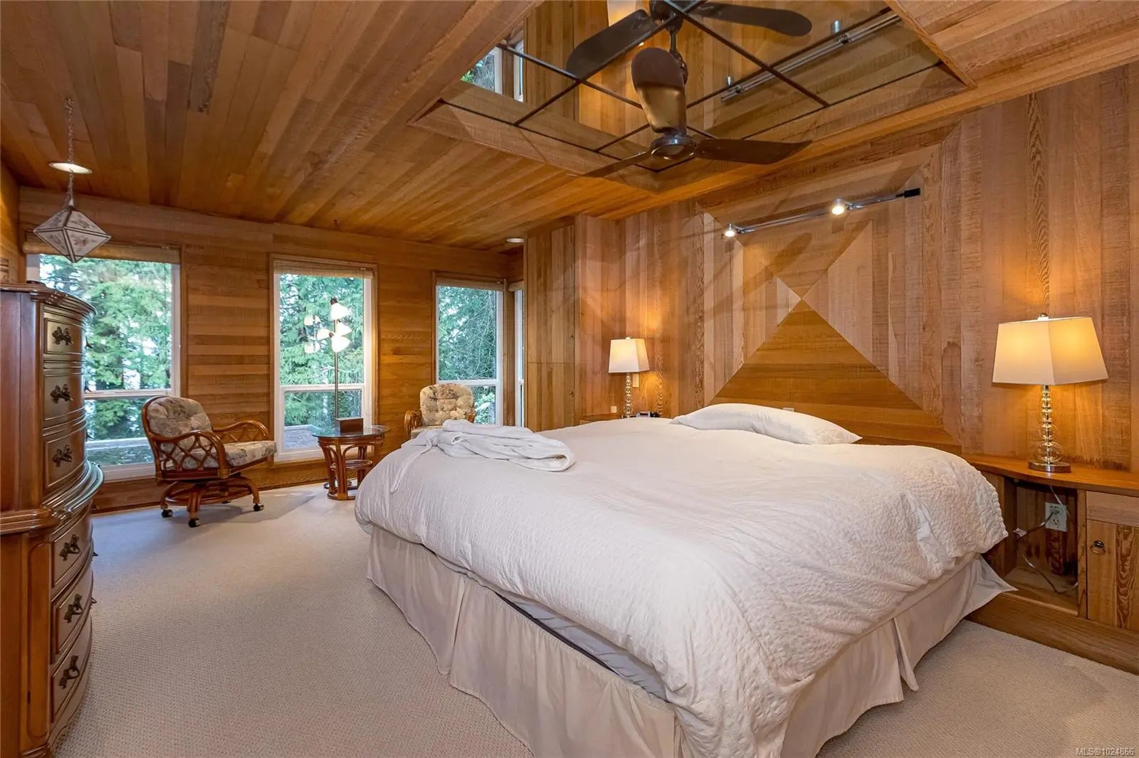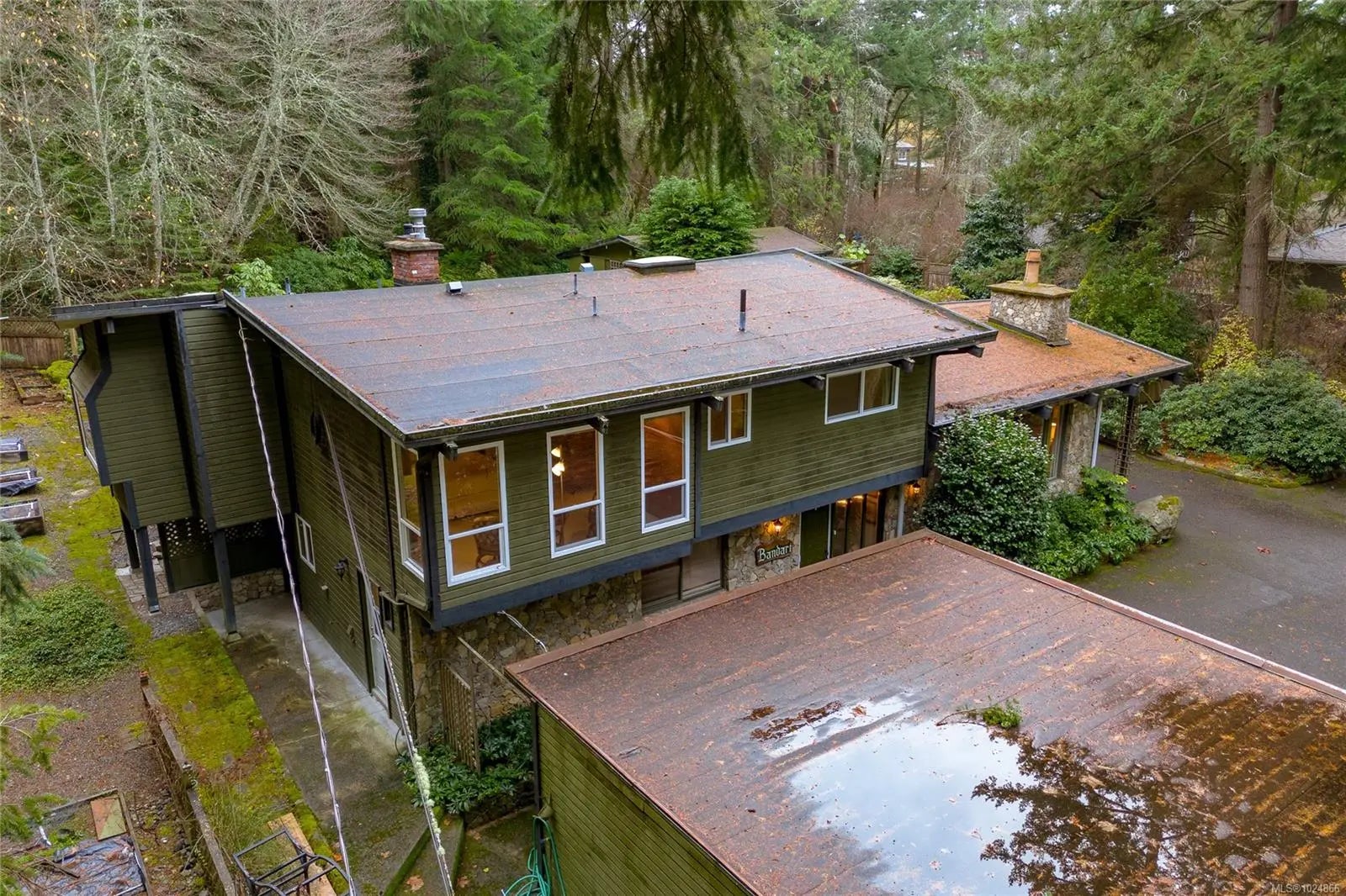 Nestled on a private 1 acre property with some waterviews, this spacious, Westcoast style , split-level home offers room for the whole family in a great neighborhood. The main level offers an office, formal living room with vaulted cedar ceilings and cozy wood-burning fireplace, a formal dining room with large windows, french door & wood floors, perfect for entertaining. The kitchen has an eating area that overlooks the sunken family room, complete with a cozy gas fireplace and wet bar, there is also the laundry & 2 piece bath. The added bonus is a 600 sq ft sunroom with an additional gas fireplace that offers many options, games room, media space, or home gym. The upper level offers 4 generous bedrooms, master with many wood accents, ensuite with a sunken jetted tub,shower & bidet. So much natural wood indoors that adds to the Westcoast design. Wonderful outdoor patio areas, . Also an added bonus of a separate 456 sq ft detached shop, a two-car carport, all surrounded by nature.