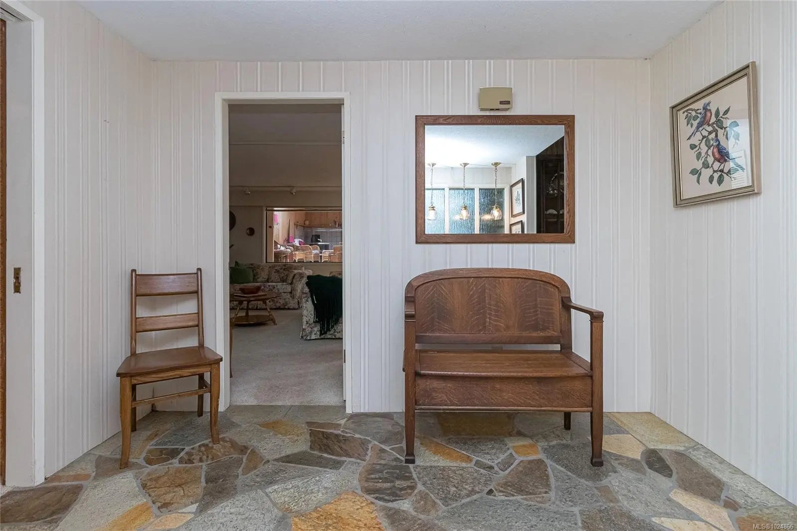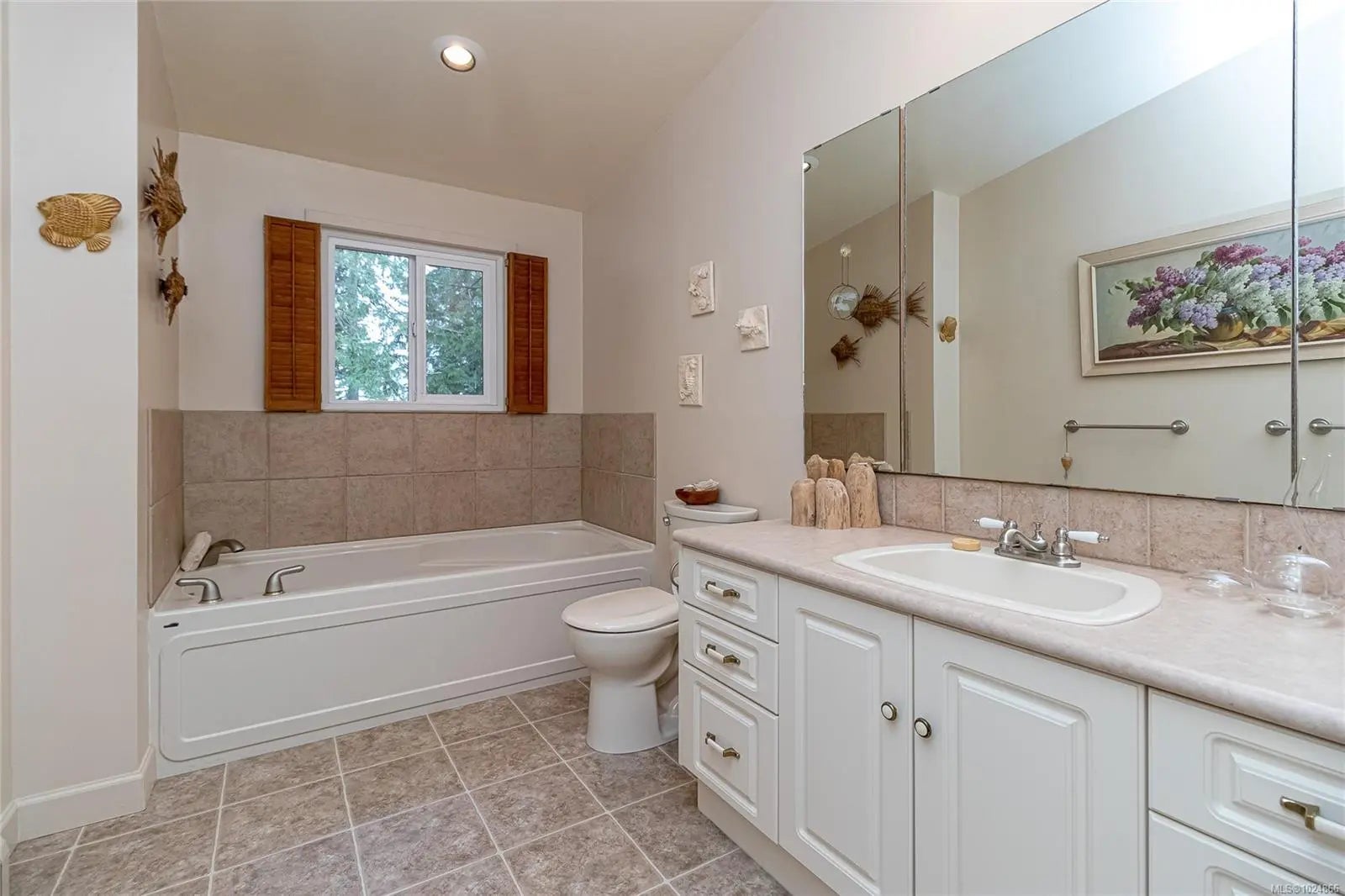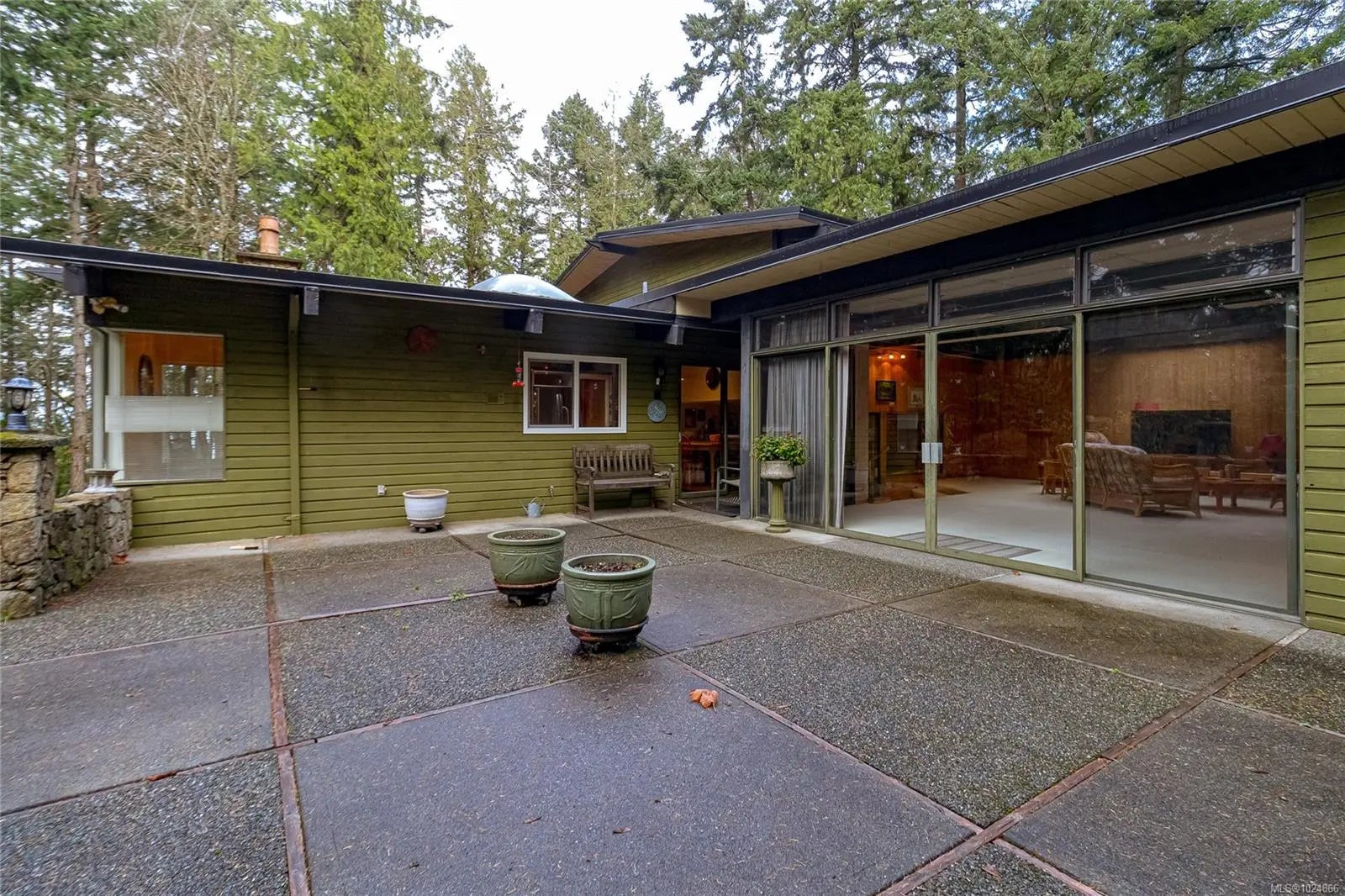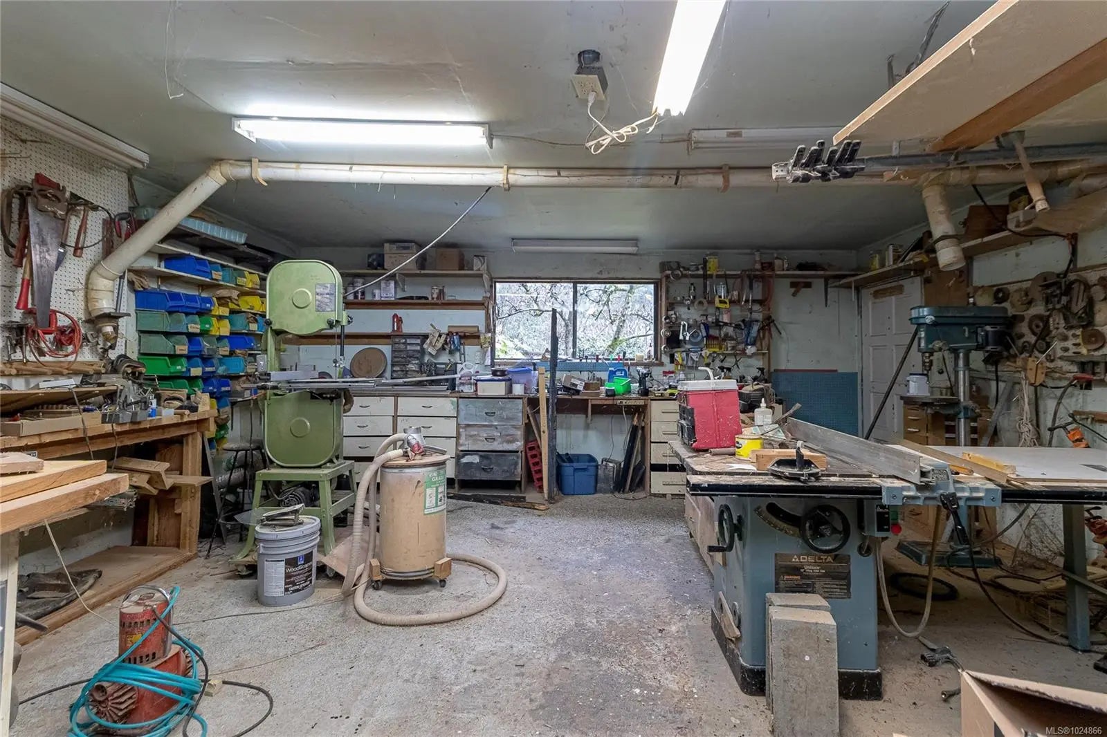 Nestled on a private 1 acre property with some waterviews, this spacious, Westcoast style , split-level home offers room for the whole family in a great neighborhood. The main level offers an office, formal living room with vaulted cedar ceilings and cozy wood-burning fireplace, a formal dining room with large windows, french door & wood floors, perfect for entertaining. The kitchen has an eating area that overlooks the sunken family room, complete with a cozy gas fireplace and wet bar, there is also the laundry & 2 piece bath. The added bonus is a 600 sq ft sunroom with an additional gas fireplace that offers many options, games room, media space, or home gym. The upper level offers 4 generous bedrooms, master with many wood accents, ensuite with a sunken jetted tub,shower & bidet. So much natural wood indoors that adds to the Westcoast design. Wonderful outdoor patio areas, . Also an added bonus of a separate 456 sq ft detached shop, a two-car carport, all surrounded by nature.