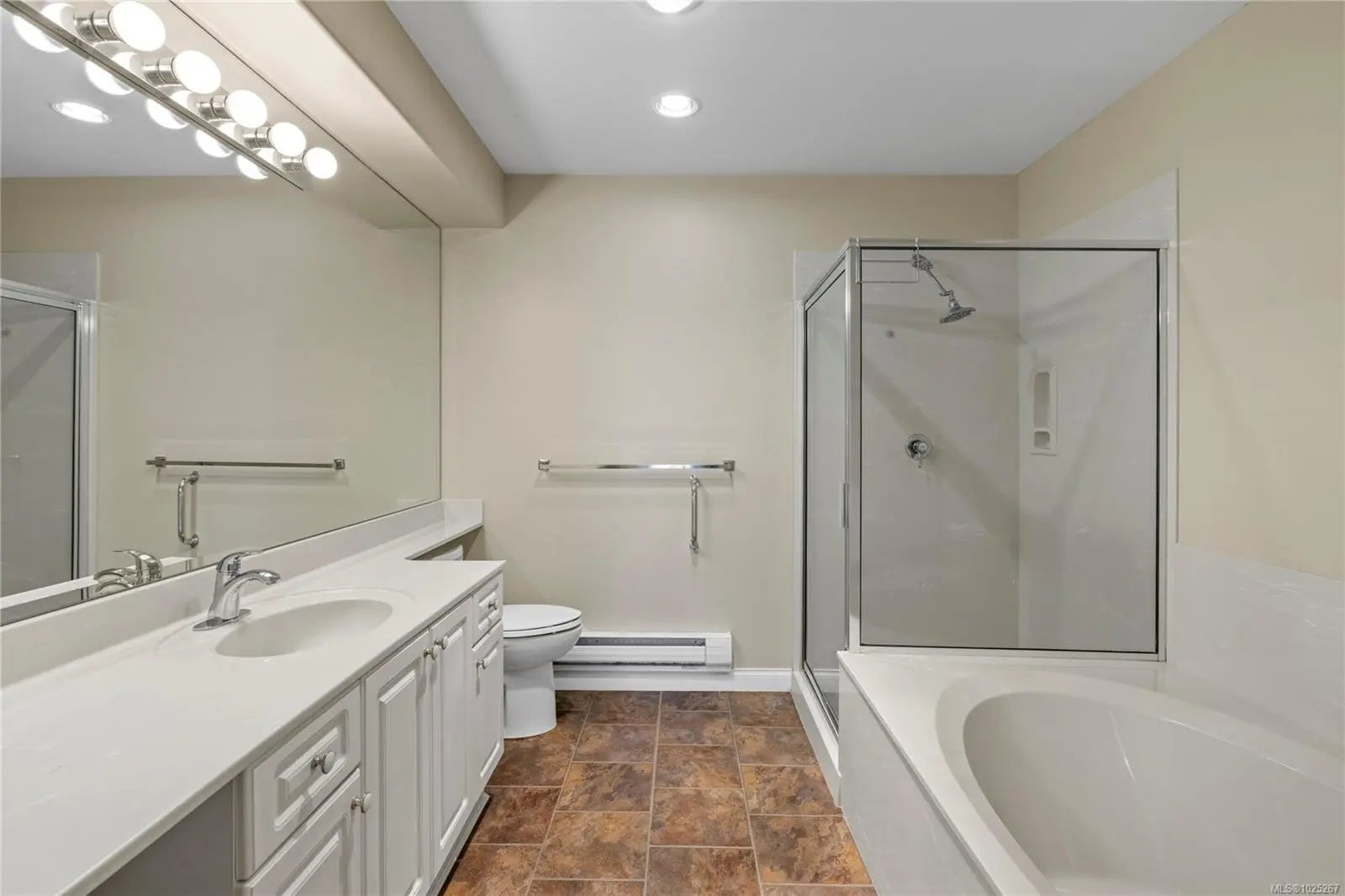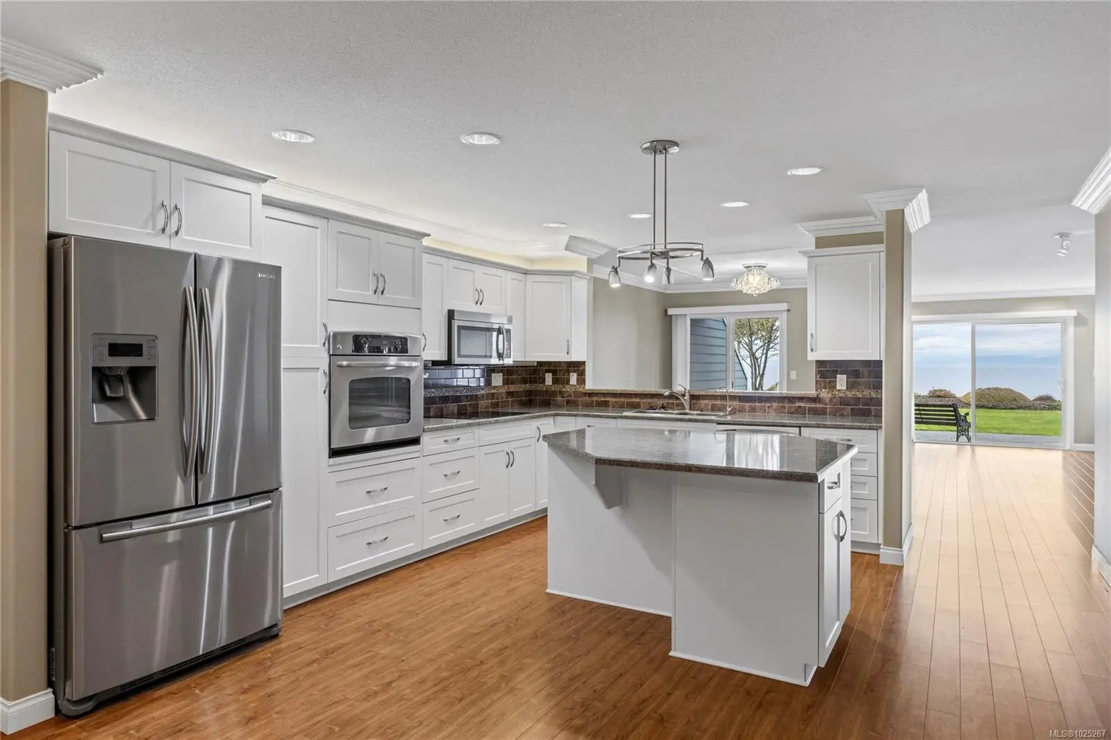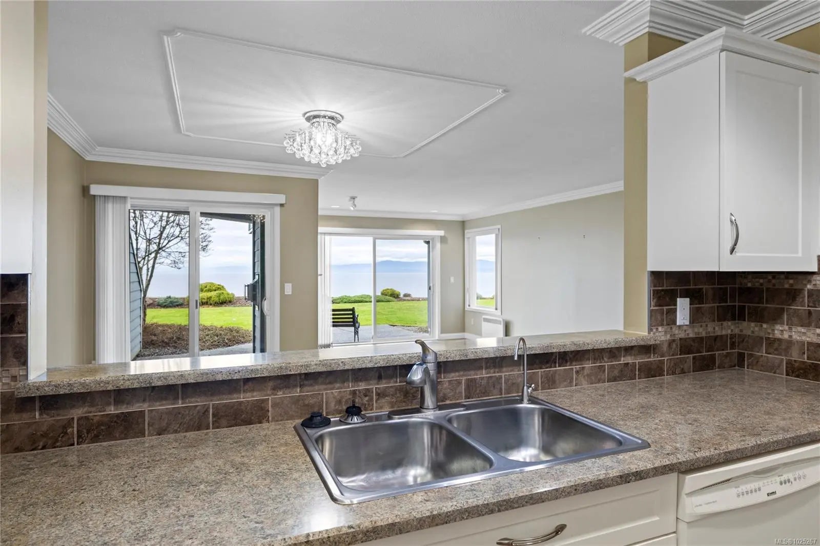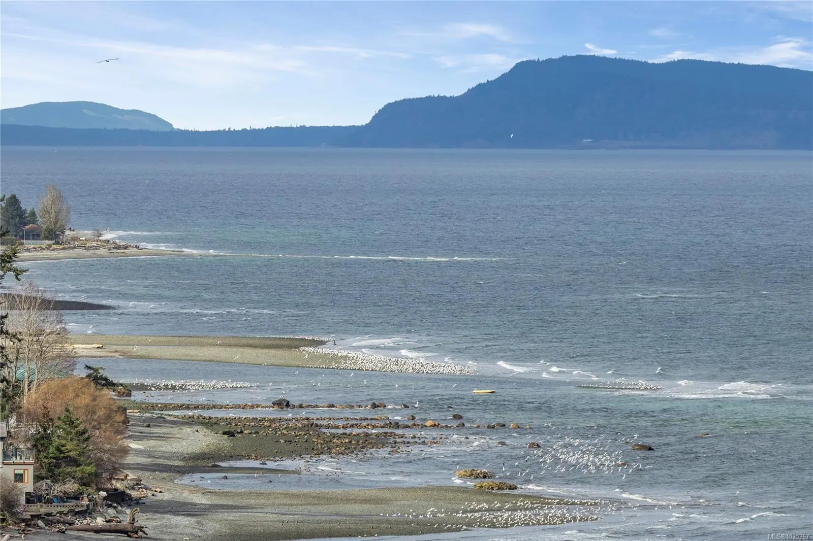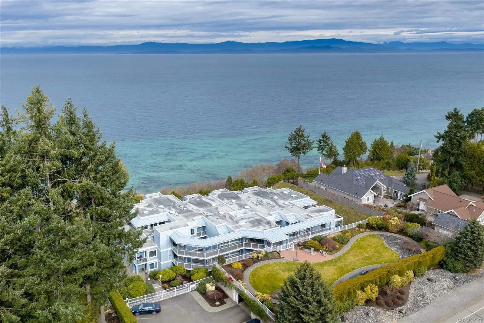 This beautiful 2-bedroom, 2-bathroom condo in The Crescent offers stunning panoramic views of the ocean and coastal mountains. Beautifully maintained, this home offers a spacious layout with lots of light and ocean views from the main living areas, patio, and primary bedroom. The generous kitchen features a large island and updated appliances, perfect for cooking and entertaining. The comfortable living room has a gas fireplace and large windows. The primary suite includes patio access, a walk-in closet, and a five-piece en-suite. Residents will enjoy one-level living within this gated 55+ community, which features a beautifully landscaped rooftop common garden area. Within walking distance to the beach, trails, golf, and shopping, this condo combines comfort, convenience, and breathtaking views in a prime Qualicum Beach location. Additional conveniences include a private storage area near the unit entrance and underground parking.
