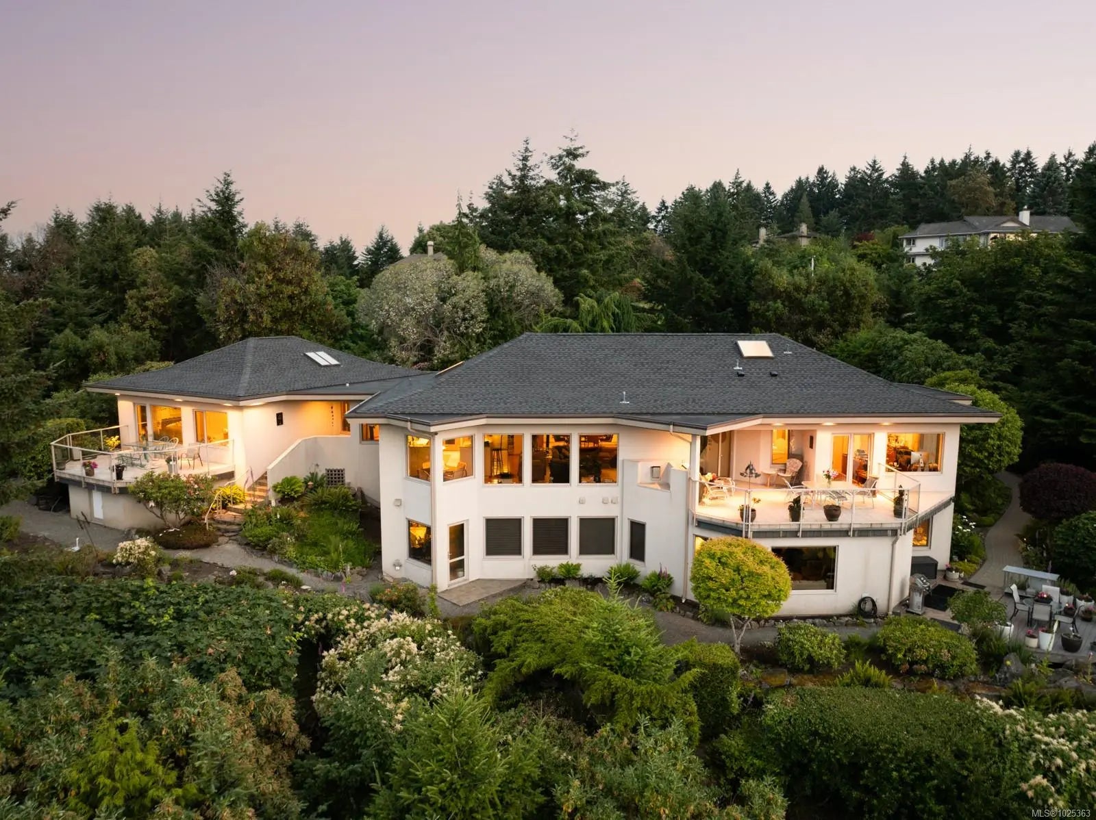 Set in the prestigious Lands End area, this 6,000 sq ft custom-built masterpiece offers 5 bedrooms, 5 bathrooms, and exceptional privacy and tranquility. Designed by Architectural Designer Klaus Hoffman, the home blends natural beauty with timeless design. Enjoy panoramic views of the ocean, valley & mountains from multiple patios that promote indoor/outdoor living. Bright & spacious, the interior features bamboo flooring, a custom kitchen, and a serene water pond. Mature gardens surround the home, including a fenced vegetable garden and sculpted rock feature beneath Arbutus, Pine, Cedar, Maple, and Eucalyptus trees. A separate 1-bedroom suite adds versatility. Nature lovers will appreciate the natural bird sanctuary and habitat where eagles, hawks, hummingbirds, finches, robins, deer, rabbits & squirrels are regular visitors. Just minutes to Sidney, restaurants, shopping, the airport, ferry terminal, parks, beaches, and trails—this unique home offers peaceful living in a rare setting.