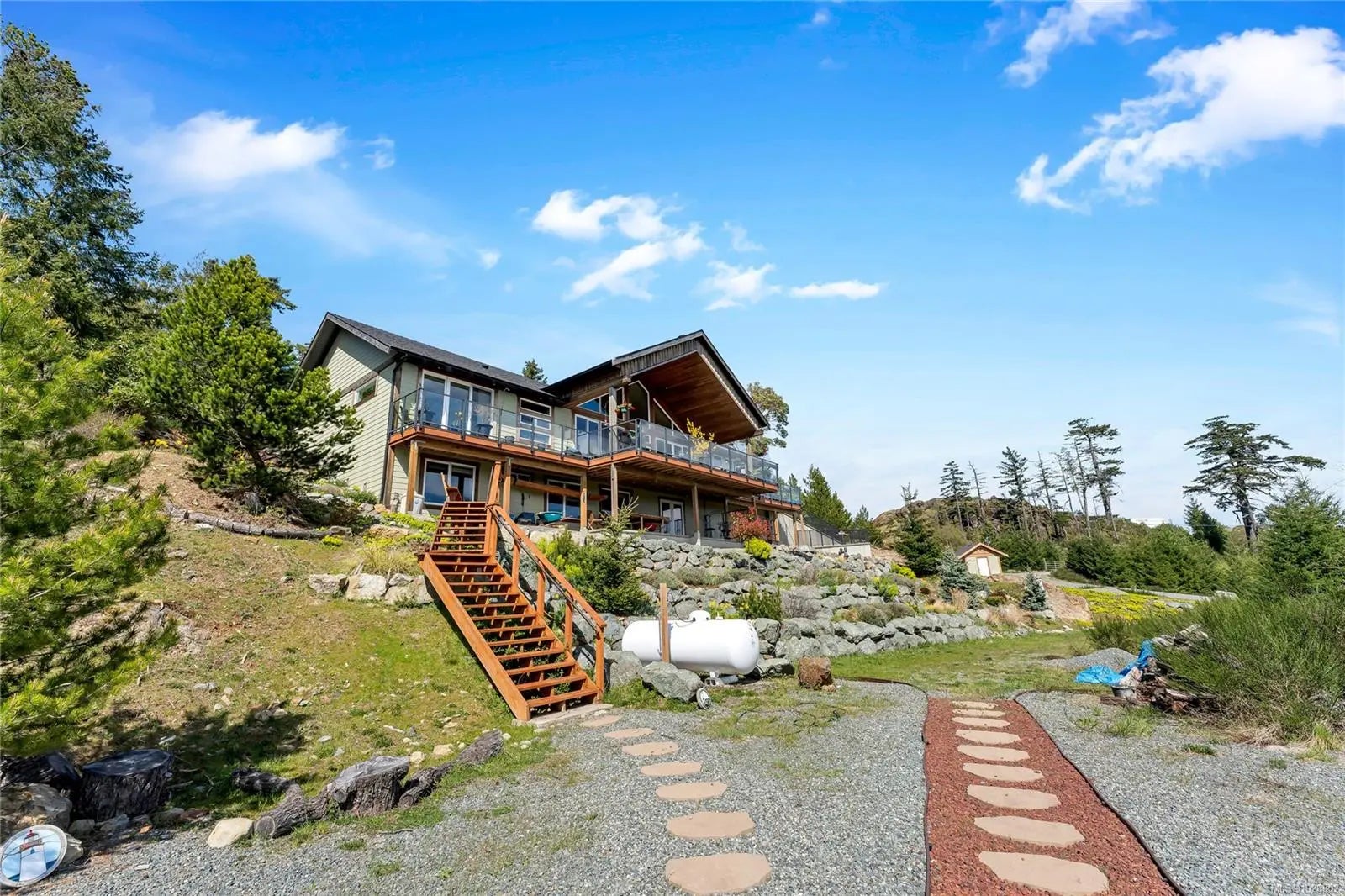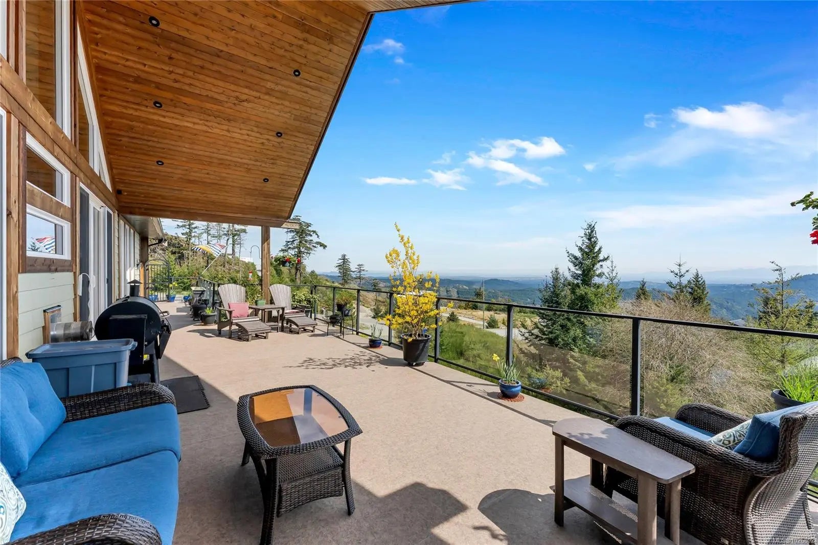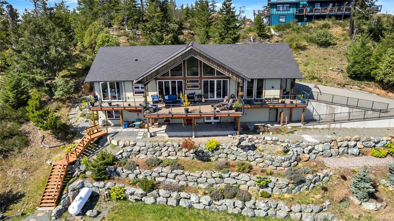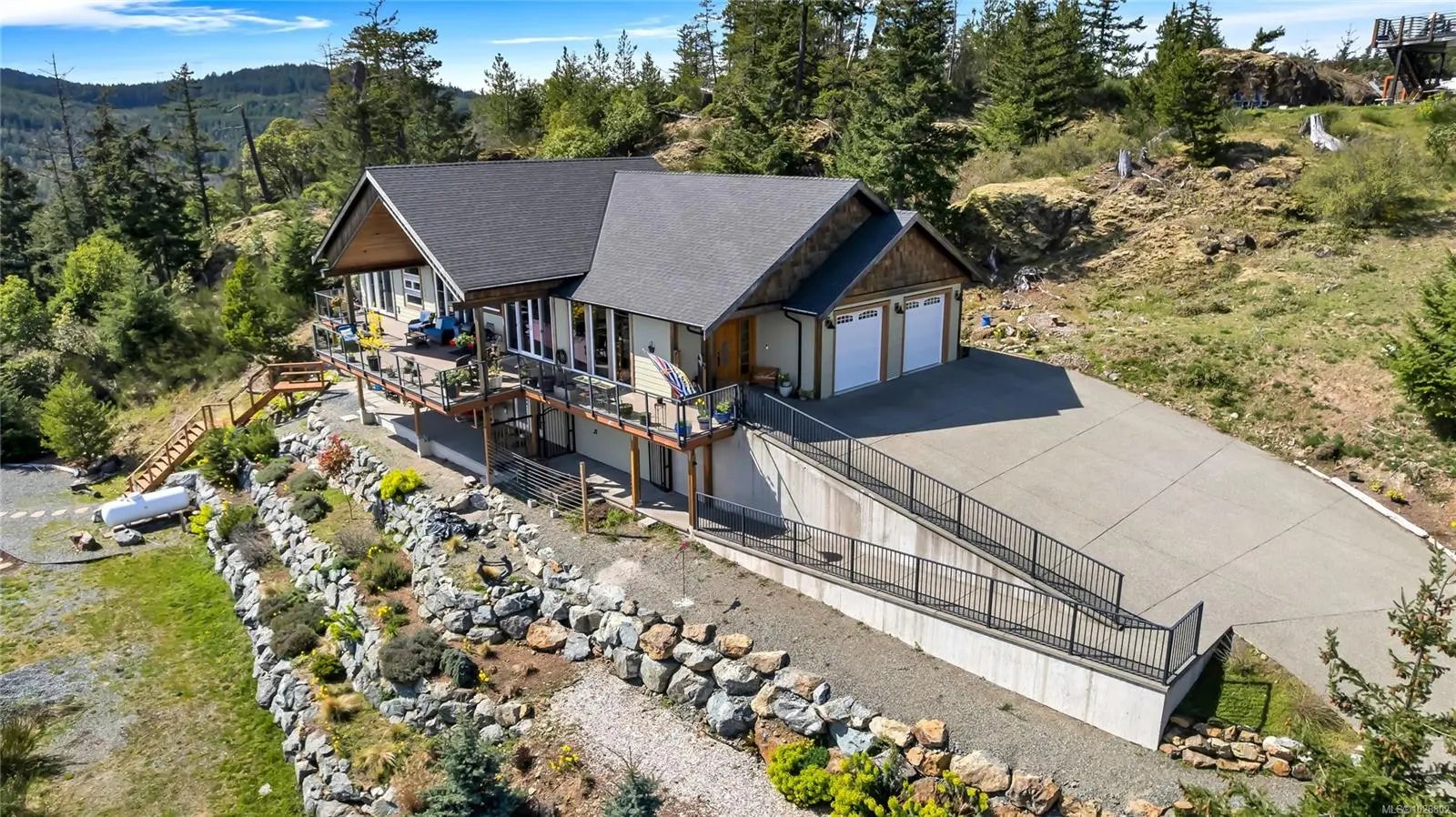 Like a rancher! A 5,000 sq ft custom home (3,000 Sq Ft finished) built by Bob Thomson perched high on top of the ridge. Breathtaking views. Natural light fills 2,000 sq ft of living space on the main - 1 level living - with a 500 sq ft deck is perfect for entertaining - or relaxing - against a backdrop of coastal mountain vistas. Inside, the great room boasts a soaring 17-ft vaulted ceiling, and the chef's-dream kitchen features solid wood cabinetry, high-end gas burners, separate butlers pantry & stainless steel appliances. The primary bedroom on the main floor has a huge walk-in closet & spa-like ensuite - ideal for the retired couple who wants privacy with lots of room for family to stay and visit. The double garage with EV charger offers ample room for 2 cars with more room on the oversized driveway. Separate RV parking. Hidden hot tub. Massive workshop. Concern about the drive to town? Don't worry - you have a wine cellar! A must-see view that will leave you in awe. Move in now!