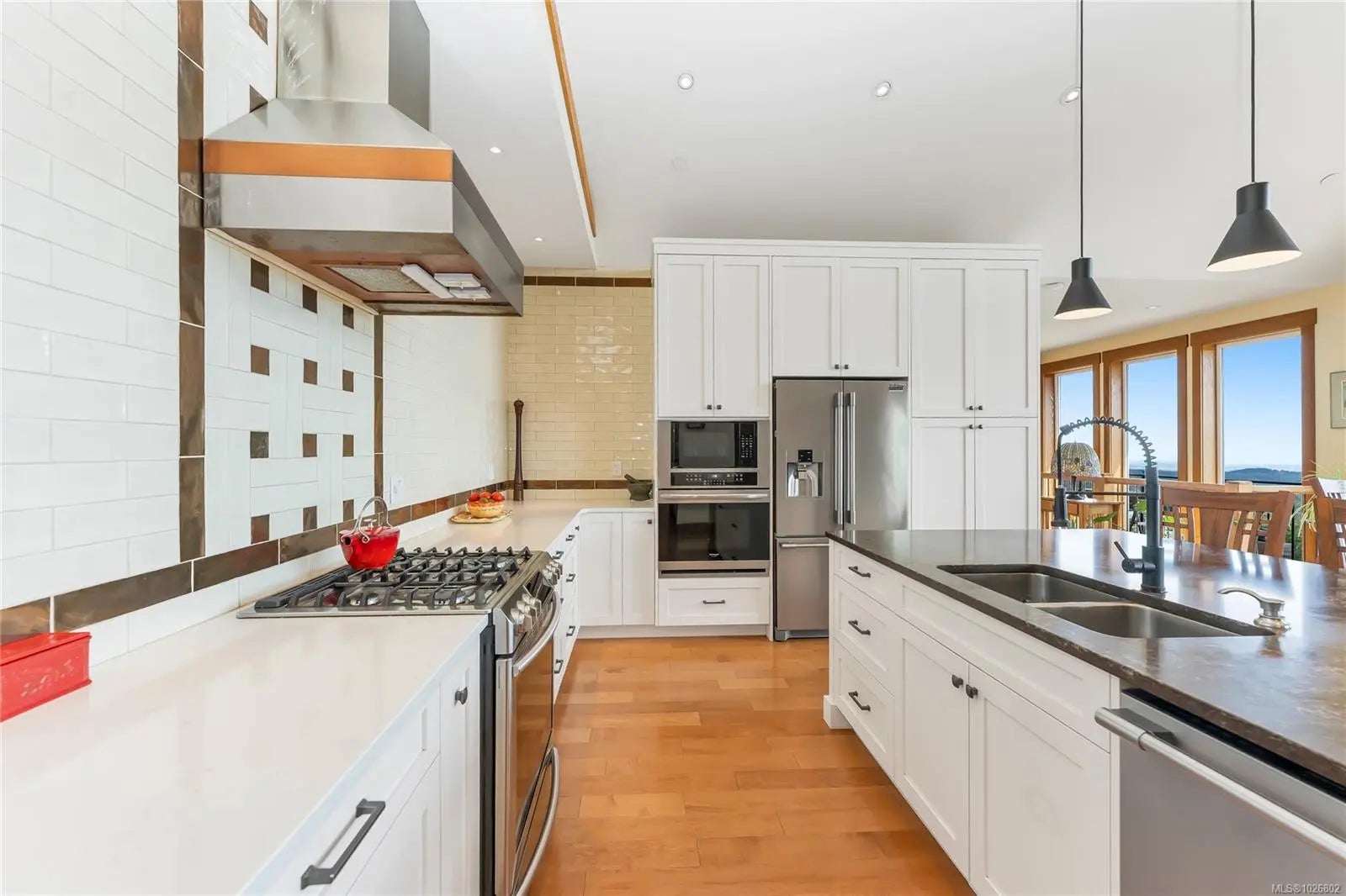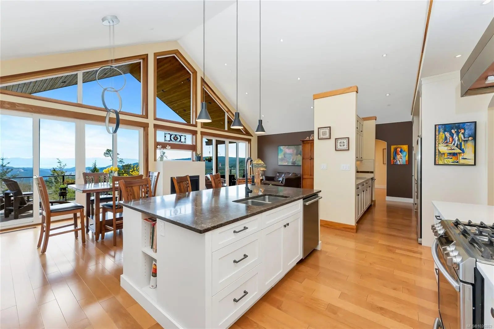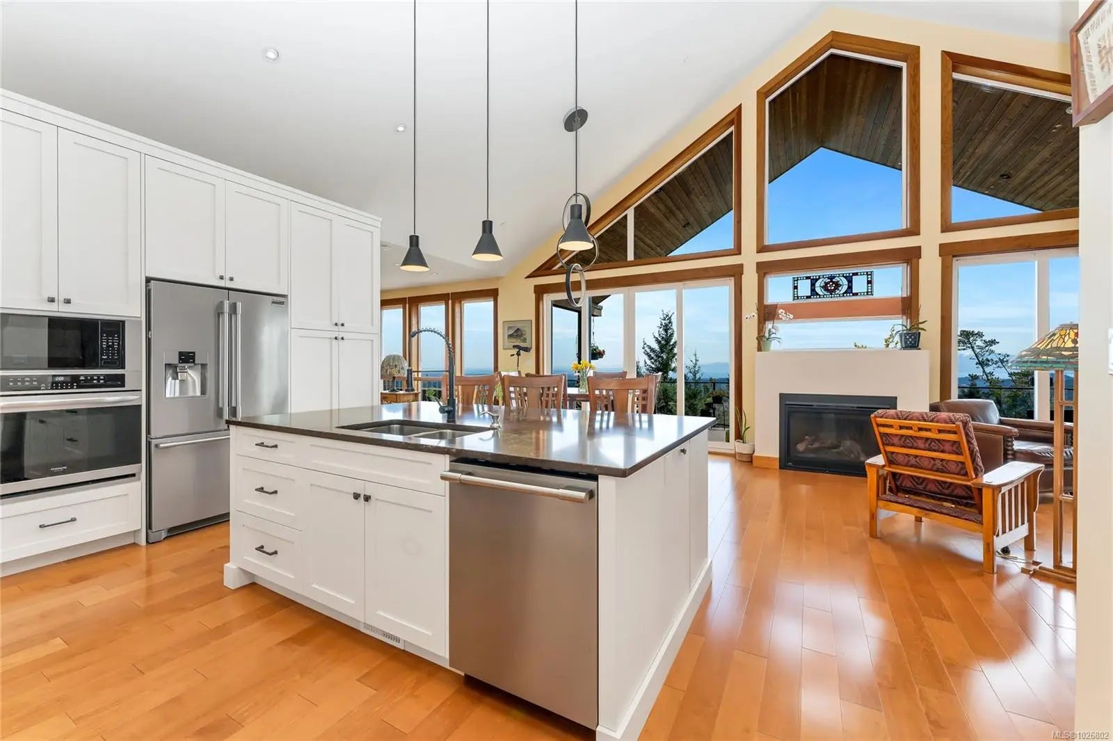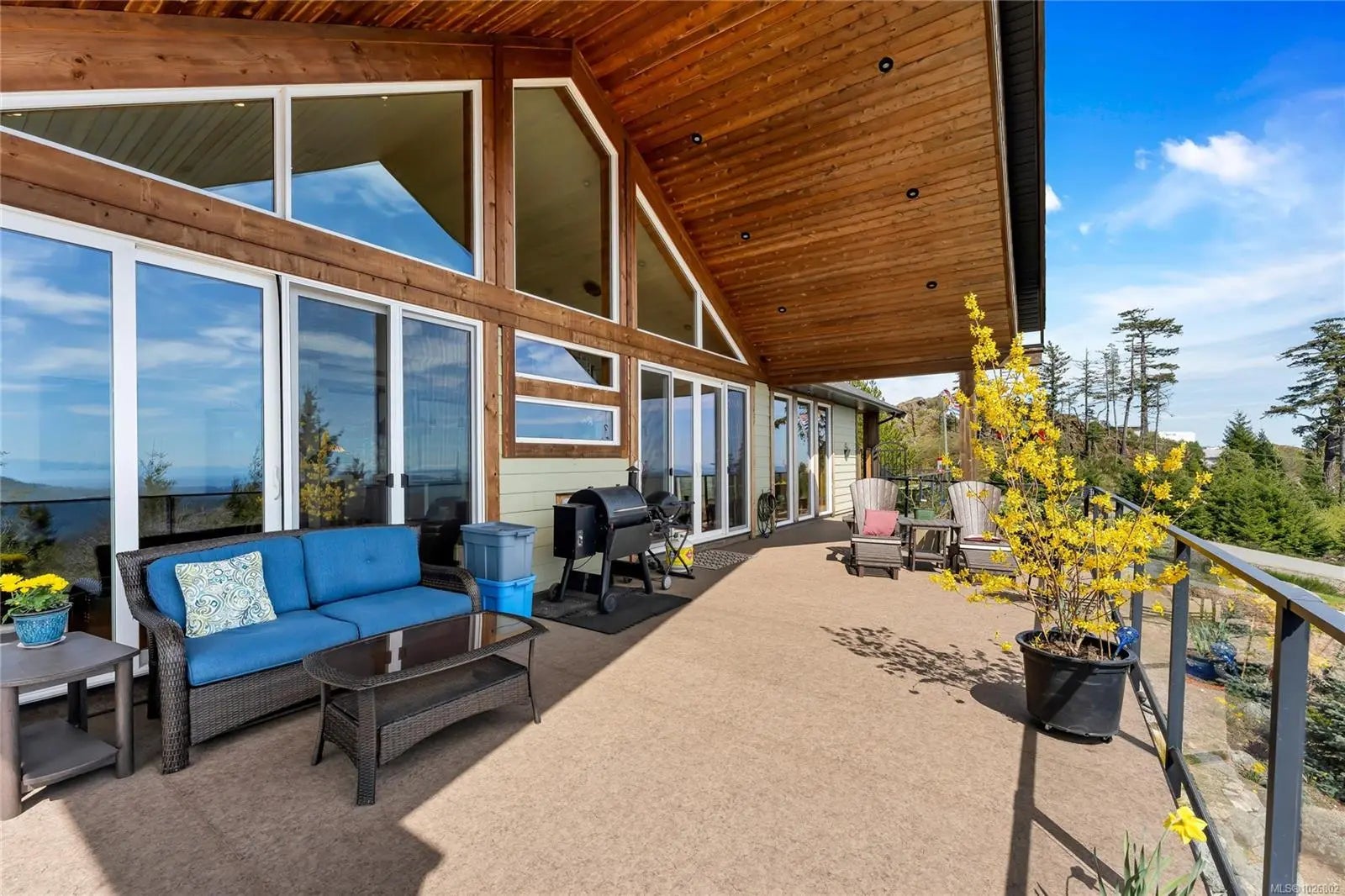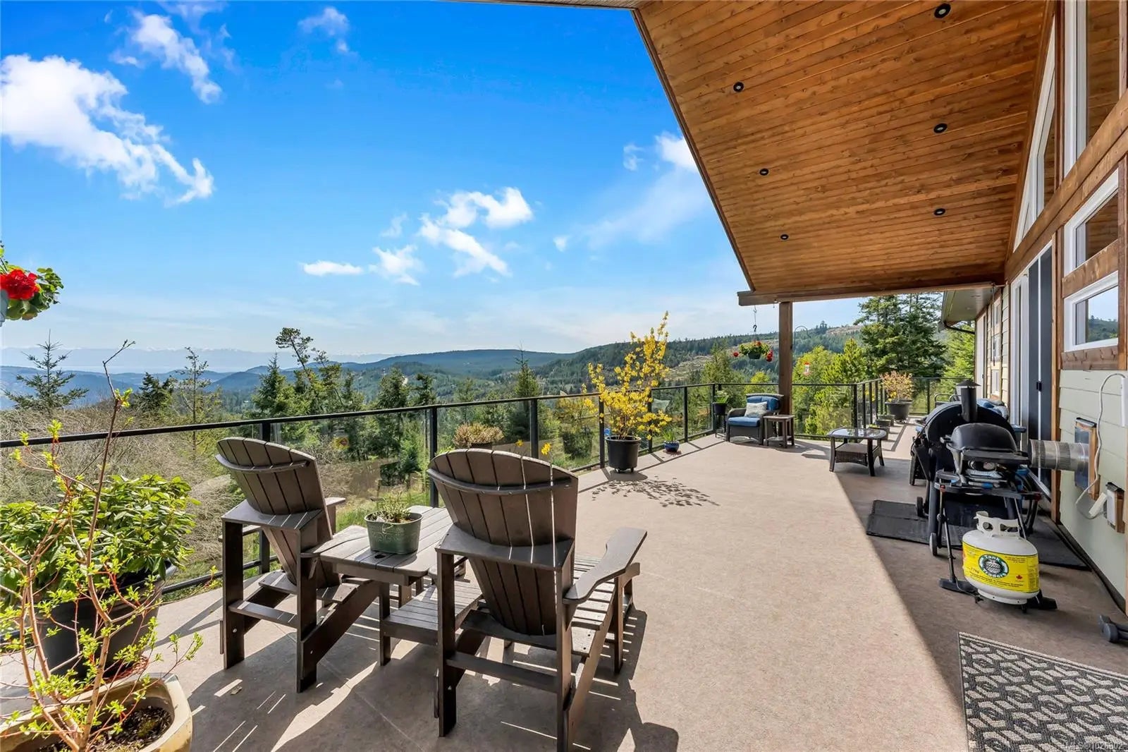 Like a rancher! A 5,000 sq ft custom home (3,000 Sq Ft finished) built by Bob Thomson perched high on top of the ridge. Breathtaking views. Natural light fills 2,000 sq ft of living space on the main - 1 level living - with a 500 sq ft deck is perfect for entertaining - or relaxing - against a backdrop of coastal mountain vistas. Inside, the great room boasts a soaring 17-ft vaulted ceiling, and the chef's-dream kitchen features solid wood cabinetry, high-end gas burners, separate butlers pantry & stainless steel appliances. The primary bedroom on the main floor has a huge walk-in closet & spa-like ensuite - ideal for the retired couple who wants privacy with lots of room for family to stay and visit. The double garage with EV charger offers ample room for 2 cars with more room on the oversized driveway. Separate RV parking. Hidden hot tub. Massive workshop. Concern about the drive to town? Don't worry - you have a wine cellar! A must-see view that will leave you in awe. Move in now!
