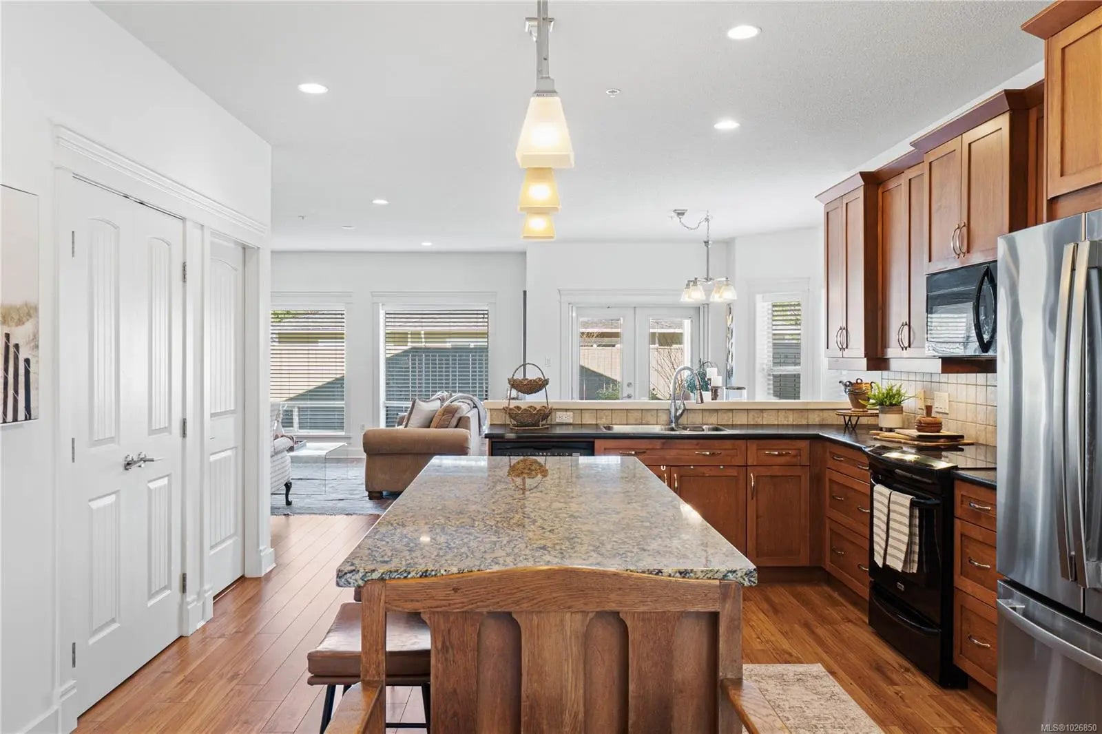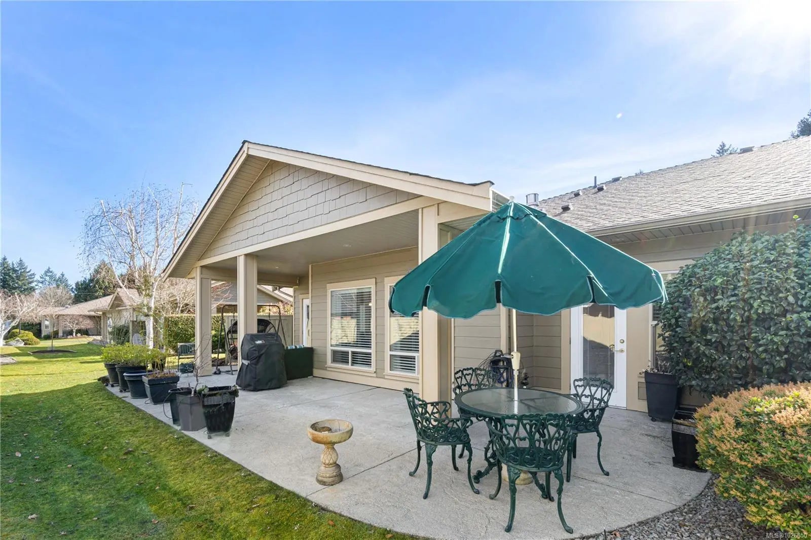 STYLISH PATIO LIVING IN AN UNBEATABLE LOCATION. This beautifully maintained home in sought-after Estuary Place offers effortless living just steps to the Englishman River Estuary, parks, transit, shopping & the beach. Enjoy a sunny front yard south-facing covered patio and a private extended outdoor backyard retreat with gas BBQ hookup, perfect for relaxing or entertaining. Inside, 9’ ceilings and oversized windows fill the open kitchen, living & dining space with light. The upgraded kitchen features rich wood cabinetry, granite counters & a generous island. The spacious primary suite opens to the patio and includes a walk-in closet & 4pc ensuite. A second bedroom, full bath, laundry room & extended garage with storage complete the layout. Energy-efficient, clubhouse access, ample parking, no age limits, 1 pet allowed, an exceptional lifestyle opportunity.