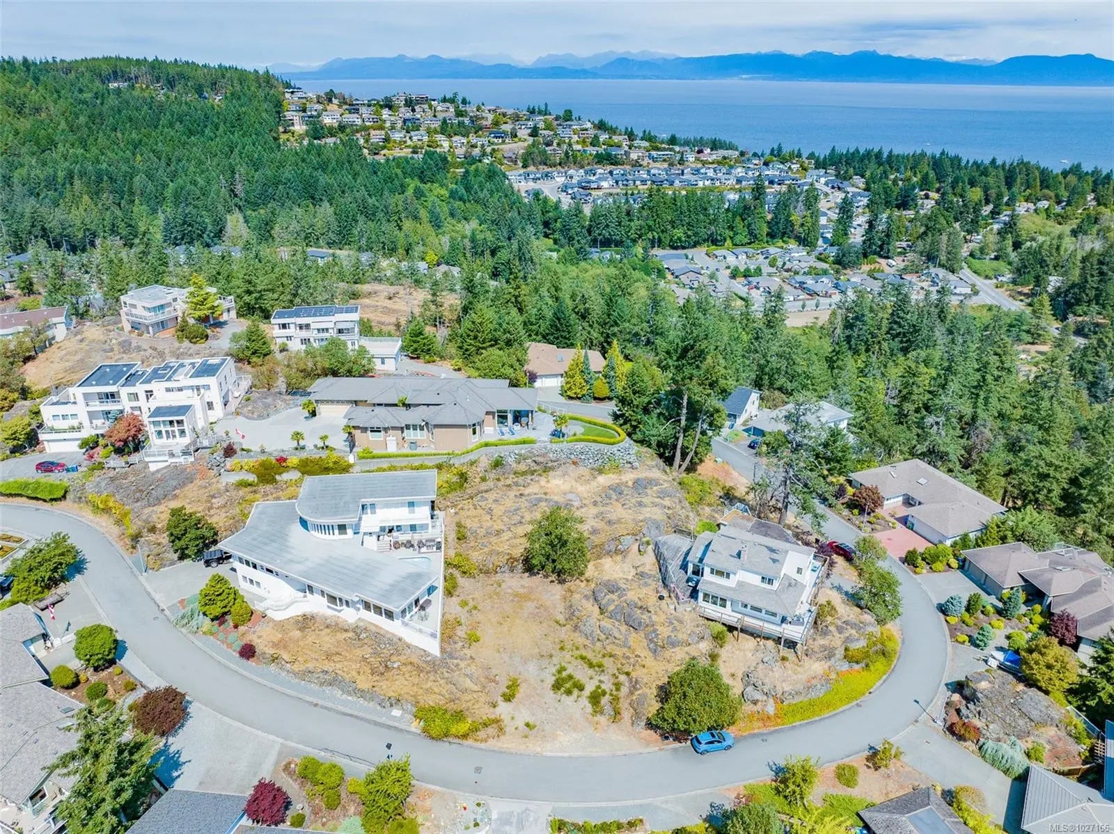 Spectacular views abound from this magnificent setting atop Canterbury Crescent, one of Nanaimo's signature neighbourhoods. Panoramic ocean, city and mountain views unfold from this rare south-facing property overlooking Departure Bay and its surrounding area, with vistas to Newcastle Island and downtown Nanaimo. Mt Benson will be framed like a postcard from every window as part of the future design for your new, custom built home. With 11528sf of property size to create your perfect residence, your creativity will soar. The lot is gently sloped to a large bench within the lot. Drive through on the circular, one way road and note the calibre of homes. The location is proximate to parks, beaches and beach-side cafes (The Drip) and food trucks, ferries, shopping, and schools. The zoning is R5 which under new guidelines permits up to 4 dwellings. Water, sewer, and storm run to the property edge. All measurements are approximate and need to be verified if important.