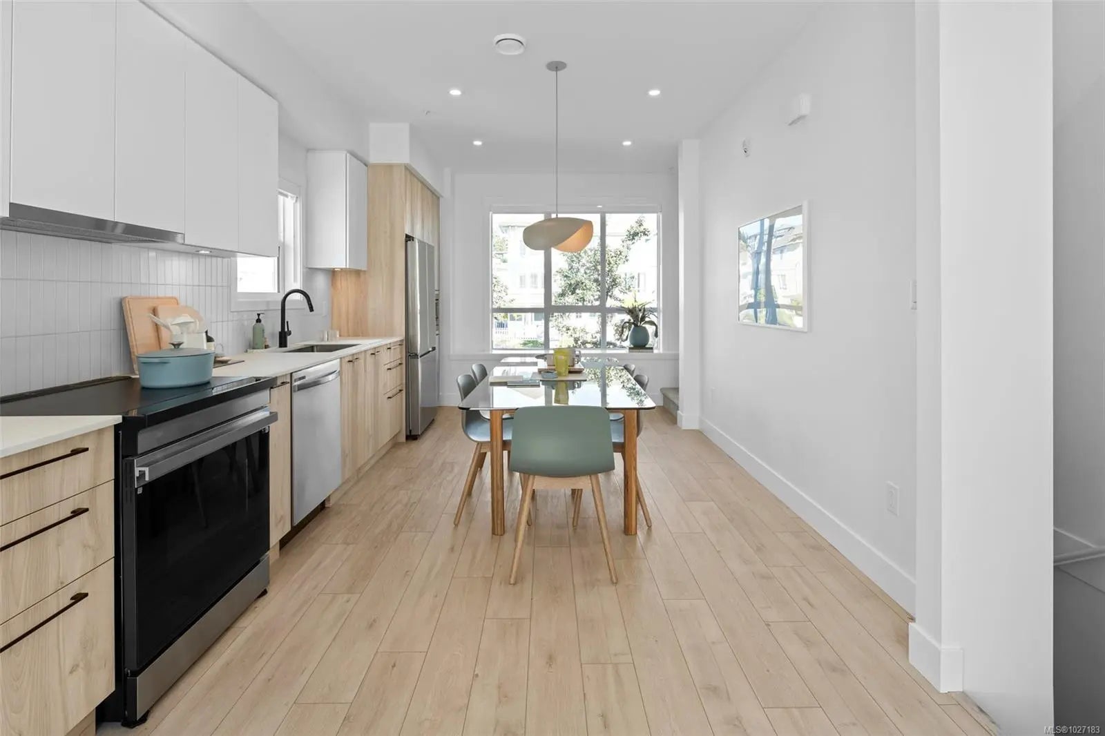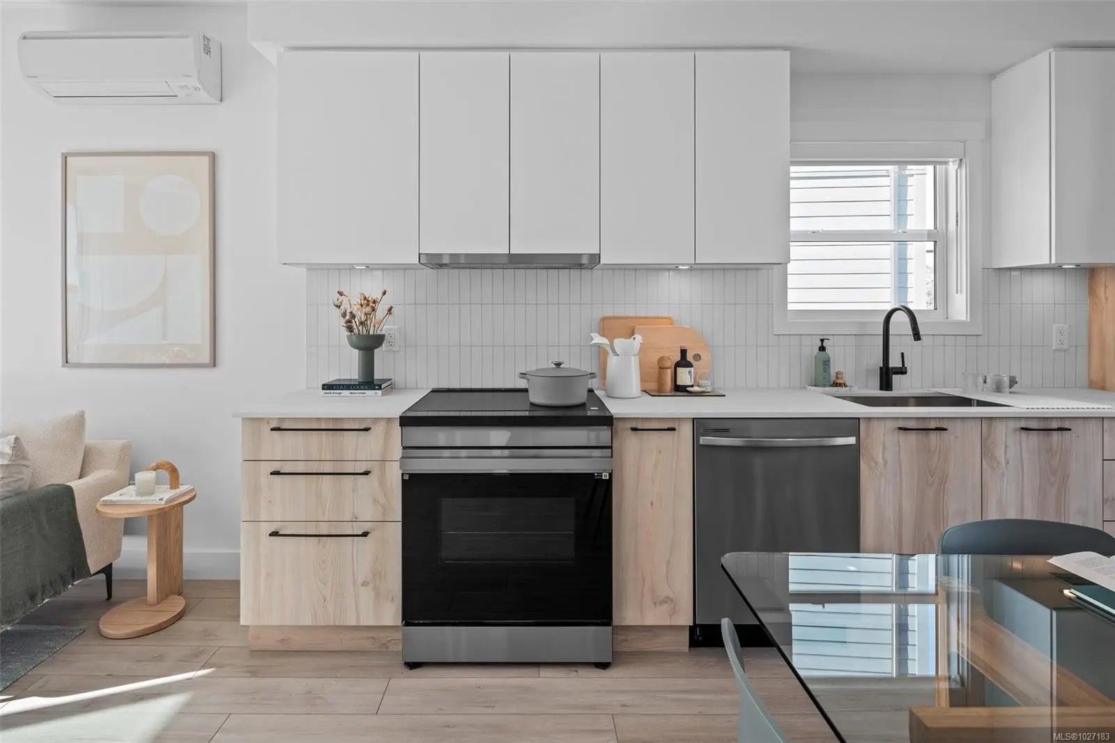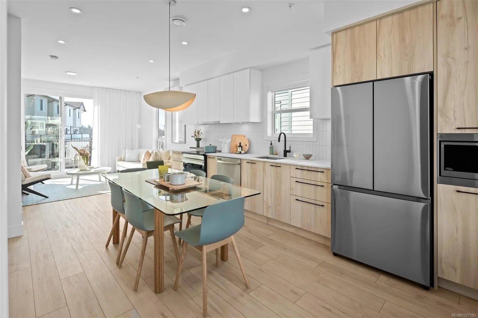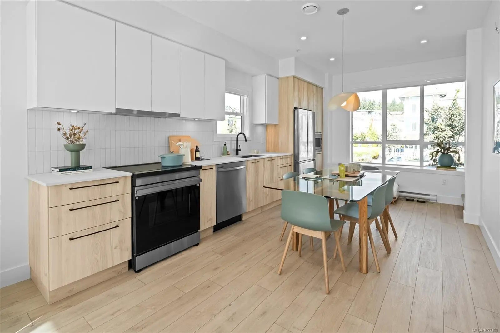 Discover unrivalled West Coast living within this sophisticated 2-bed, 2.5-bath townhome, where 1,121 sqft of designer interiors speak to refined comfort. Curated appointments include engineered stone countertops, elegant two-tone millwork, and a chef's kitchen crowned with modern stainless-steel appliances & energy-conscious induction cooking. Primary ensuite is a private sanctuary, with frameless glass shower & floating vanity, soaring 9' ceilings & expansive balcony afford lots of natural light. Residents enjoy effortless access to immaculate beaches, scenic walking trails, and a wealth of neighbourhood conveniences—an exquisite marriage of tranquil seaside living and sophisticated urban ease, embodied in this highly sought-after West Coast Contemporary retreat. Visit the Presentation Centre at 394 Tradewinds Ave, open Sat–Thurs, 12–4 pm. All measurements are approximate. Price does not include GST. Photos shown are of the exact unit.