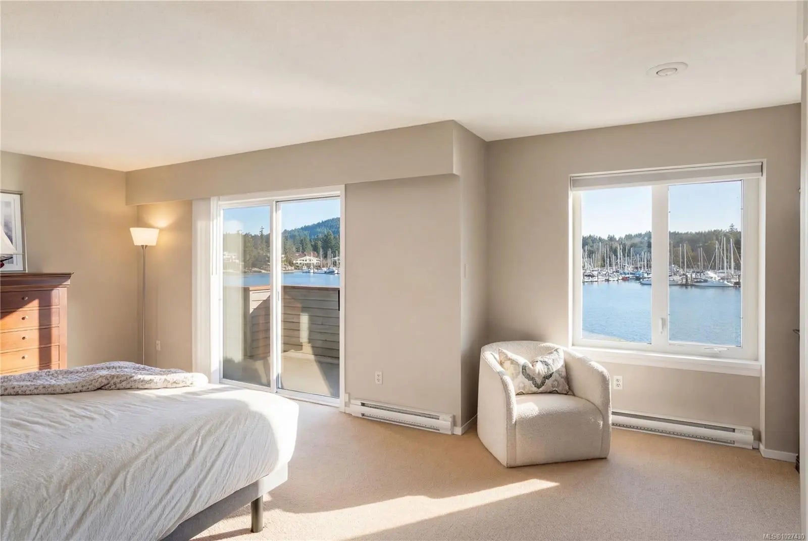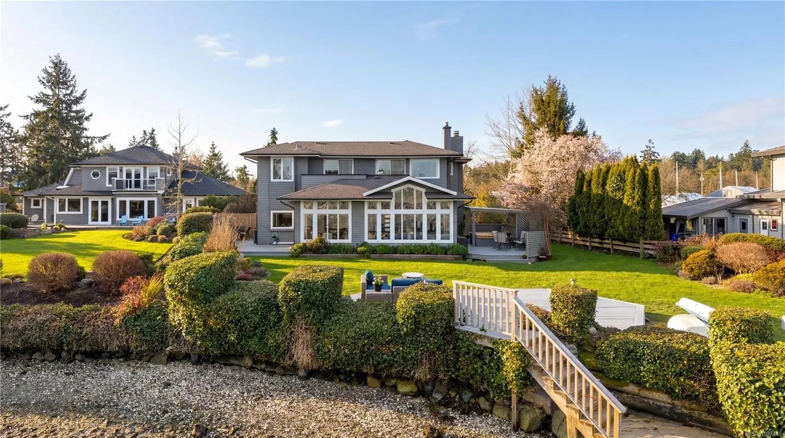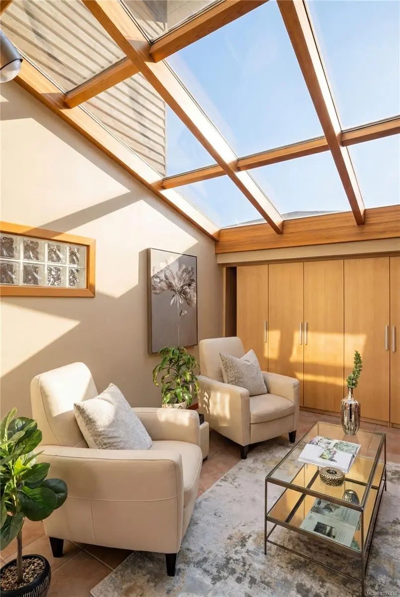 Open House Sun 2-4pm - Exceptional West Coast waterfront on sought-after Blue Heron Road with direct beach access and panoramic marina and ocean views. This 2,585 sq.ft. residence offers 3 bedrooms plus an office, including a spacious primary retreat with a private ensuite, unobstructed ocean vistas and sliding doors opening to a view-filled balcony. The living room features soaring 12’ vaulted ceilings and expansive windows that flood the home with natural light while perfectly framing the stunning coastal outlook. Over 900 sq.ft. of decks and patios create seamless indoor-outdoor living, ideal for enjoying the sun and ever-changing scenery. A double car garage and heat pump with A/C provide year-round comfort and convenience. Privately positioned to capture exceptional sun exposure and breathtaking waterfront views, this remarkable property is just minutes to the Town of Sidney, BC Ferries and YYJ.