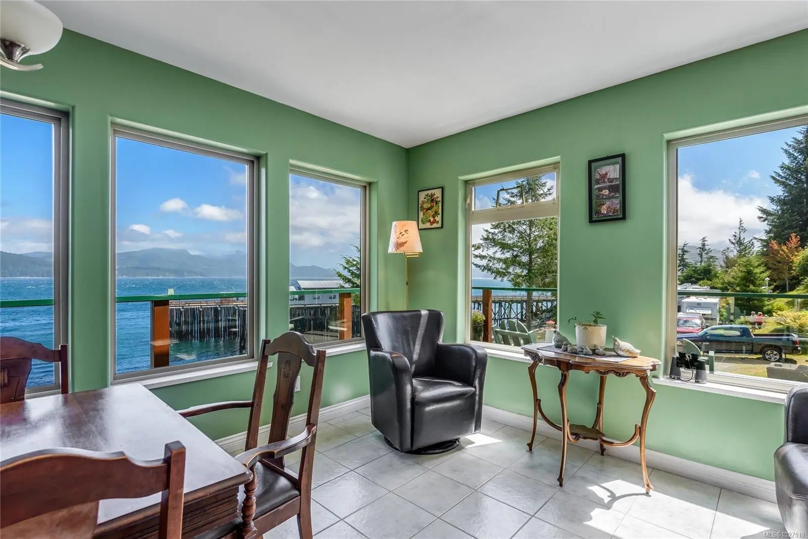 This is one of the most unique & only oceanfront properties available in Sayward! You can enjoy the everchanging views from marine traffic (sport fishing to cruise ships) to various wildlife big and small (eagles to killer whales). The home was custom built and this is the first time offered for sale! The home is easy care and with quality throughout including metal roofing and gorgeous wood siding and tile flooring through the main floor and wood floors on the upper level. There are numerous outbuildings including a garage/workshop on the upper portion of lot with workspace and more room for parking, a greenhouse, a storage shed, RV washroom/shower building, and more. The main home has 2 single garages and storage rooms and workshop within the home as well. There are 6 RV sites that are very popular and a good revenue generating opportunity. The measurements are from Iguide virtual tour and buyer to verify. You will want to see this one!