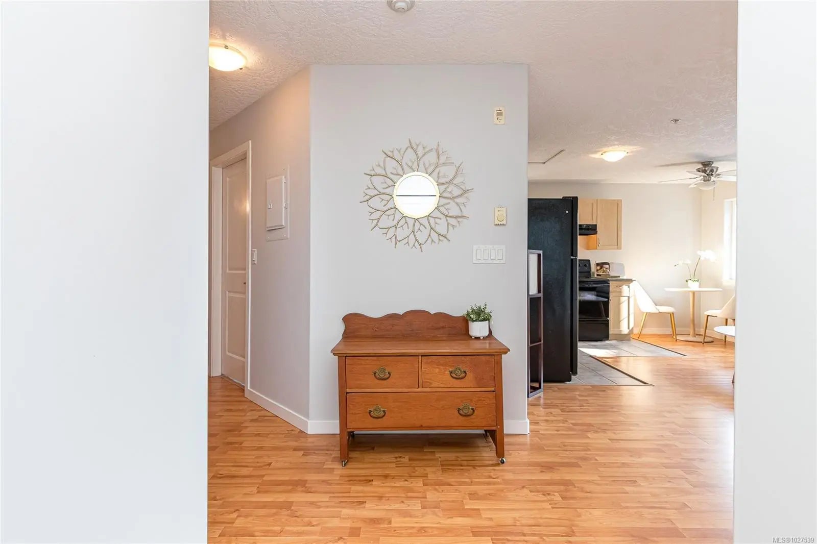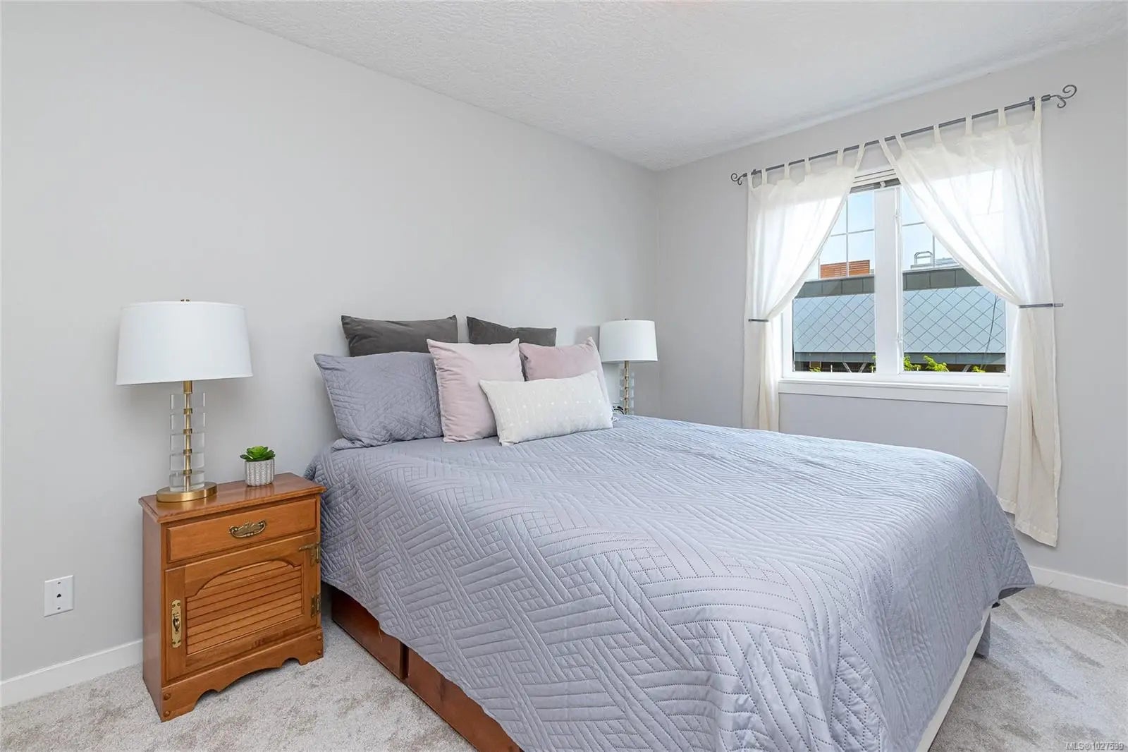 Tucked into a boutique 10-home complex in the heart of Downtown Langford, this bright 2-BR condo offers exceptional value for first-time buyers ready to make their move. The welcoming open-concept living space flows from the kitchen with maple cabinetry & ample counter space into the dining & living areas. The thoughtful layout offers excellent separation between living & sleeping spaces with 2 spacious bedrooms featuring brand-new carpets. The primary includes a double closet while the 2nd bedroom provides flexibility for a home office, guest space or kids room. The full bathroom offers great natural light & a deep tub. Enjoy your private patio for morning coffee or summer BBQs. In-suite laundry, dedicated parking, professional management & pet-friendly strata add convenience. Location matters - and this one delivers. Walk to shops, restaurants, transit & trails. Freshly painted & available for immediate possession this is your opportunity to build equity in a vibrant community.