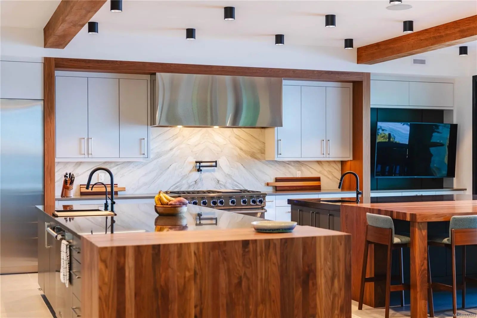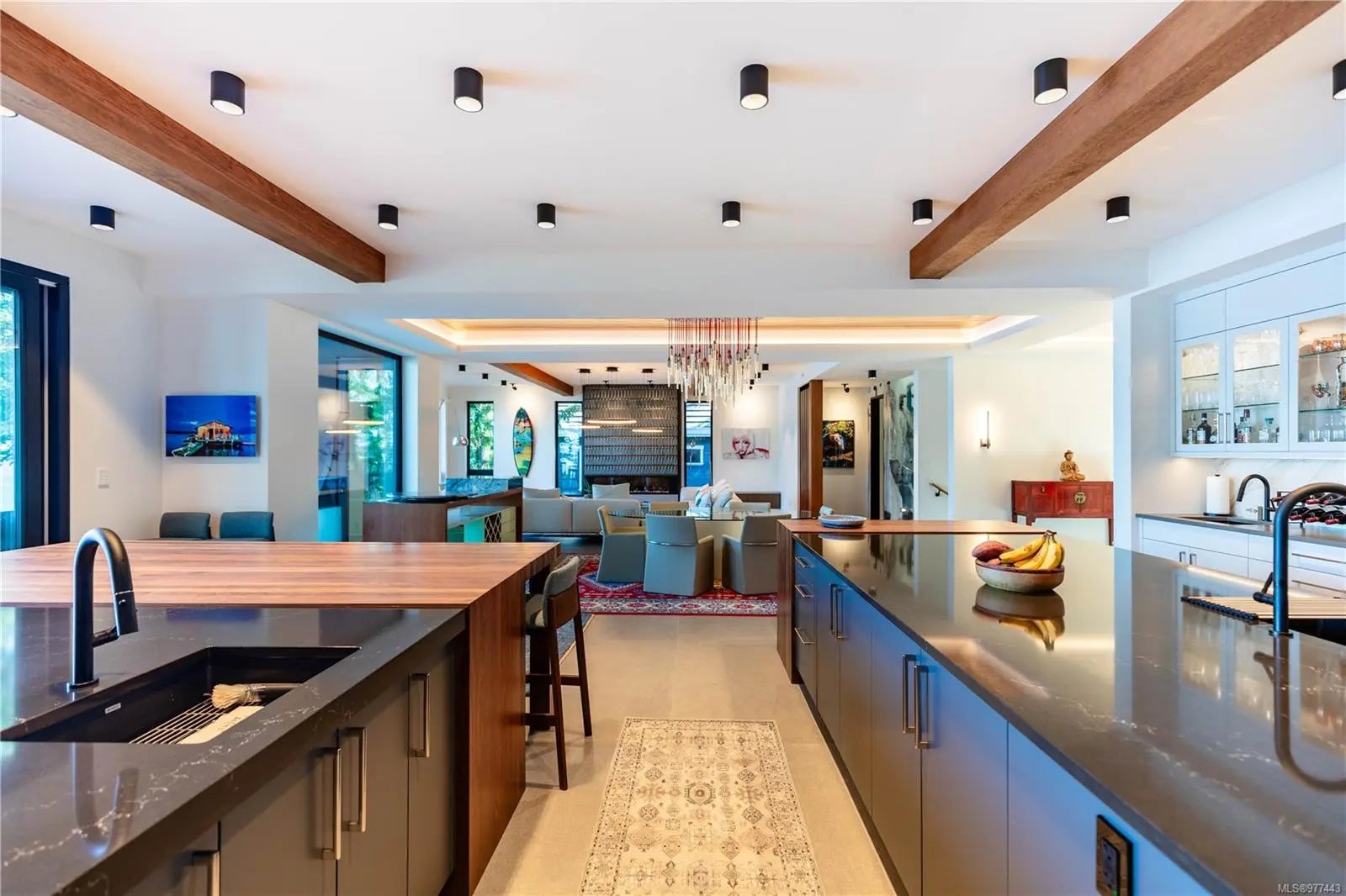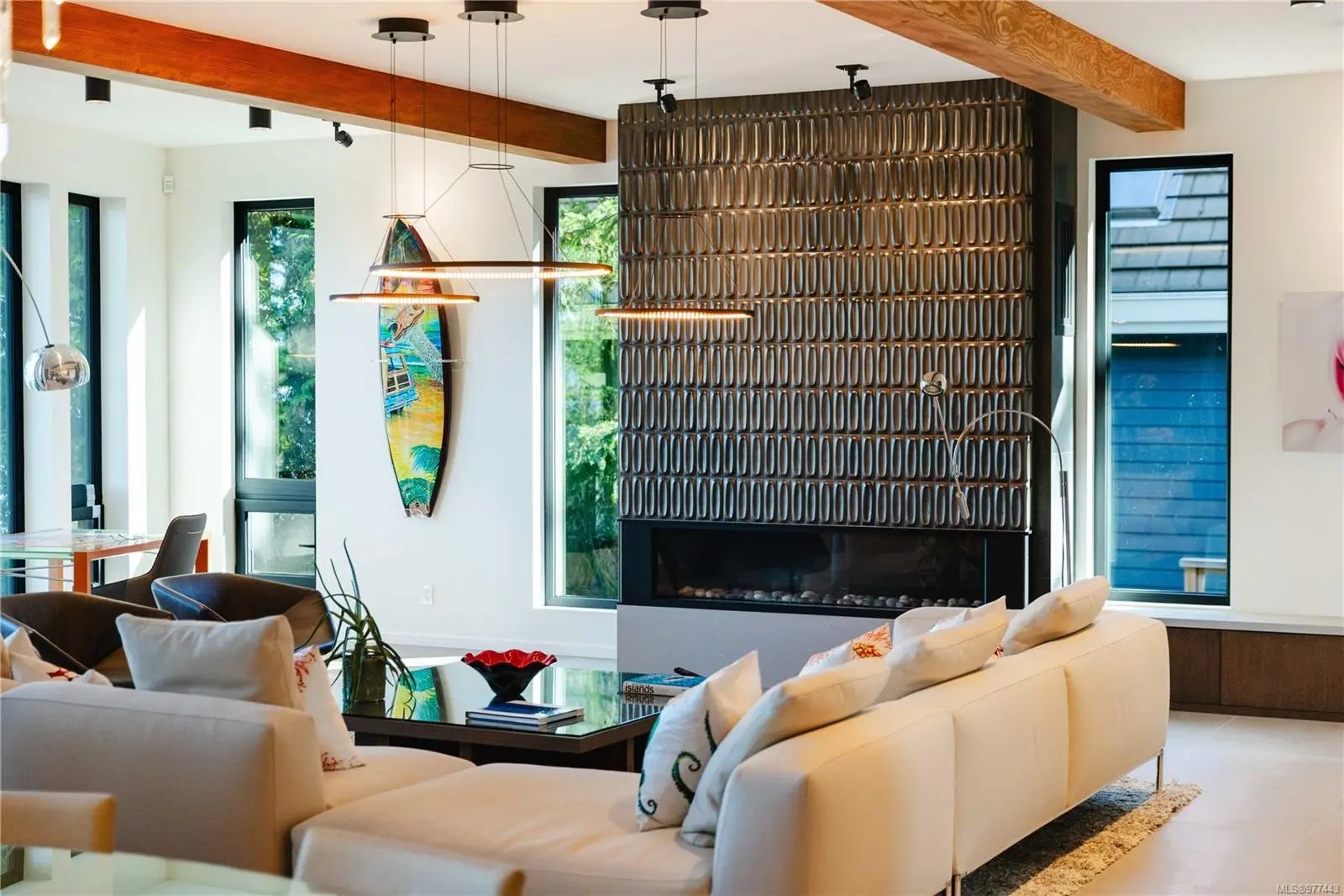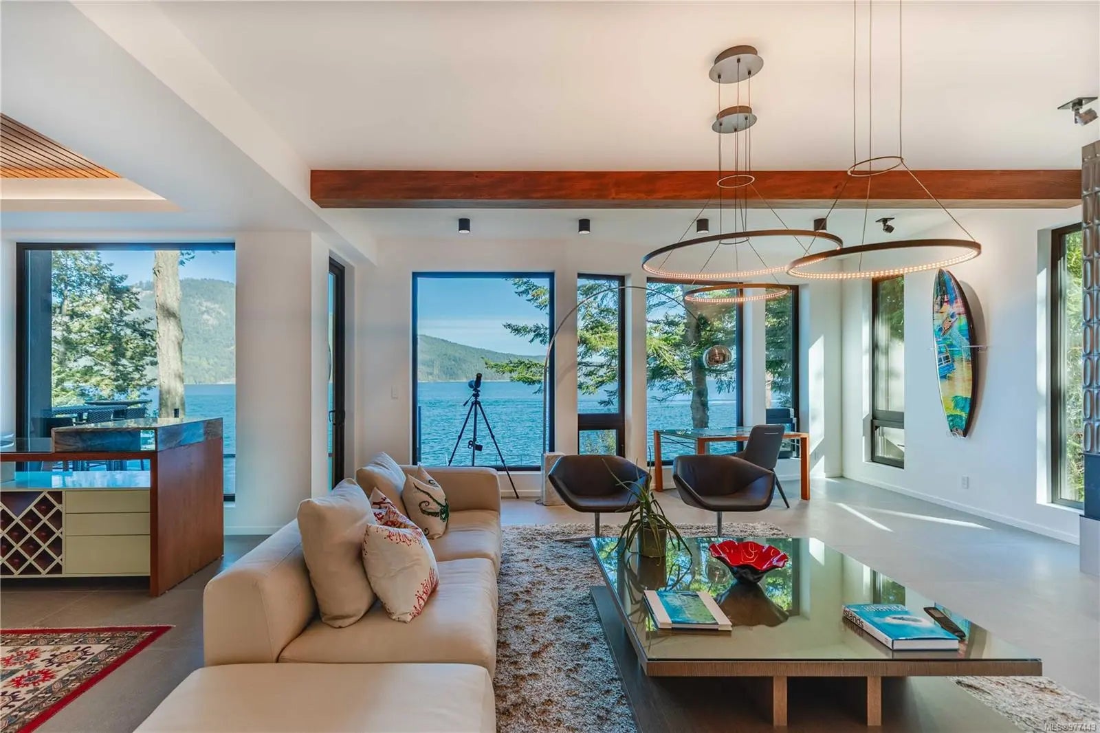 Welcome to this modern waterfront estate in North Saanich, Vancouver Island. On 1.02 acres of low-bank oceanfront, this 2024 constructed luxury home offers privacy and sweeping views of Salt Spring Island’s Mount Tuam Reserve. Voted best Kitchen (over $150k) & Bathroom (over $75k) at the VI Building industry awards, this 7,000-sqft main residence features 4 bedrooms, 7 bathrooms, & a double garage. A zen garden leads to an open main floor with floor-to-ceiling windows. 2 primary suites upstairs include walk-in closets, ocean-view balconies, & a private office. The lower level offers a theatre, wet bar, outdoor kitchen, & a covered patio with a 350-sqft oceanfront deck. A 990-sqft guest house has its own kitchen, 2 bedrooms, 2 bathrooms, & ocean-view deck. A detached three-bay garage adds storage. Smart home tech, energy-efficient systems, & soundproofing enhance comfort & sustainability. Minutes from Swartz Bay Terminal & Victoria Airport, this estate offers opulent waterfront living.