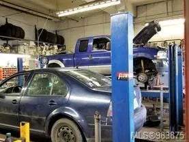 Fully leased mixed commercial and residential building in an excellent high visibility location. Commercial level has 12' high overhead doors-two in the front of the building and one in the alleyway, a washroom, one hoist, shop has 200 amp power. Upstairs is a tenanted 4 bedroom apartment with some new flooring, new washing machine and an excellent tenant. Both units on separate hydro meters. Good, carefree cash flow to step in and own, generating $60,500 gross per year.