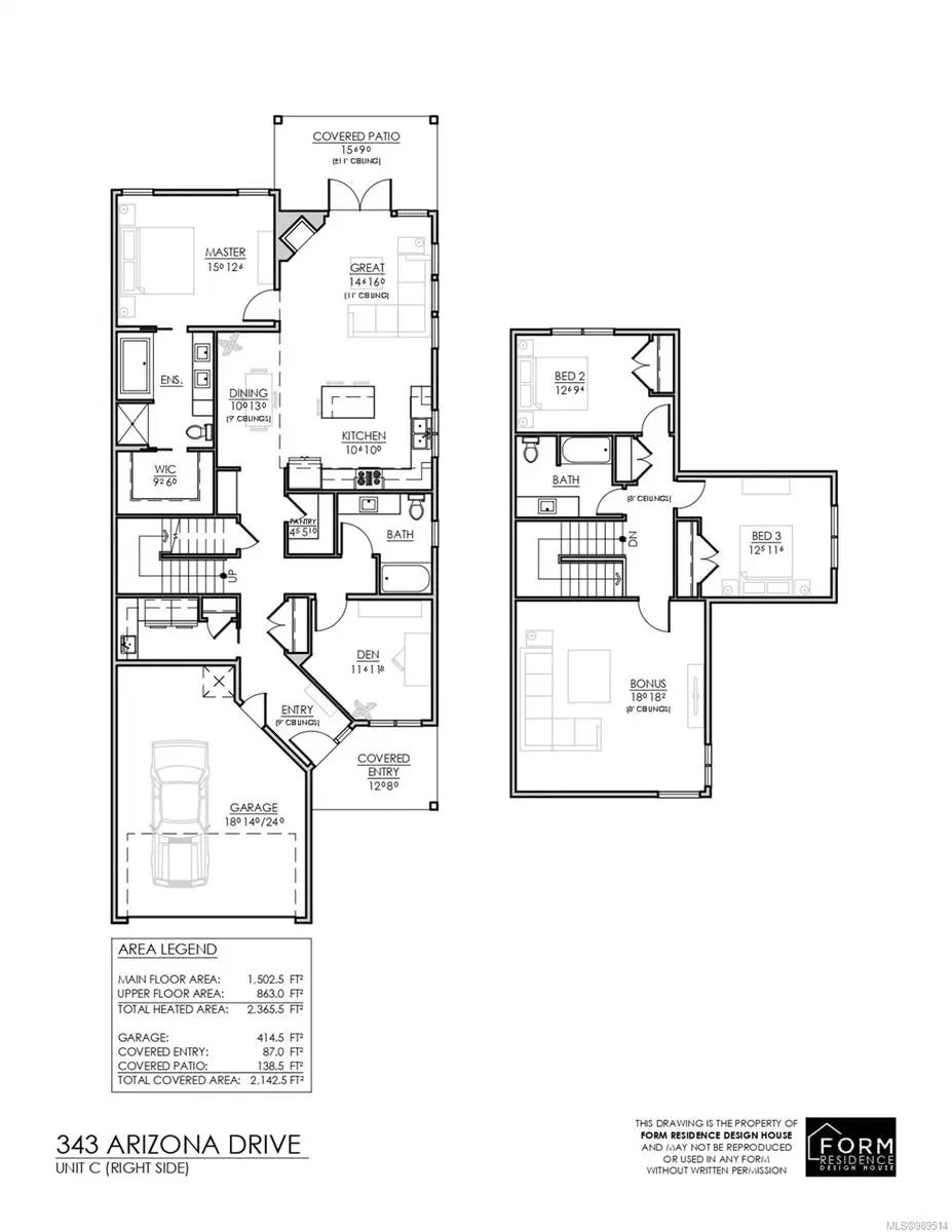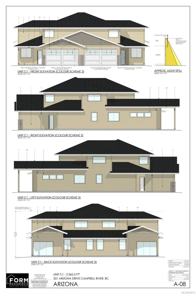 Welcome to Arizona Heights, Campbell River's newest adult oriented patio home development located in the desirable Willow Point neighbourhood. This C plan is the largest of the floor plans and lives like a rancher with 1500 sq feet of living on the main floor including den and primary bedroom with 5 piece ensuite, large soaker tub and 4' foot shower. Eleven foot ceilings in the great room and kitchen offer wide spacious feel. Upstairs you have 2 more bedrooms, an ocean view bonus room and a four piece bathroom. These homes are turnkey and move in ready with a full 6 piece LG Energystar appliance package included, as well as blinds, gas fireplace, fencing, irrigation, double garage with 14' and 24' parking spaces, garage door opener and pre wired for an electric vehicle. You'll be delight with the tasteful finishing, contemporary colors and practical layouts that keep easy living in mind. The building scheme for this unit is C-1, with exterior colour scheme 2 (see attached images).