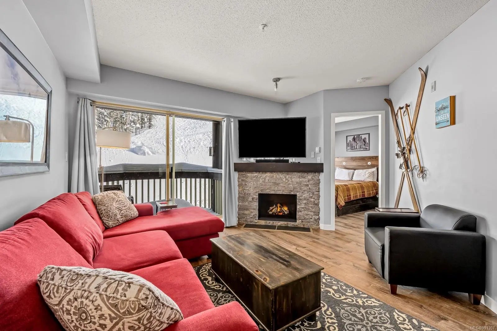 UPDATED, SLOPESIDE! Located in Deer Lodge, a true ski in/ski out complex, this cozy 2-bedroom, 2-bathroom condo has been wonderfully renovated. The interior updates include: vinyl plank flooring, newer furniture, appliances, fixtures, lighting, quartz countertops, ceramic backsplashes, rock surround on the fireplace, entry built ins and paint. The lock-off unit is north facing with plenty of natural light and views of the ski runs. Everything viewed in the unit is included in the price. The building features a large hot tub and easy access to the slopes. Each unit has one underground parking stall and a 7'x5' private storage locker. Monthly strata fees of $761 include Wifi, cable, propane and hot water, snow removal plus regular strata expenses. This property is rented almost 100% of the time when not used by the owner. It is a short walk to the restaurants and hub of activities. GST is payable on top of the purchase price. Quick possession is available.