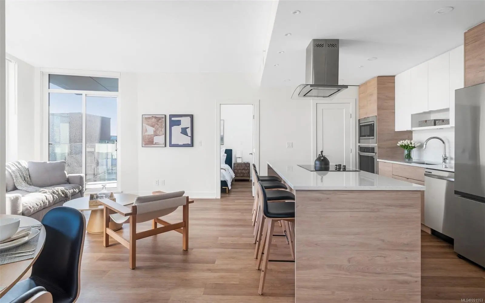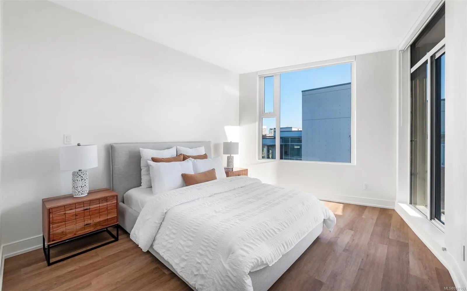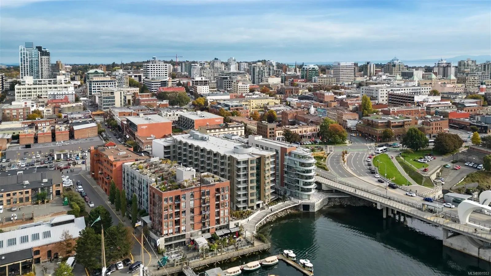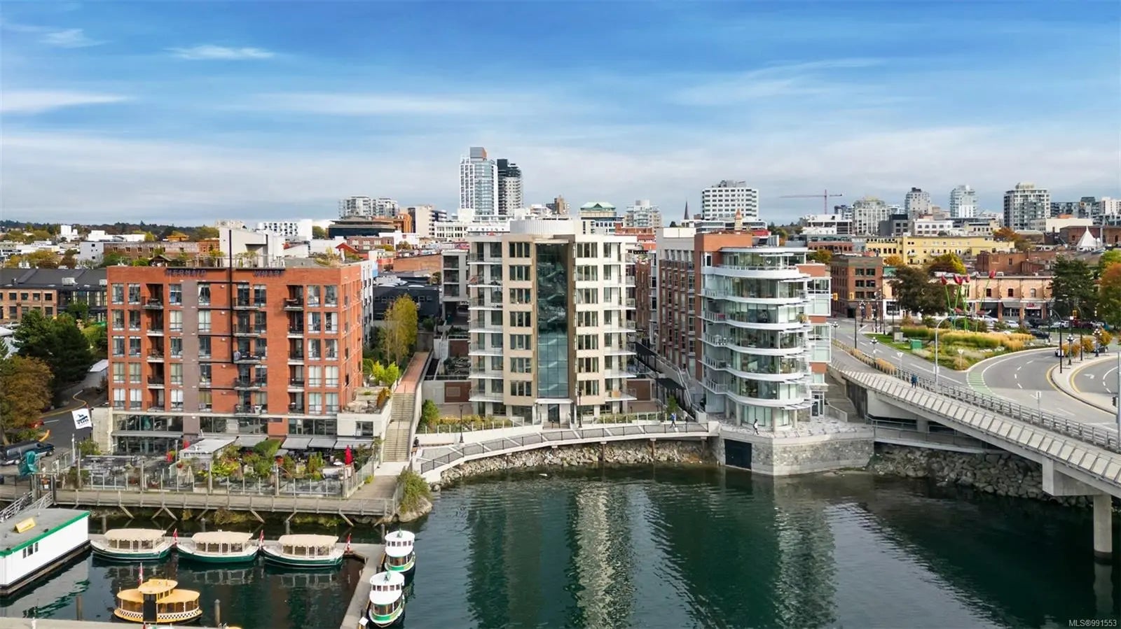 Welcome to the Pearl Residences, a premier boutique-style waterfront steel & concrete building located in the heart of Victoria's vibrant & historic Old Town district. This SW-facing penthouse 2 bed 2 bath unit features 2 balconies with views of the Upper Harbour and Johnson St Bridge. This 1,211 sq ft home offers 9 ft ceilings, a contemporary kitchen with a light colour scheme, high-end S/S appliance package, quartz countertops, pantry, beverage fridge, separate laundry room with sink, extra storage, central air heating and cooling for ultimate comfort, and radiant floor heating in the bathrooms. Intelligent layout with separated bedrooms for added privacy. The primary suite features an ensuite bath with dual sinks, slipper tub, separate shower and large walk-in closet. With side-by-side parking for two, storage, bike storage, a fitness facility, kitchen-equipped amenity room, and pets allowed, this unit offers the ultimate luxury downtown lifestyle. GST IS INCLUDED.